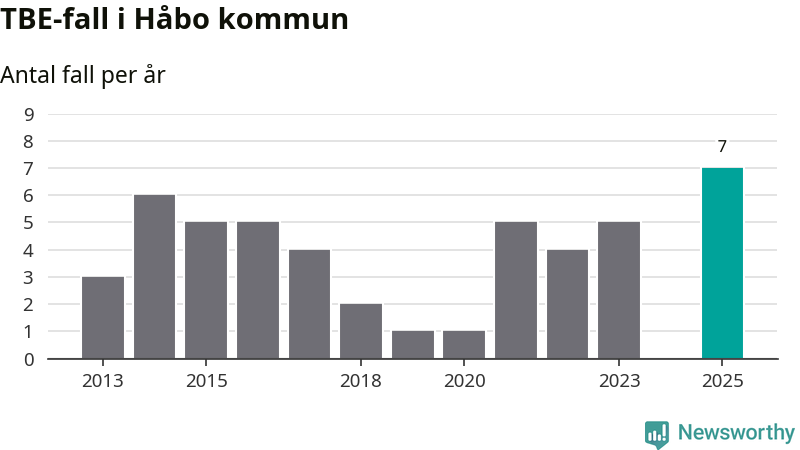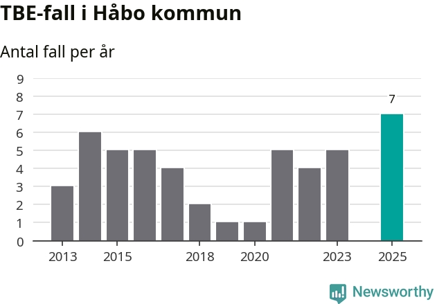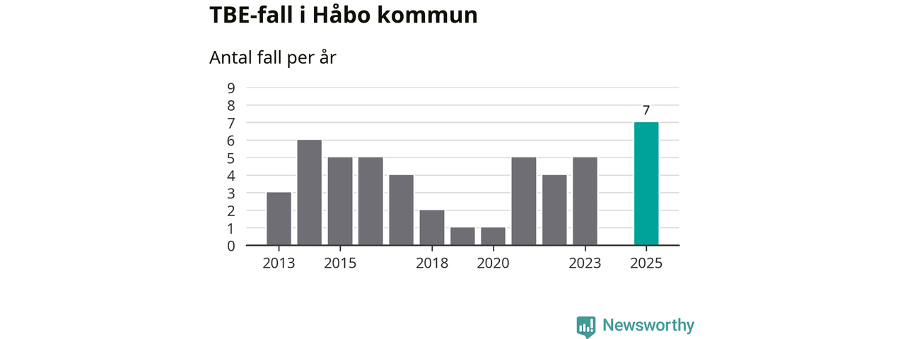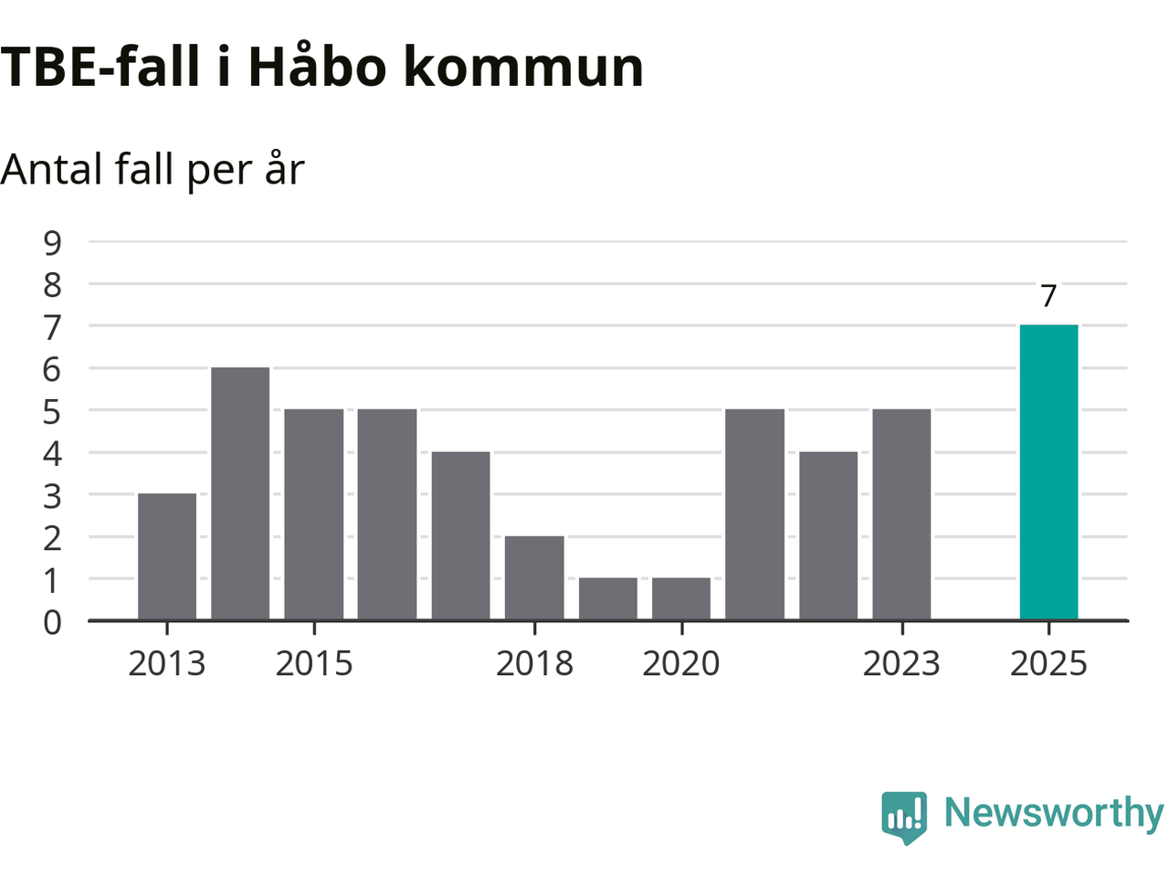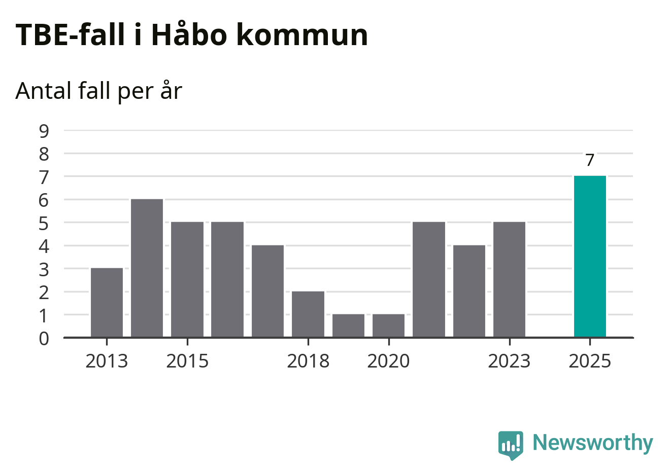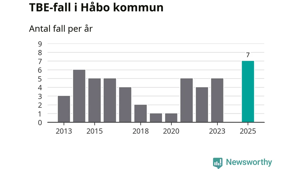 Den långsiktiga trenden är däremot tydlig. TBE-fallen blir allt fler i Sverige. Sett över tid har antalet anmälda fall i landet som helhet ökat med drygt sex procent per år sedan 2013. Totalt motsvarar det en ökning på 141 procent om vi jämför 2013 med 2025 års siffror.