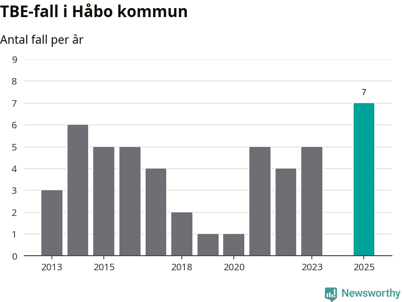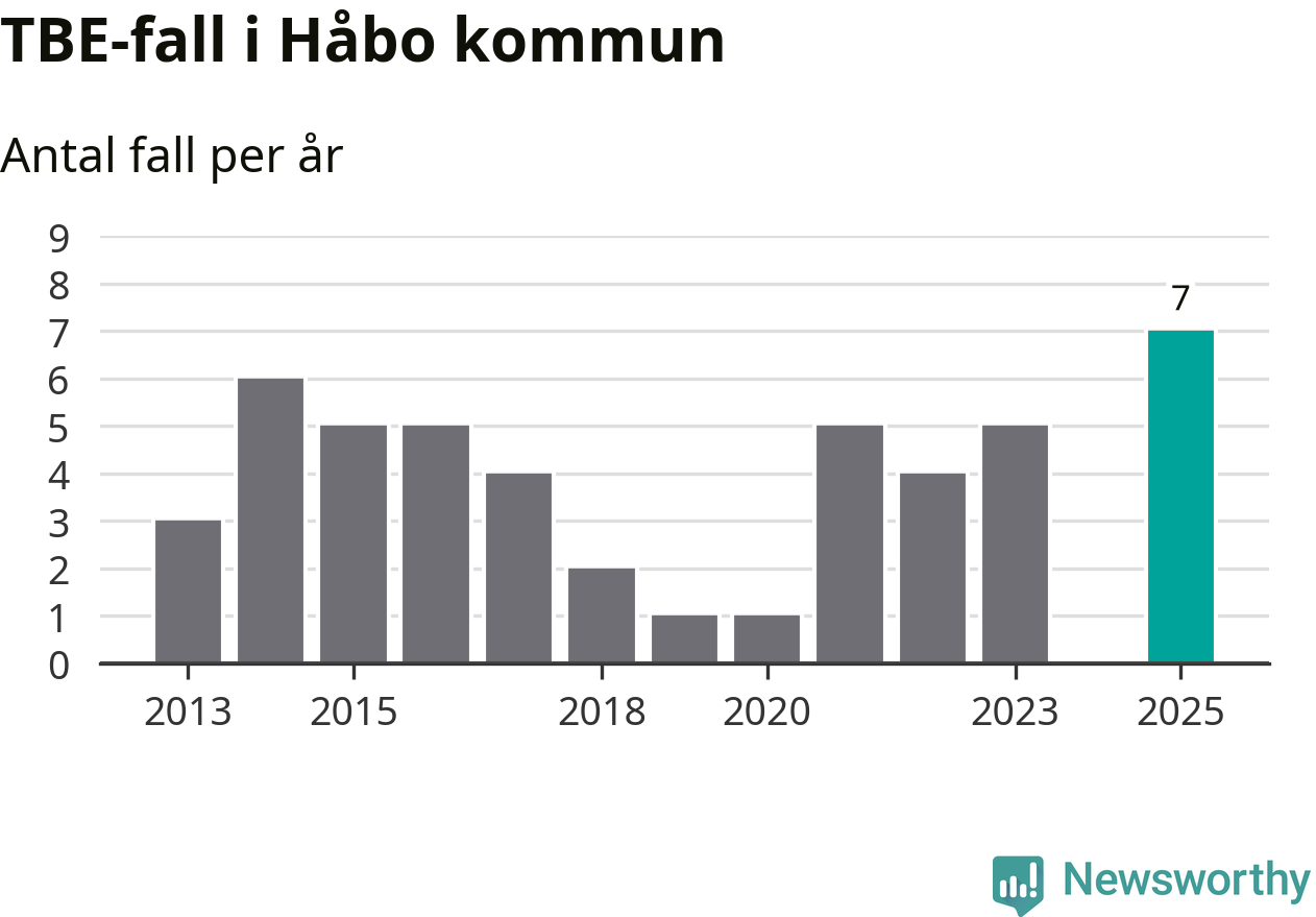 I Håbo kommun rapporterades totalt sju smittfall. Det är sju fler än året innan, och det högsta antalet som hittills rapporterats i kommunen.