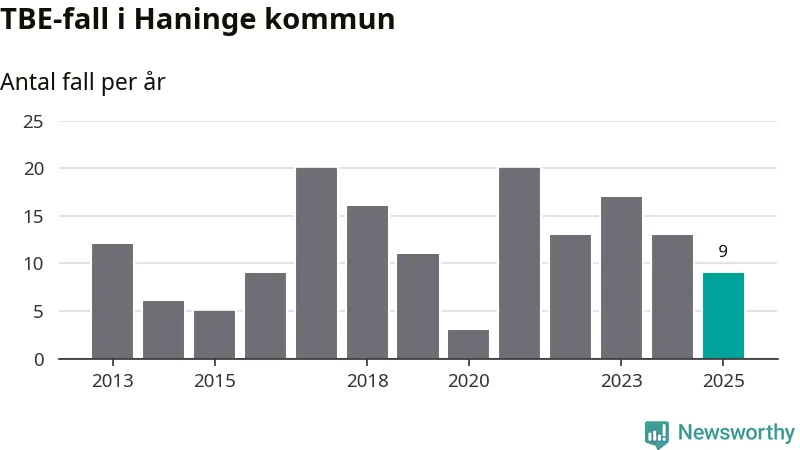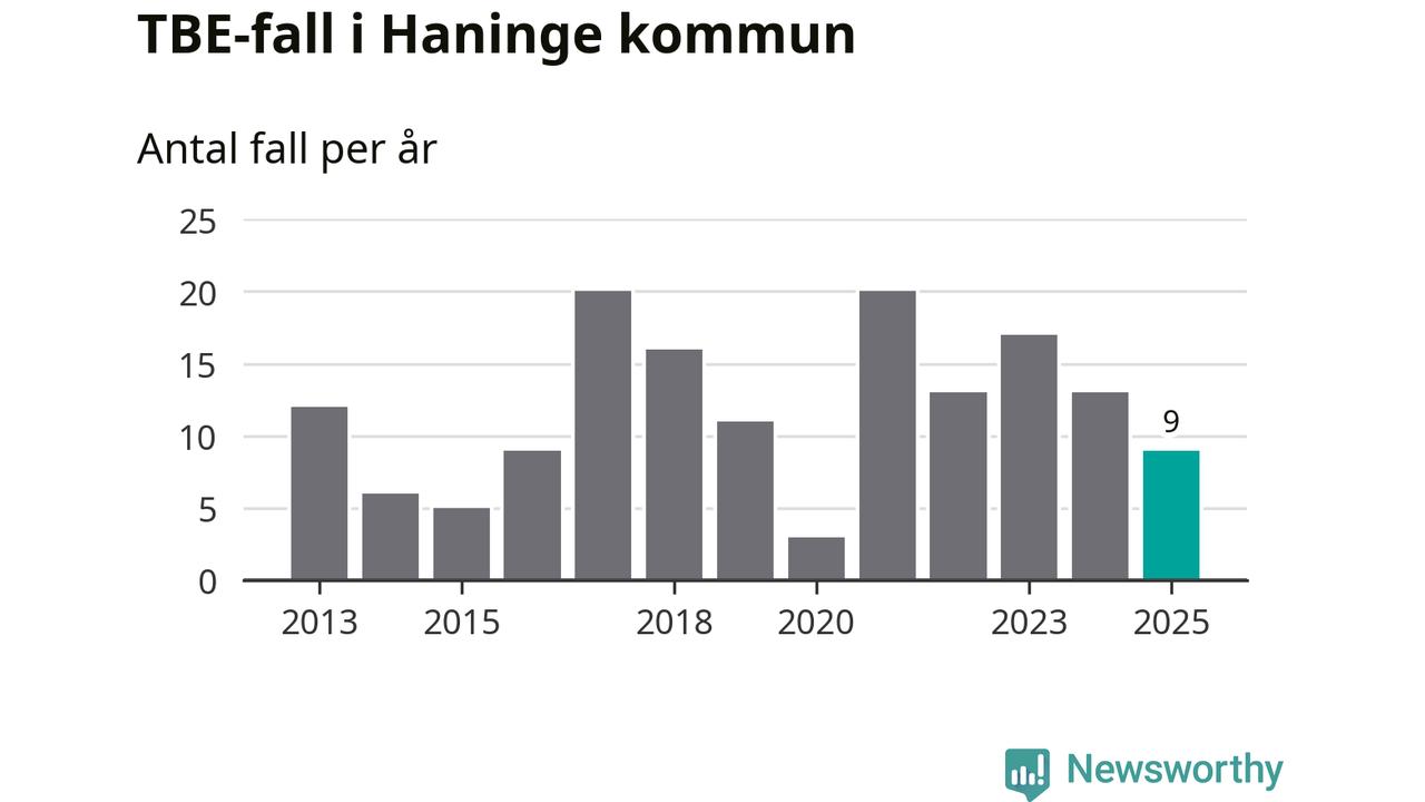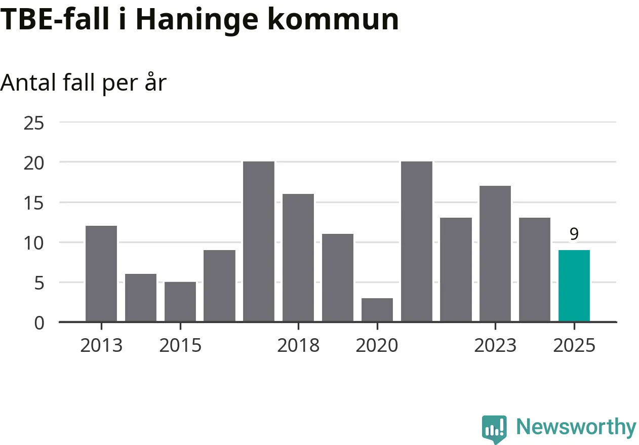 Under 2025 tillkom sju nya kommuner på den listan. Haninge kommun räknas till kommunerna med förhöjd förekomst av TBE. Det gör även resten av Stockholms län.