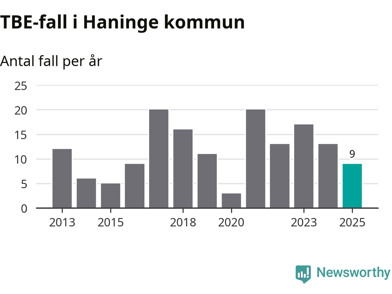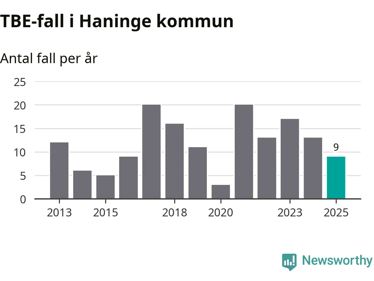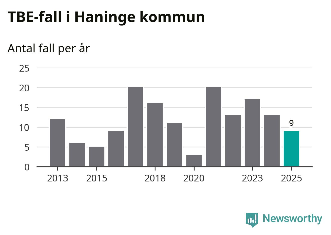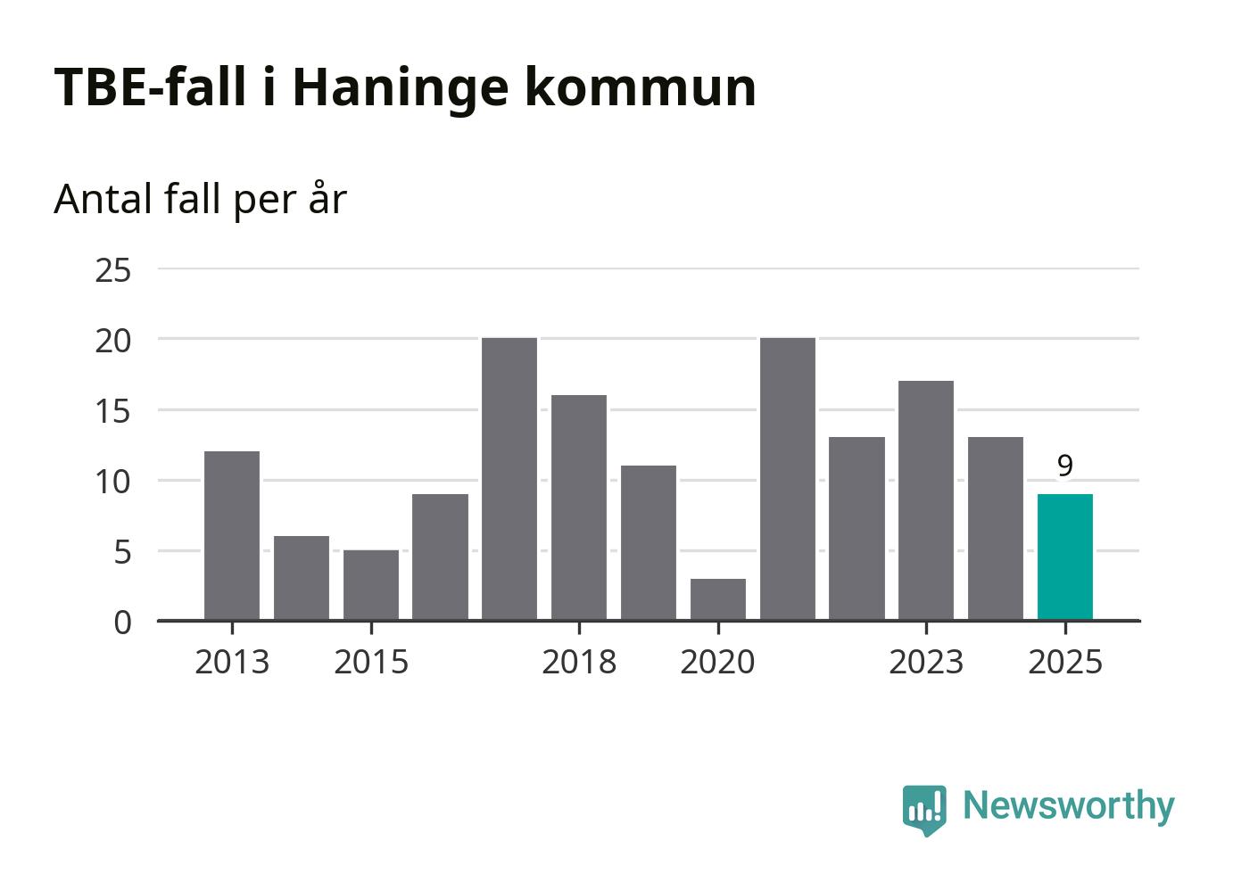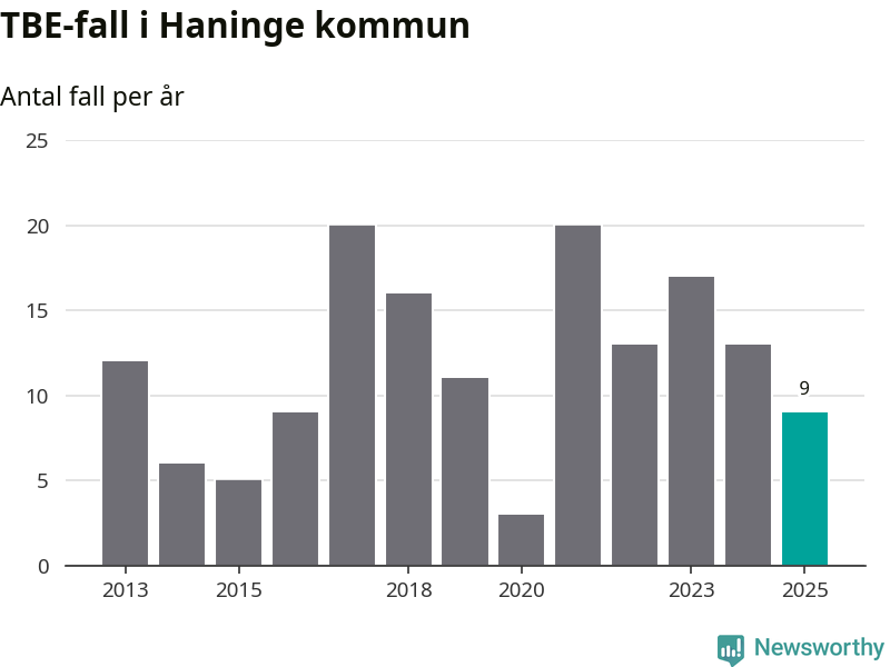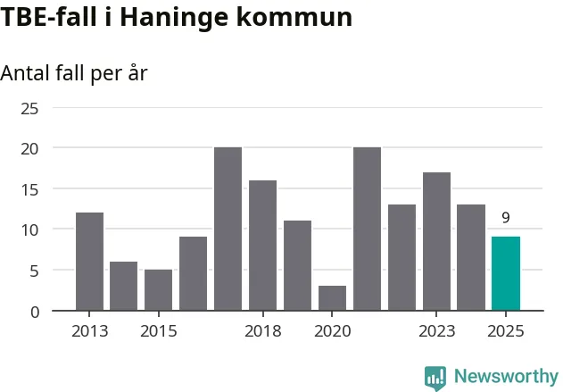 I Haninge kommun rapporterades totalt nio smittfall. Det är en minskning sedan året innan då sjukdomssiffran låg på 13 rapporterade fall.