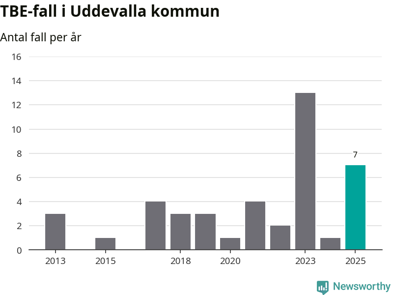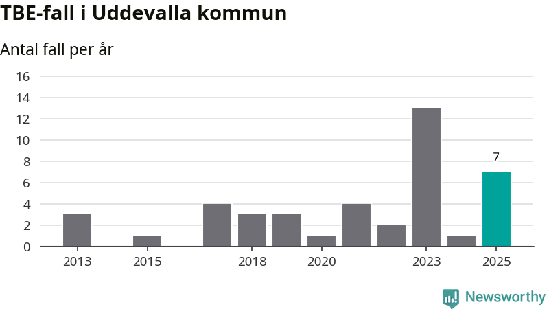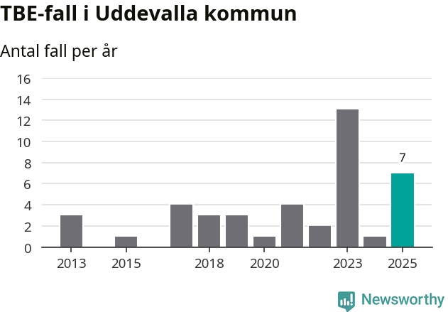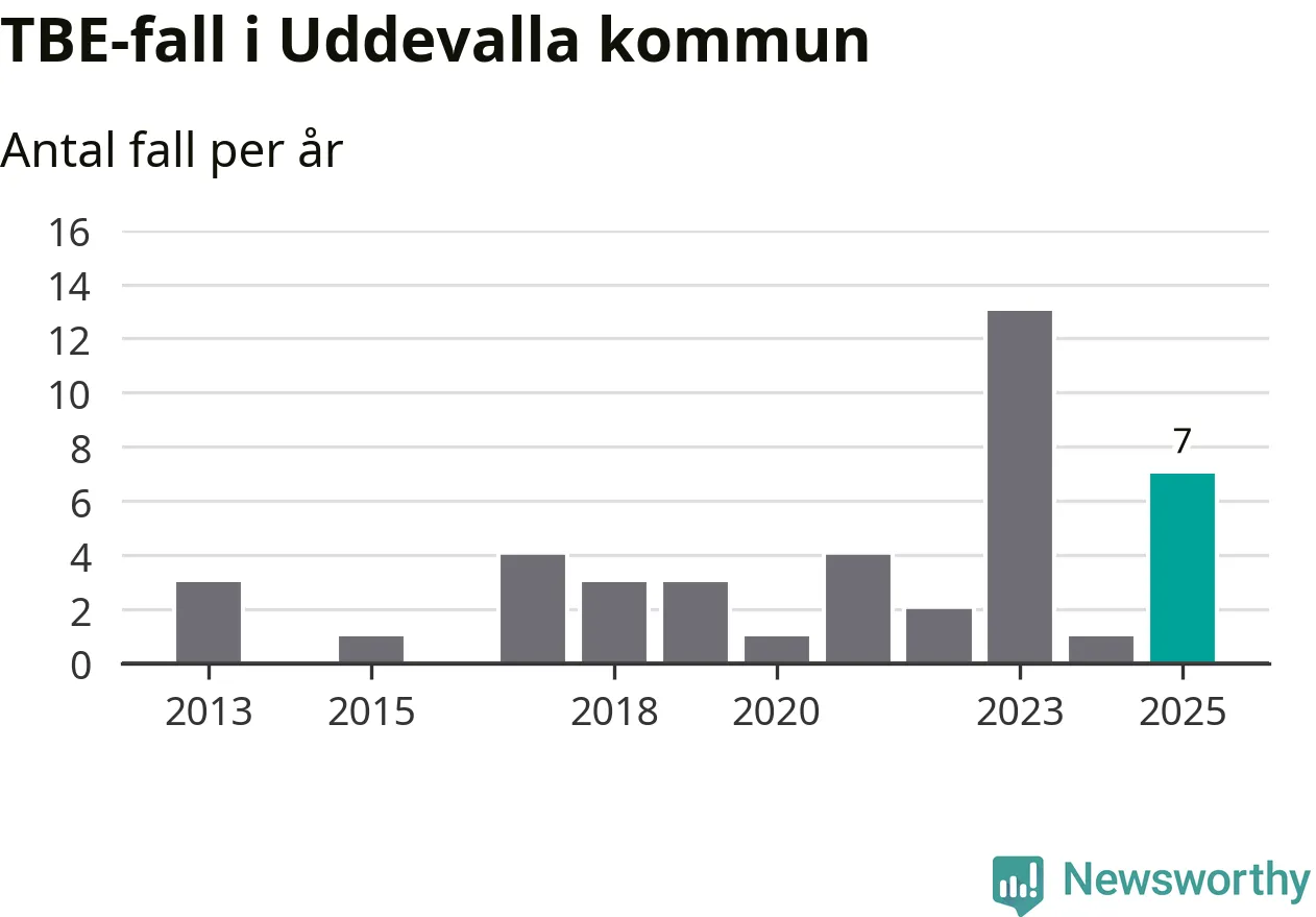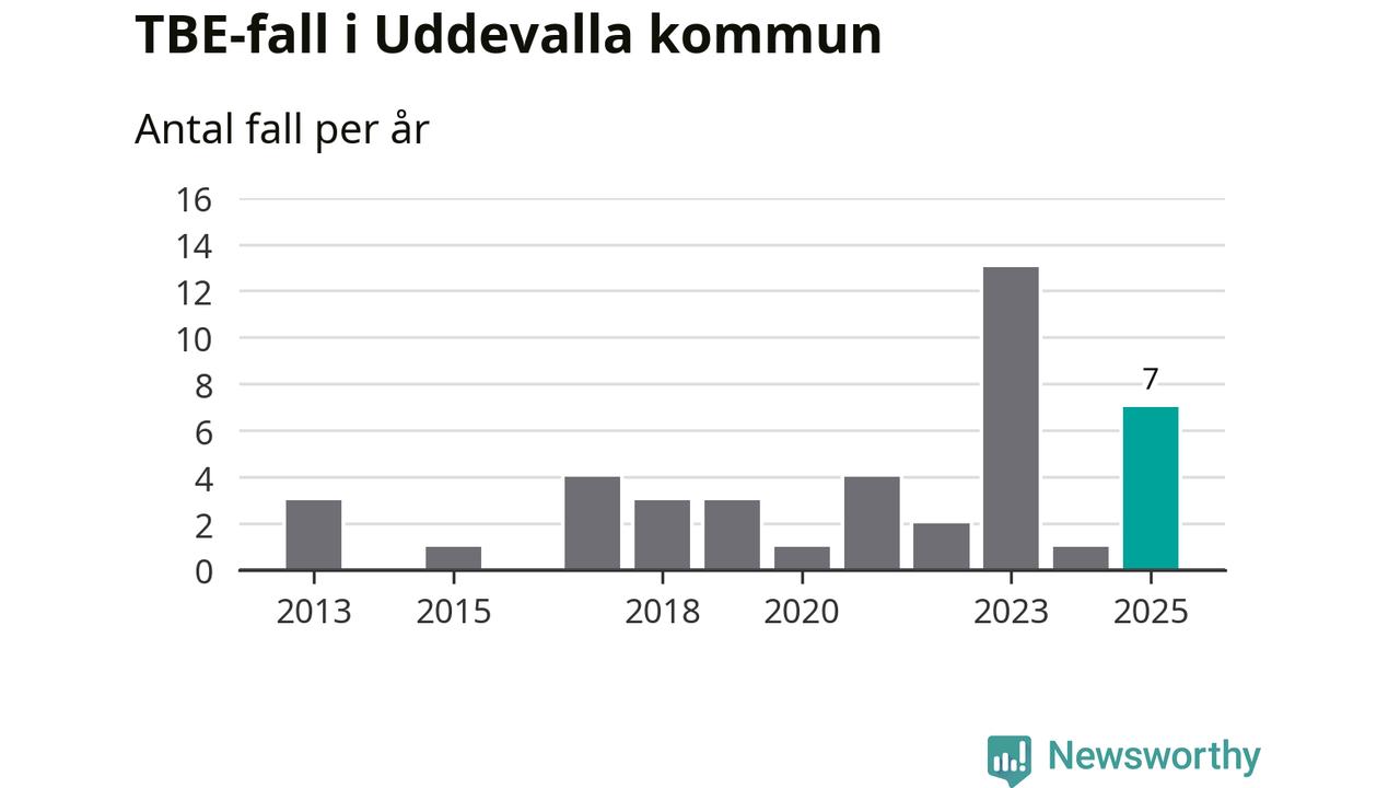 Under 2025 tillkom sju nya kommuner på den listan. Uddevalla kommun räknas till kommunerna med förhöjd förekomst av TBE. Det gör även resten av Västra Götalands län.