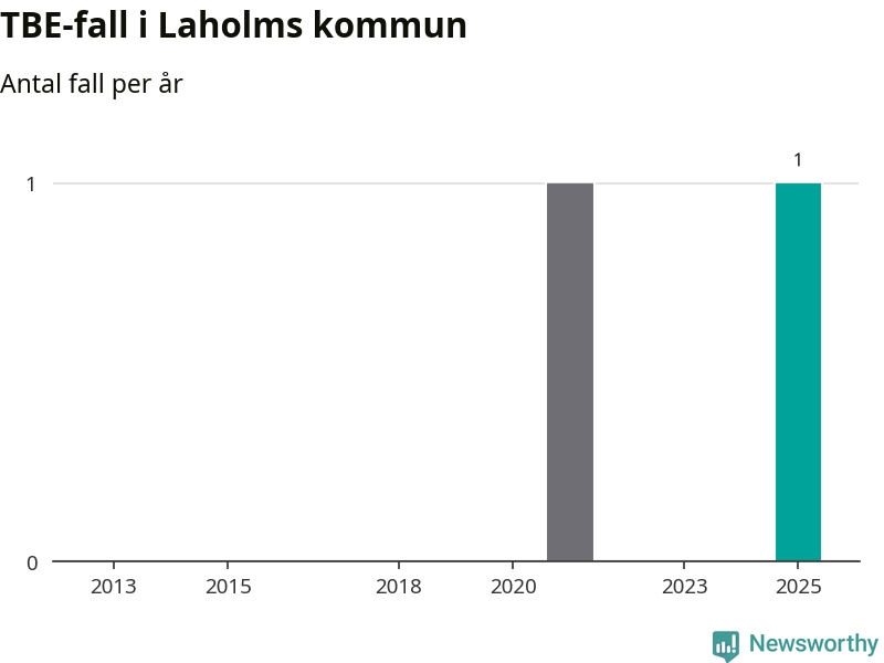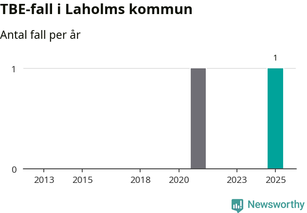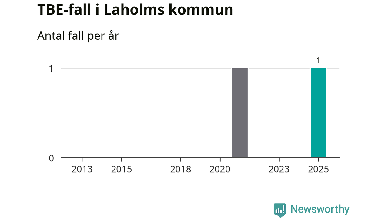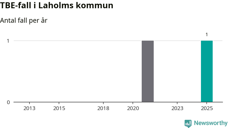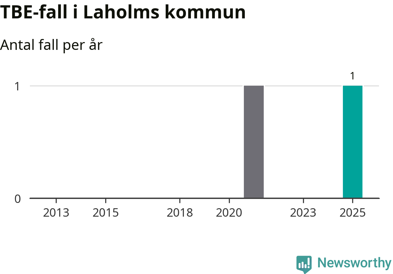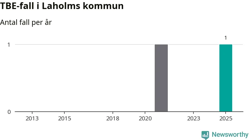 I Laholms kommun rapporterades totalt ett smittfall. Sedan 2013 har det rapporterats totalt två fall i kommunen.