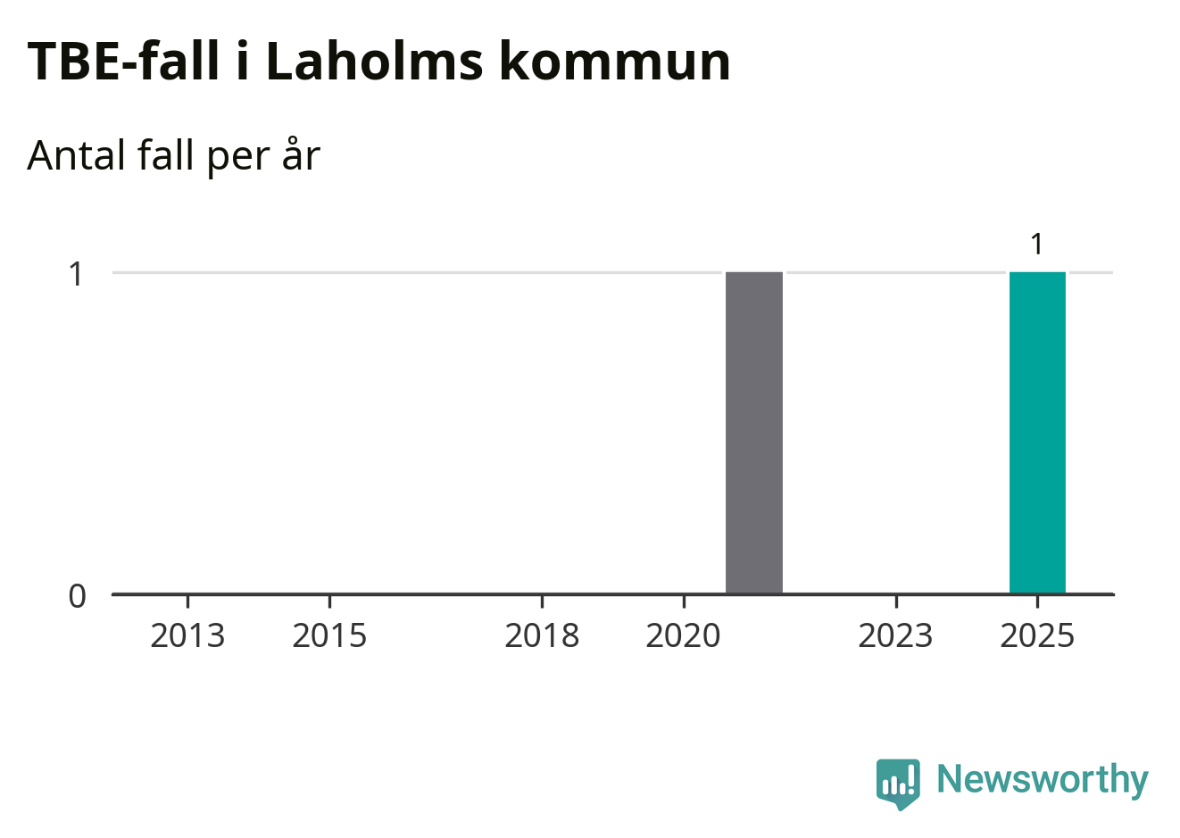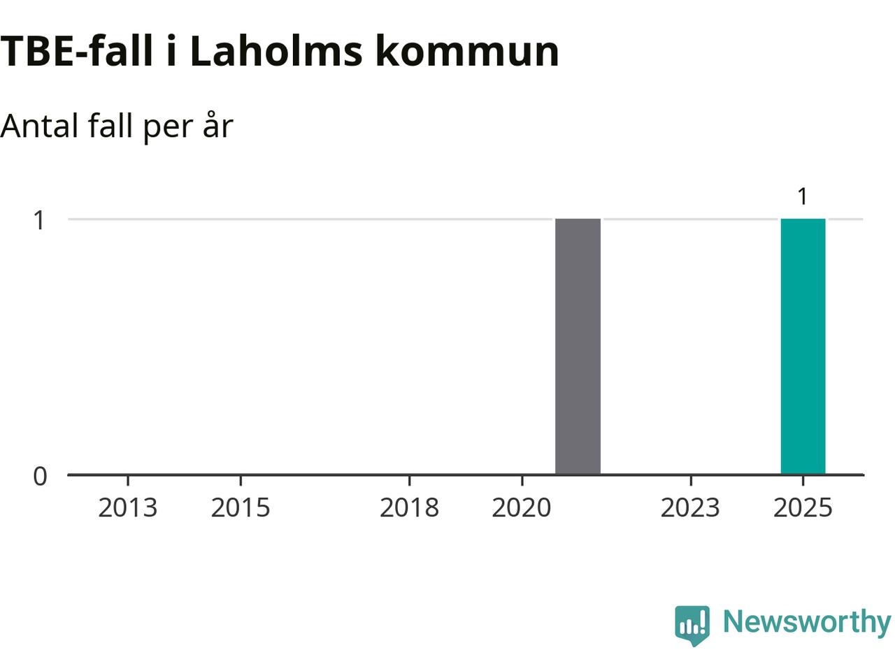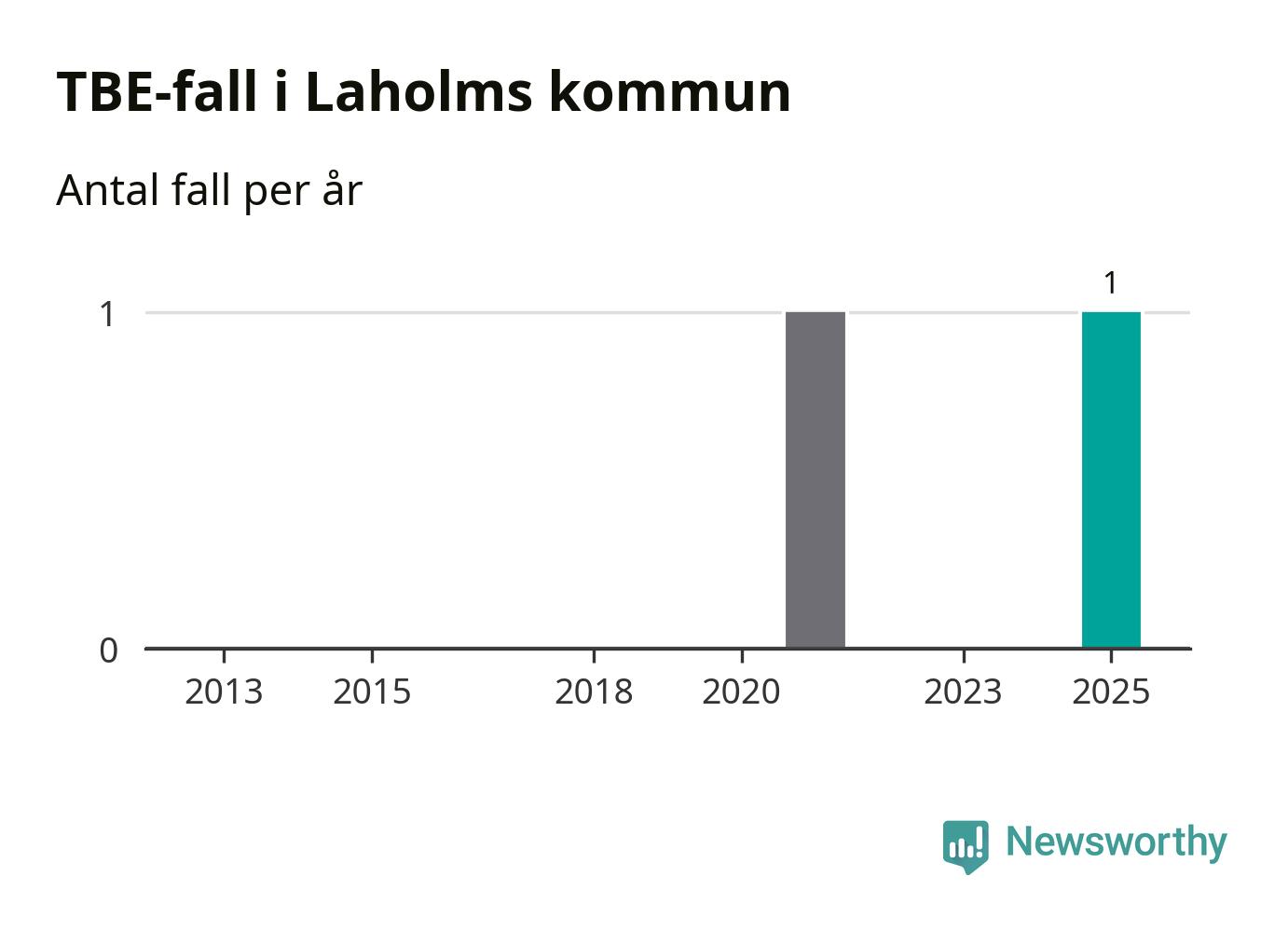 I Laholms kommun rapporterades totalt ett smittfall. Sedan 2013 har det rapporterats totalt två fall i kommunen.
