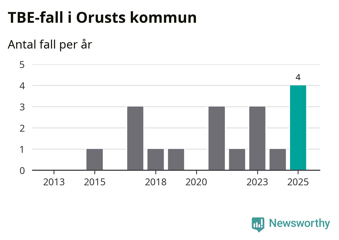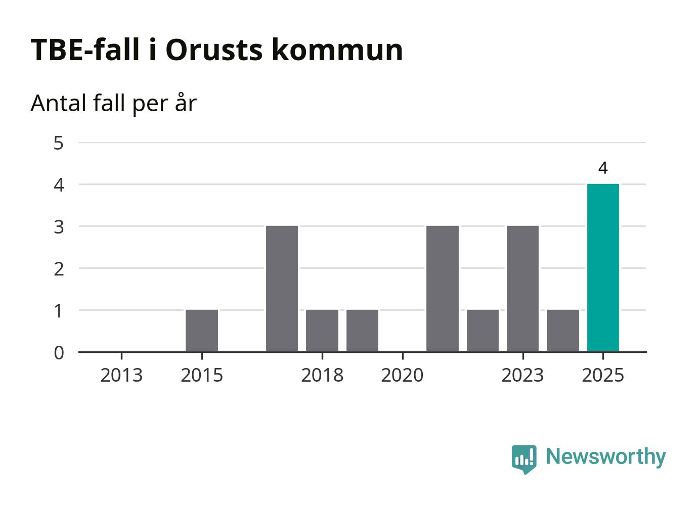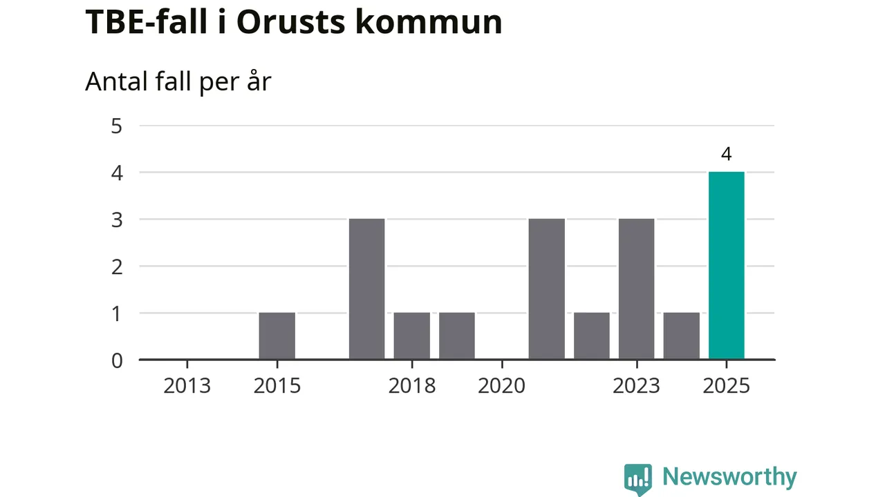Under 2025 tillkom sju nya kommuner på den listan. Orusts kommun räknas till kommunerna med förhöjd förekomst av TBE. Det gör även resten av Västra Götalands län.
