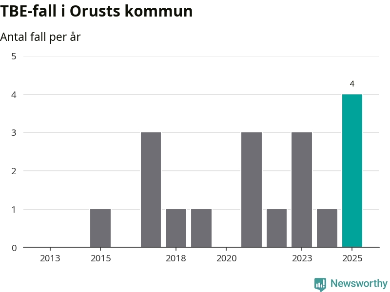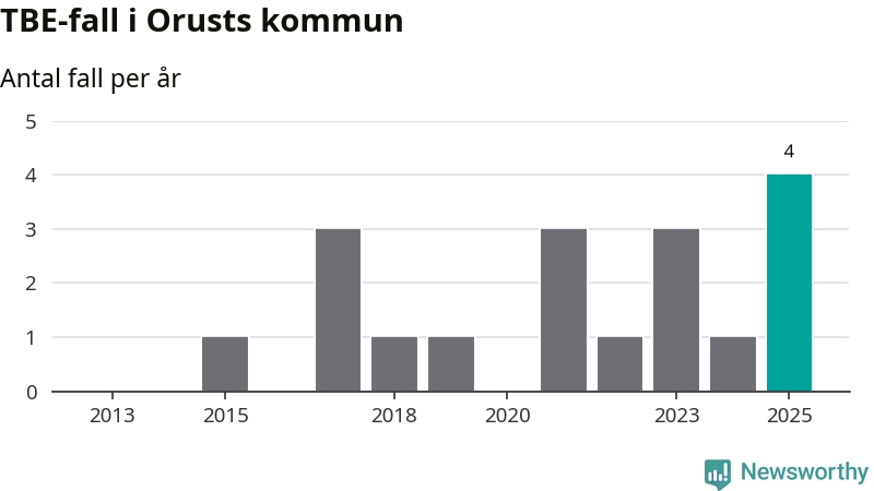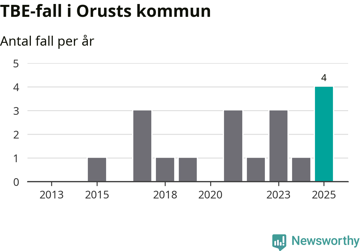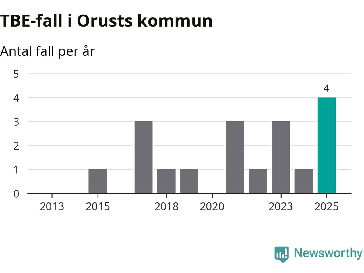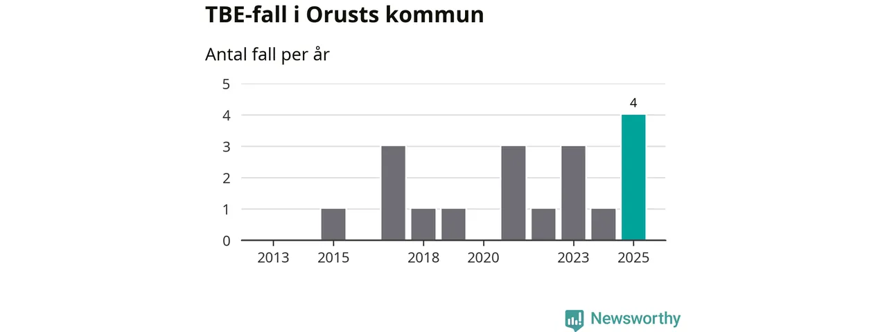 Under 2025 tillkom sju nya kommuner på den listan. Orusts kommun räknas till kommunerna med förhöjd förekomst av TBE. Det gör även resten av Västra Götalands län.