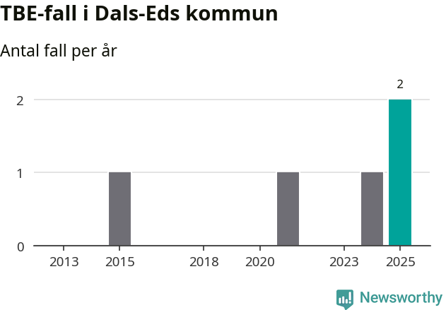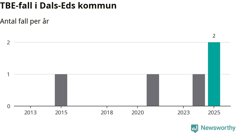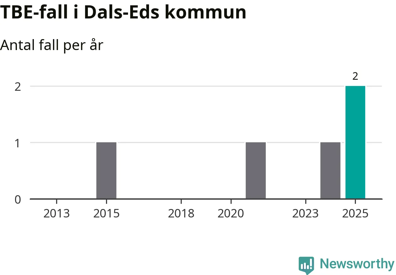 Under 2025 tillkom sju nya kommuner på den listan. Dals-Eds kommun räknas till kommunerna med förhöjd förekomst av TBE. Det gör även resten av Västra Götalands län.