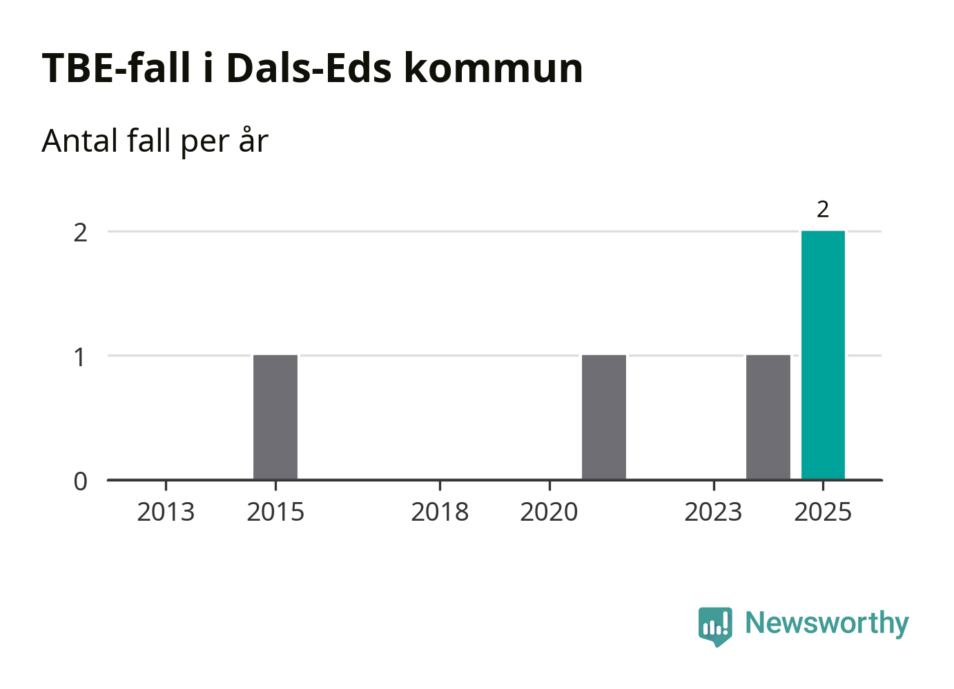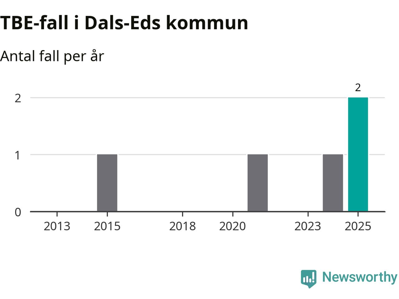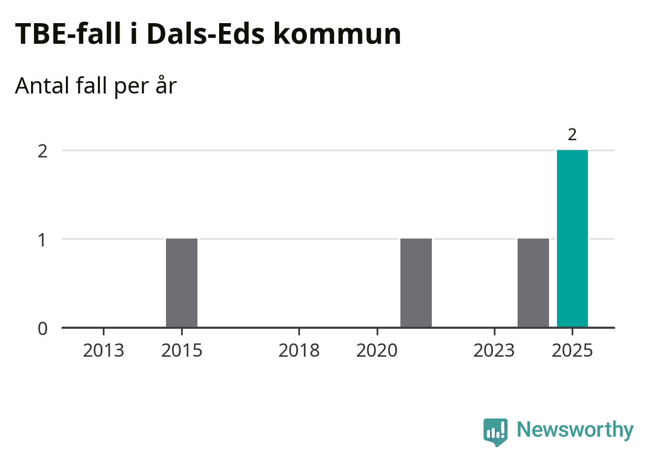 I Dals-Eds kommun rapporterades totalt två smittfall. Det är ett fler än året innan, och det högsta antalet som hittills rapporterats i kommunen.