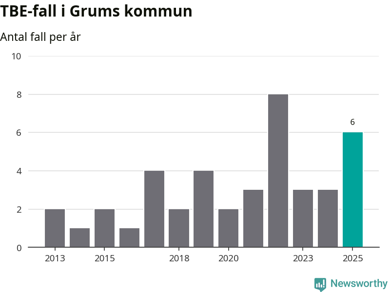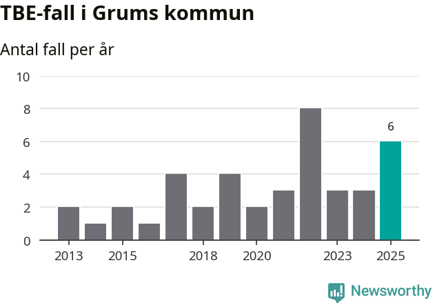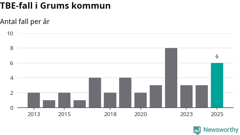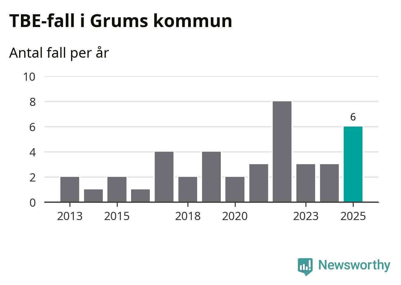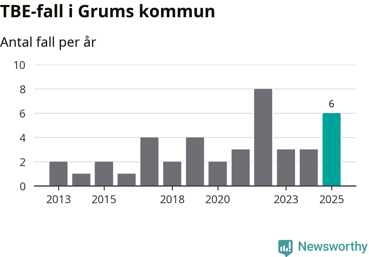 I Grums kommun rapporterades totalt sex smittfall. Det är en ökning sedan året innan då sjukdomssiffran låg på tre rapporterade fall.
