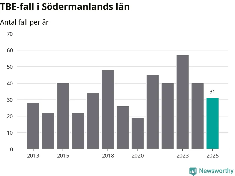 I Södermanlands län rapporterades totalt 31 smittfall. Det är en minskning sedan året innan då sjukdomssiffran låg på 40 rapporterade fall.