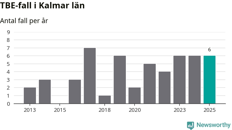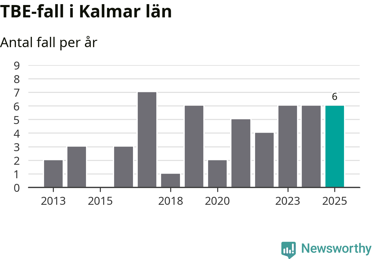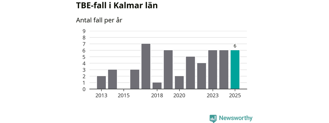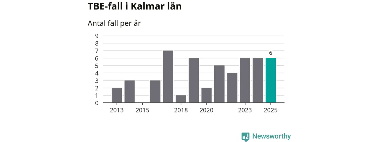 Under 2025 tillkom sju nya kommuner på den listan. Ingen del av Kalmar län räknas ännu som ett område med förhöjd förekomst av TBE.