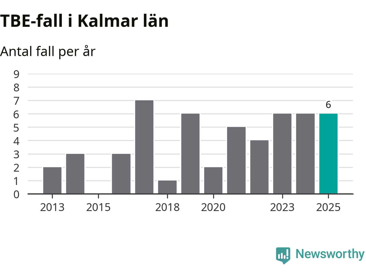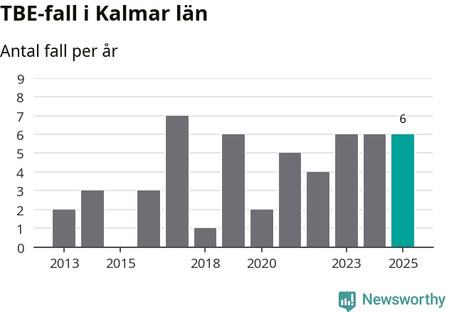 Den långsiktiga trenden är däremot tydlig. TBE-fallen blir allt fler i Sverige. Sett över tid har antalet anmälda fall i landet som helhet ökat med drygt sex procent per år sedan 2013. Totalt motsvarar det en ökning på 141 procent om vi jämför 2013 med 2025 års siffror.