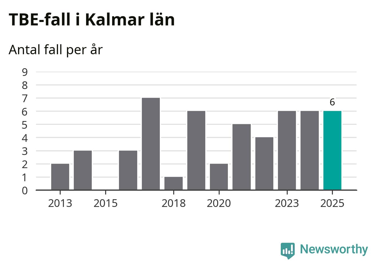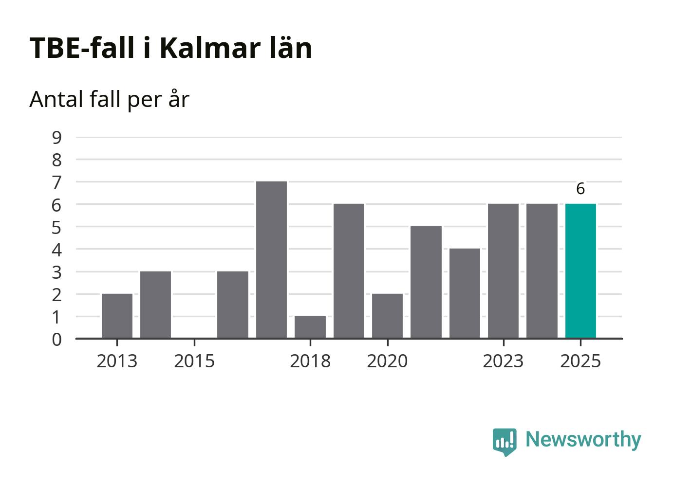 I Kalmar län rapporterades totalt sex smittfall. Det är lika många som året innan.