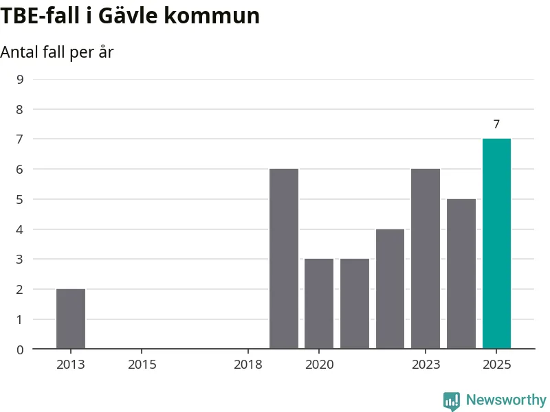 I Gävle kommun rapporterades totalt sju smittfall. Det är två fler än året innan, och det högsta antalet som hittills rapporterats i kommunen.