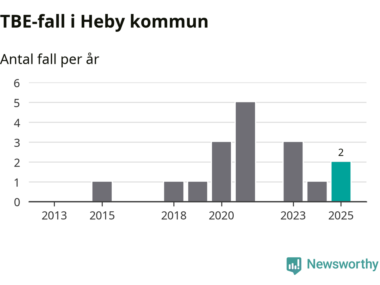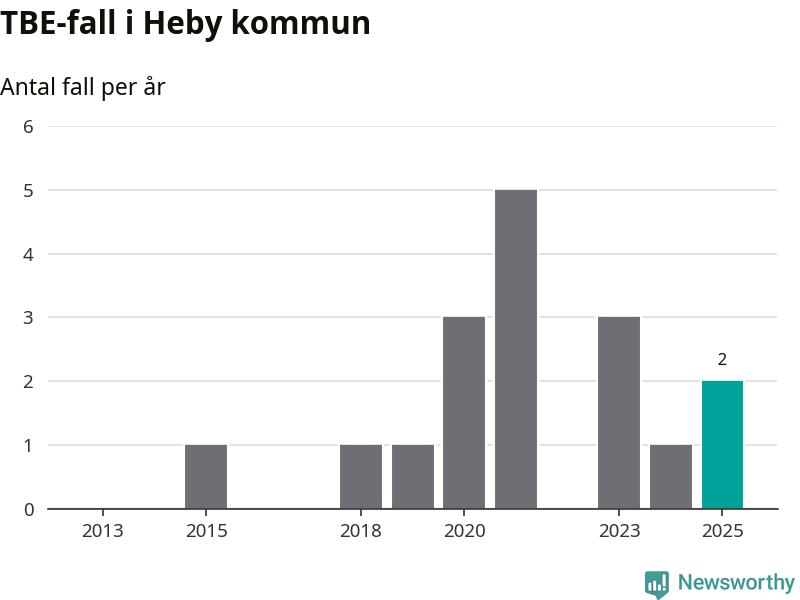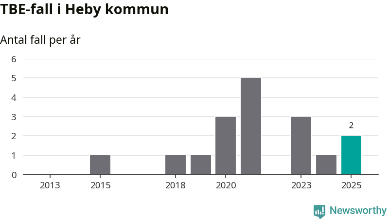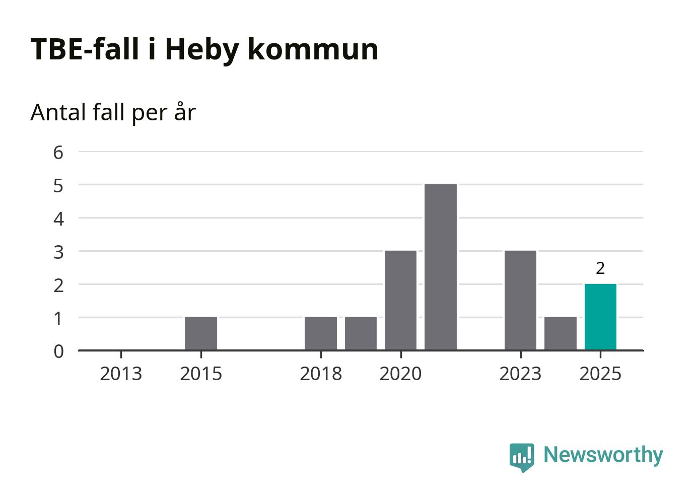 I Heby kommun rapporterades totalt två smittfall. Det är en ökning sedan året innan då sjukdomssiffran låg på ett rapporterade fall.