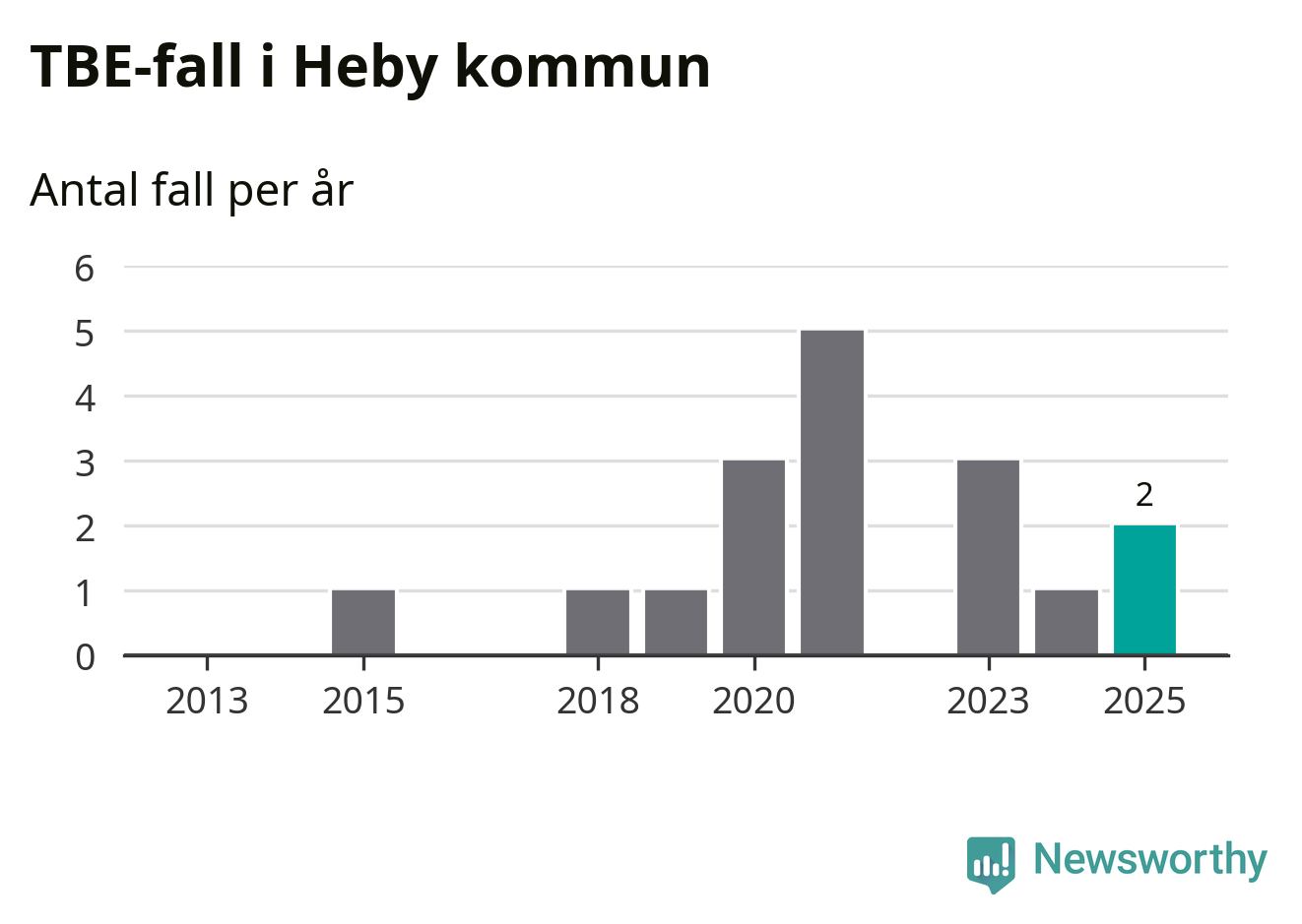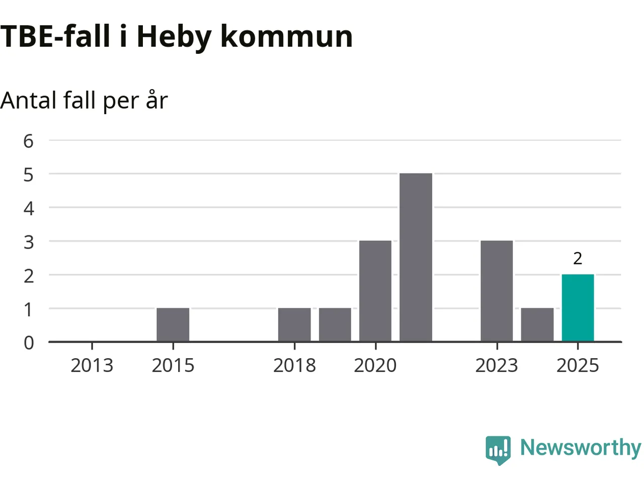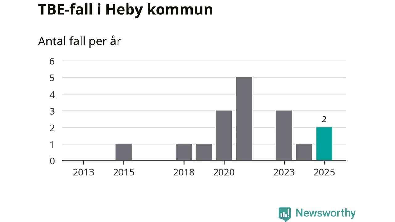 Under 2025 tillkom sju nya kommuner på den listan. Heby kommun räknas till kommunerna med förhöjd förekomst av TBE.