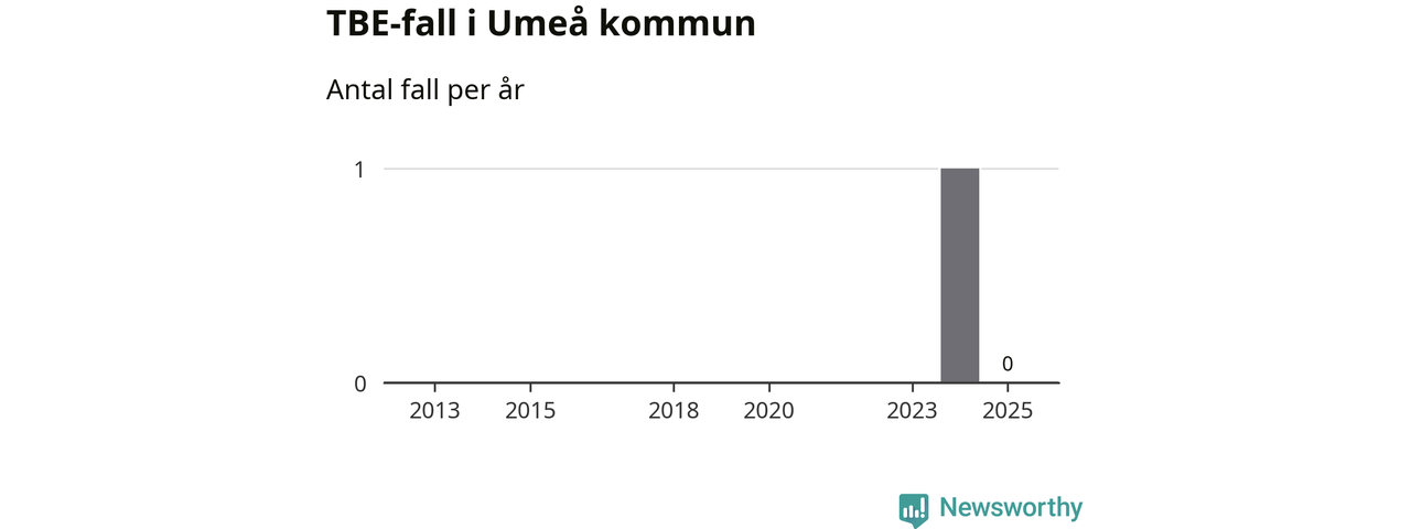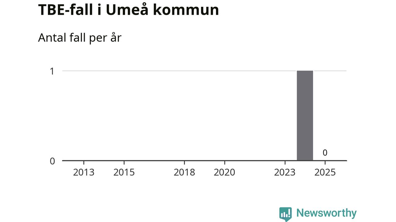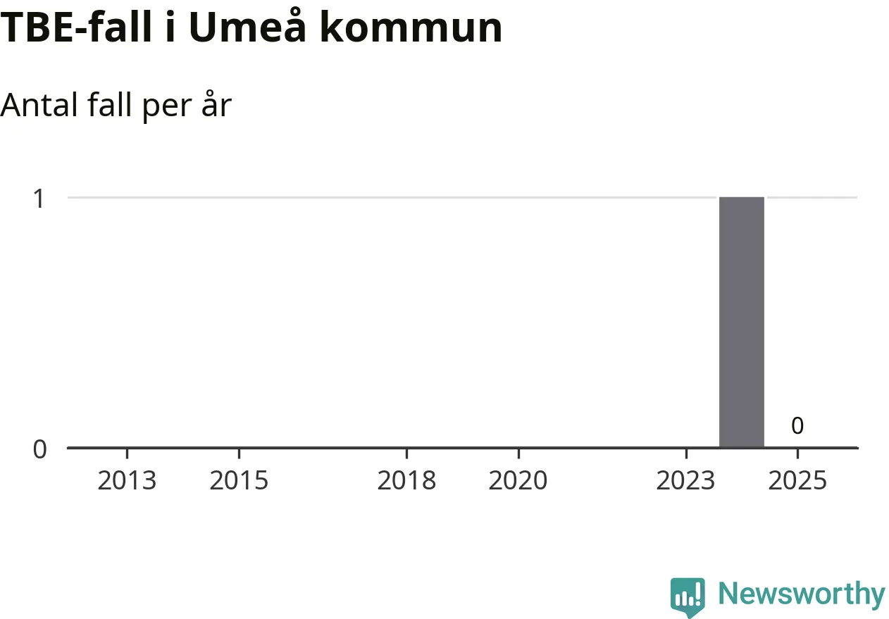 Inget TBE-fall rapporterades i Umeå kommun under 2025. Det är en minskning sedan året innan, då ett fall rapporterades i kommunen.