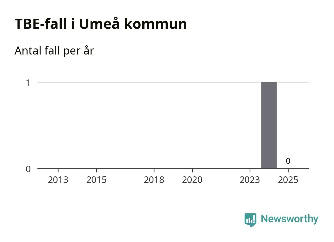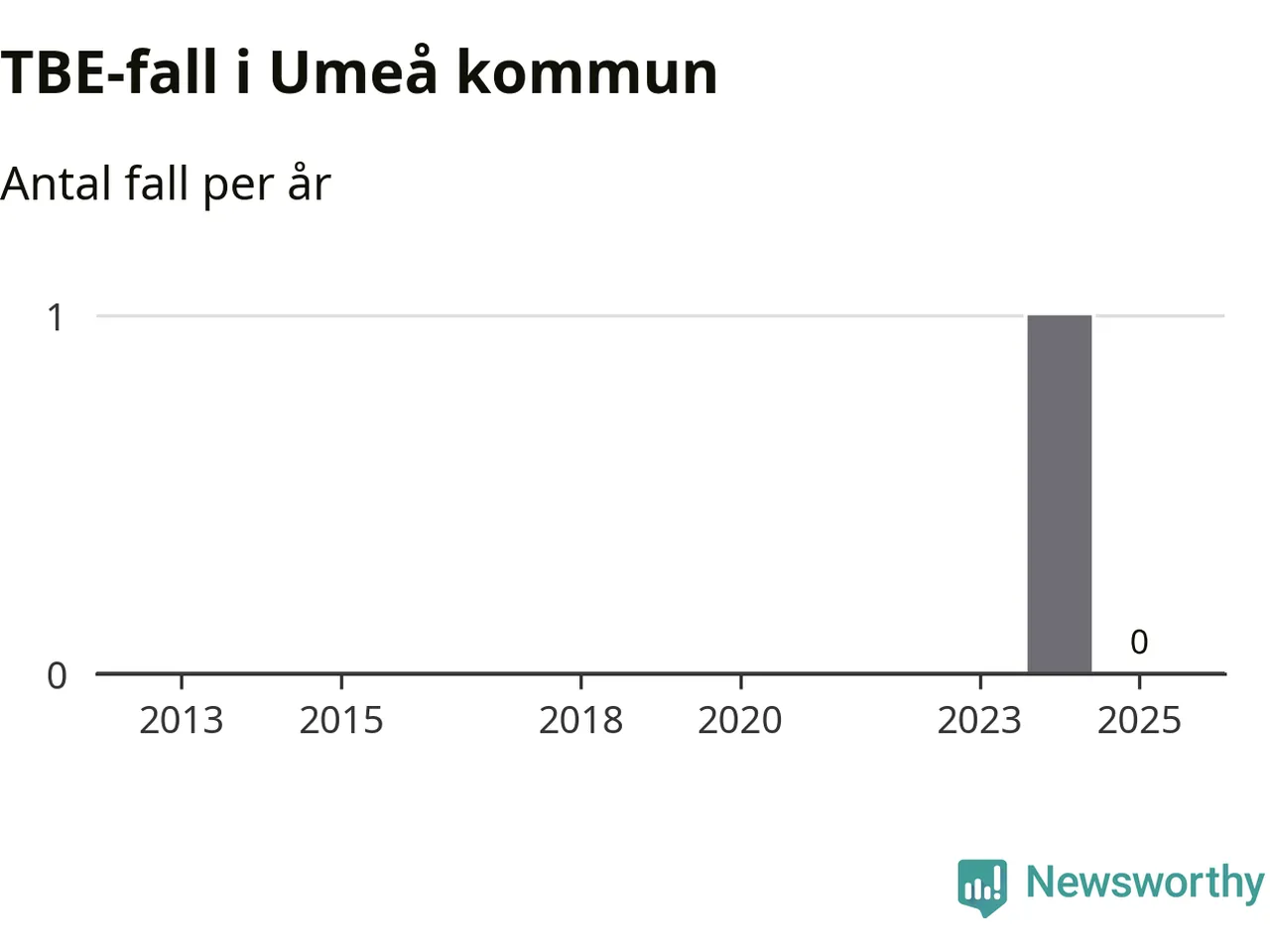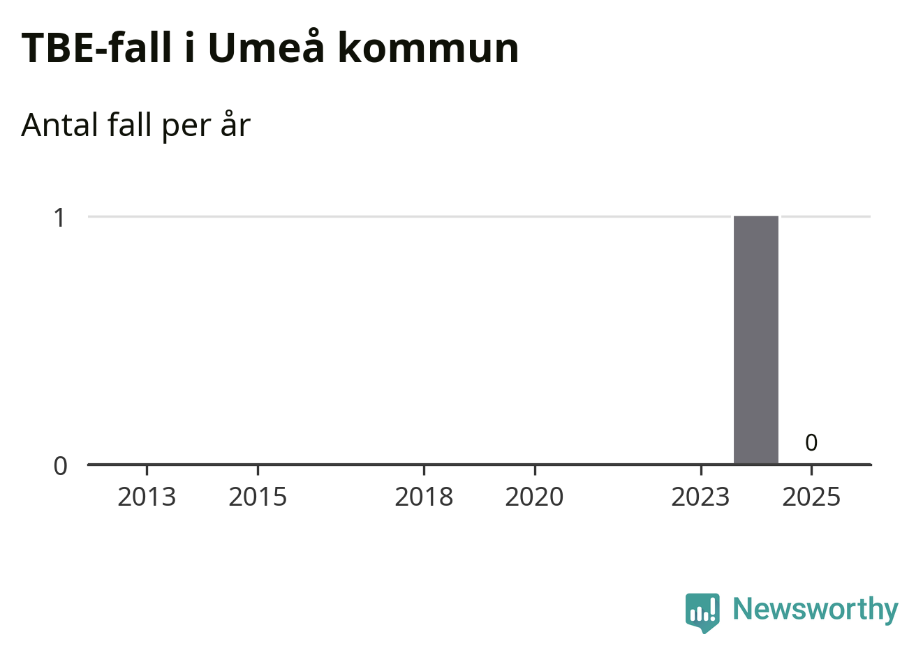 Inget TBE-fall rapporterades i Umeå kommun under 2025. Det är en minskning sedan året innan, då ett fall rapporterades i kommunen.