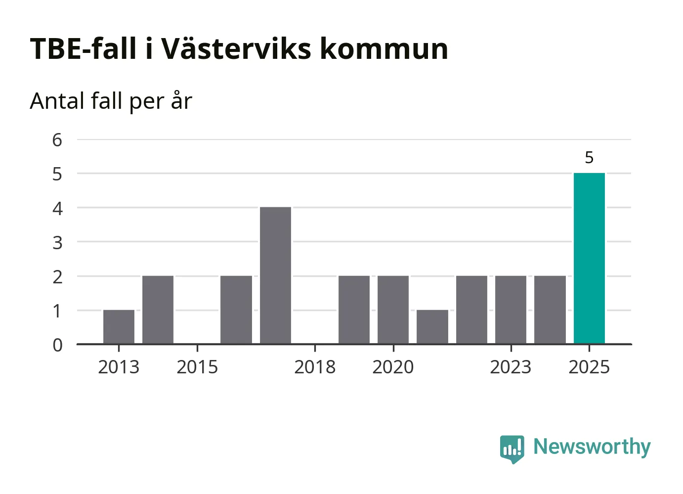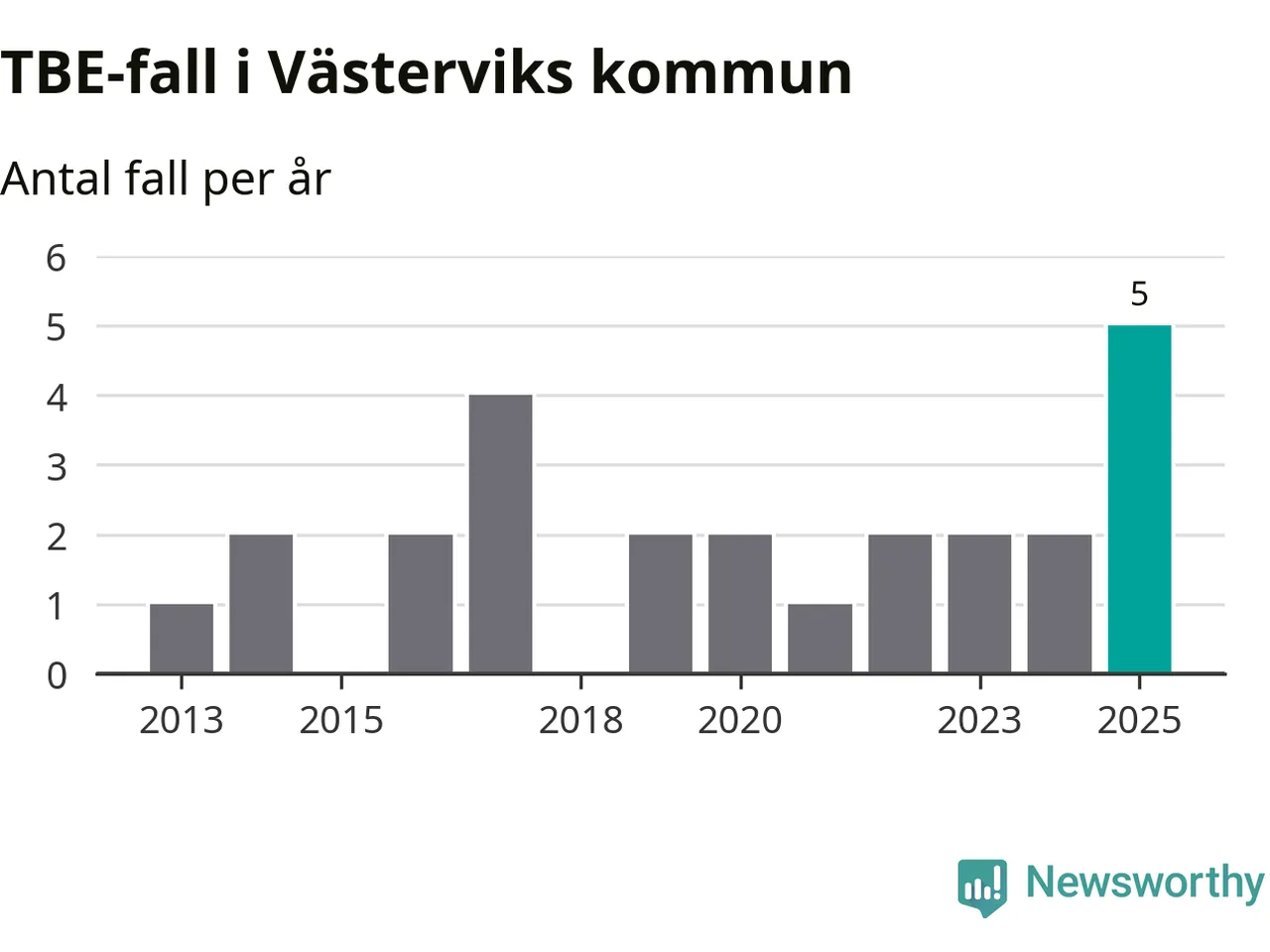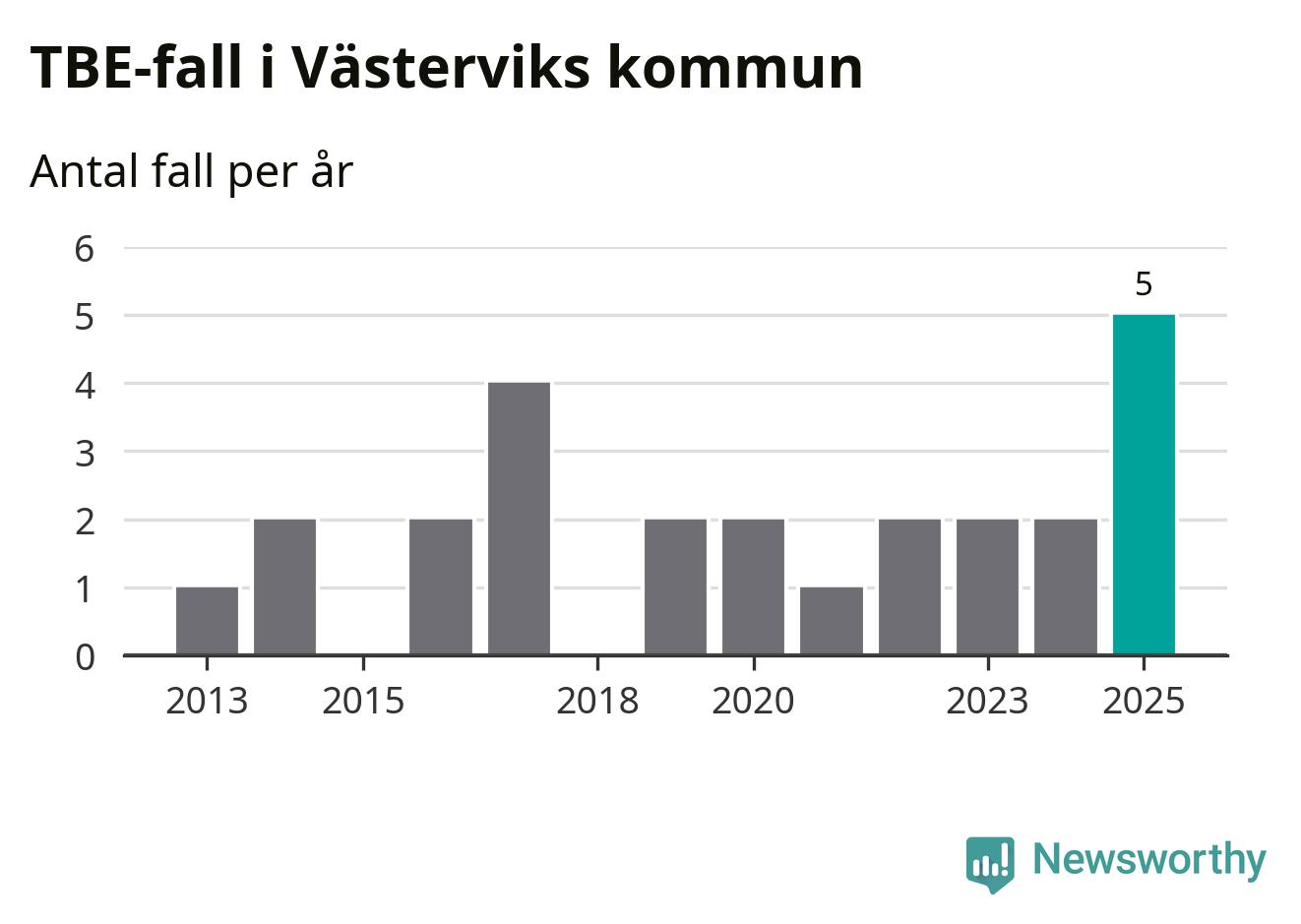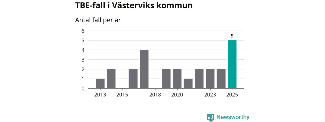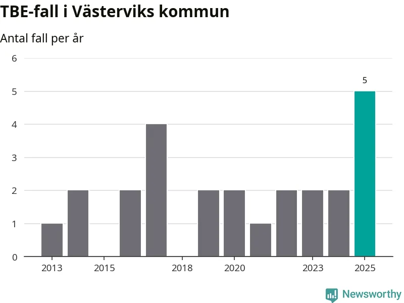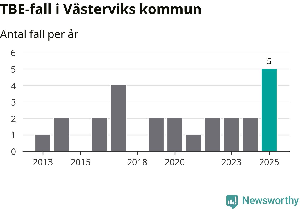 I Västerviks kommun rapporterades totalt fem smittfall. Det är tre fler än året innan, och det högsta antalet som hittills rapporterats i kommunen.