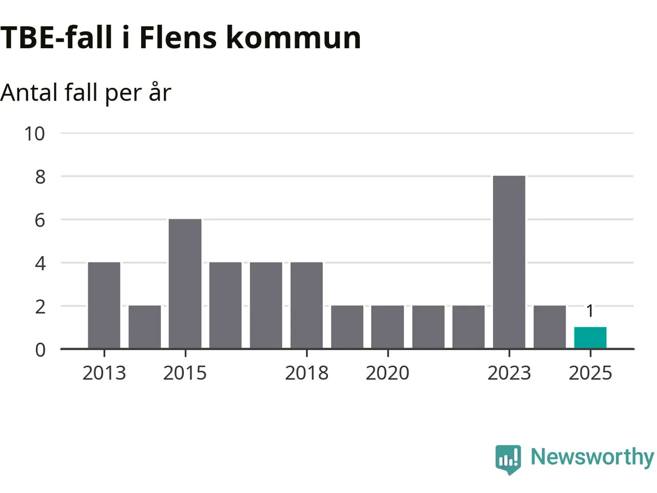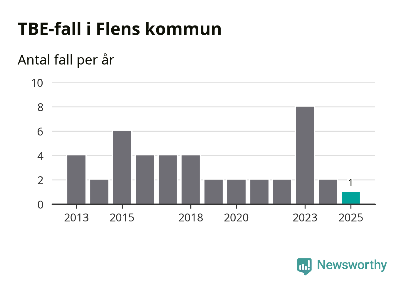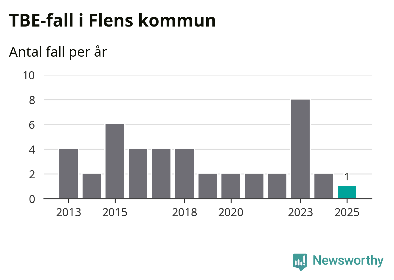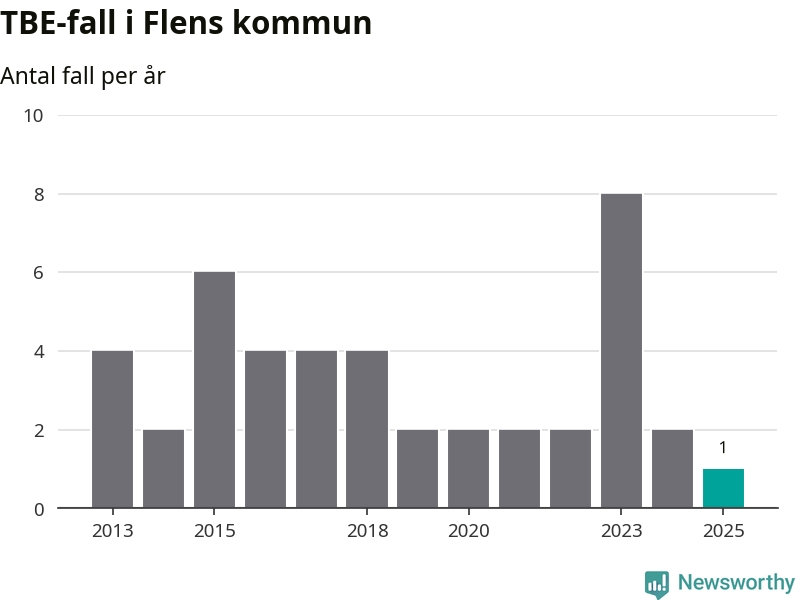 I Flens kommun rapporterades totalt ett smittfall. Det är en minskning sedan året innan då sjukdomssiffran låg på två rapporterade fall.