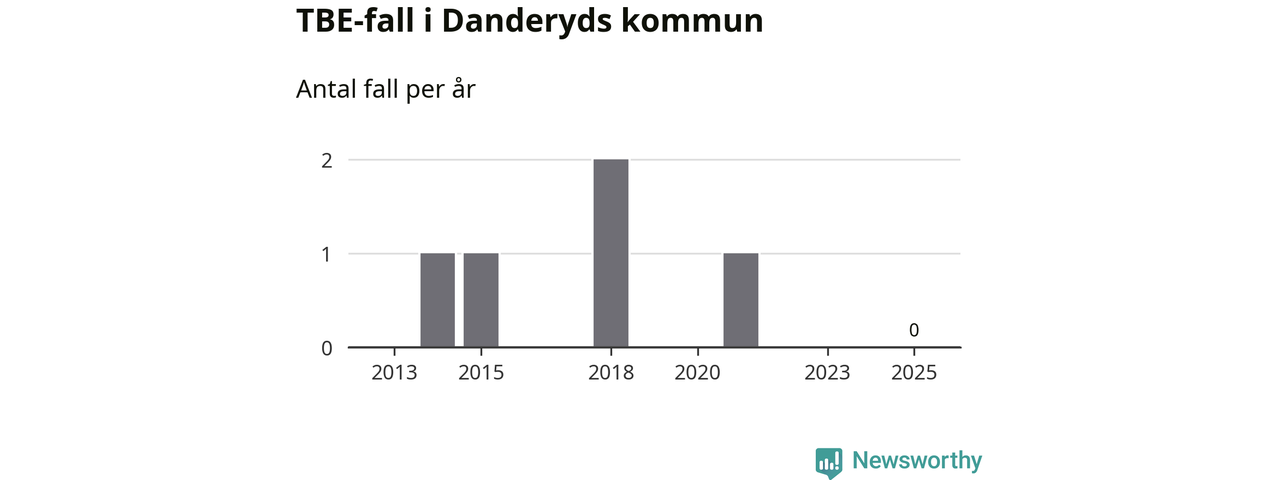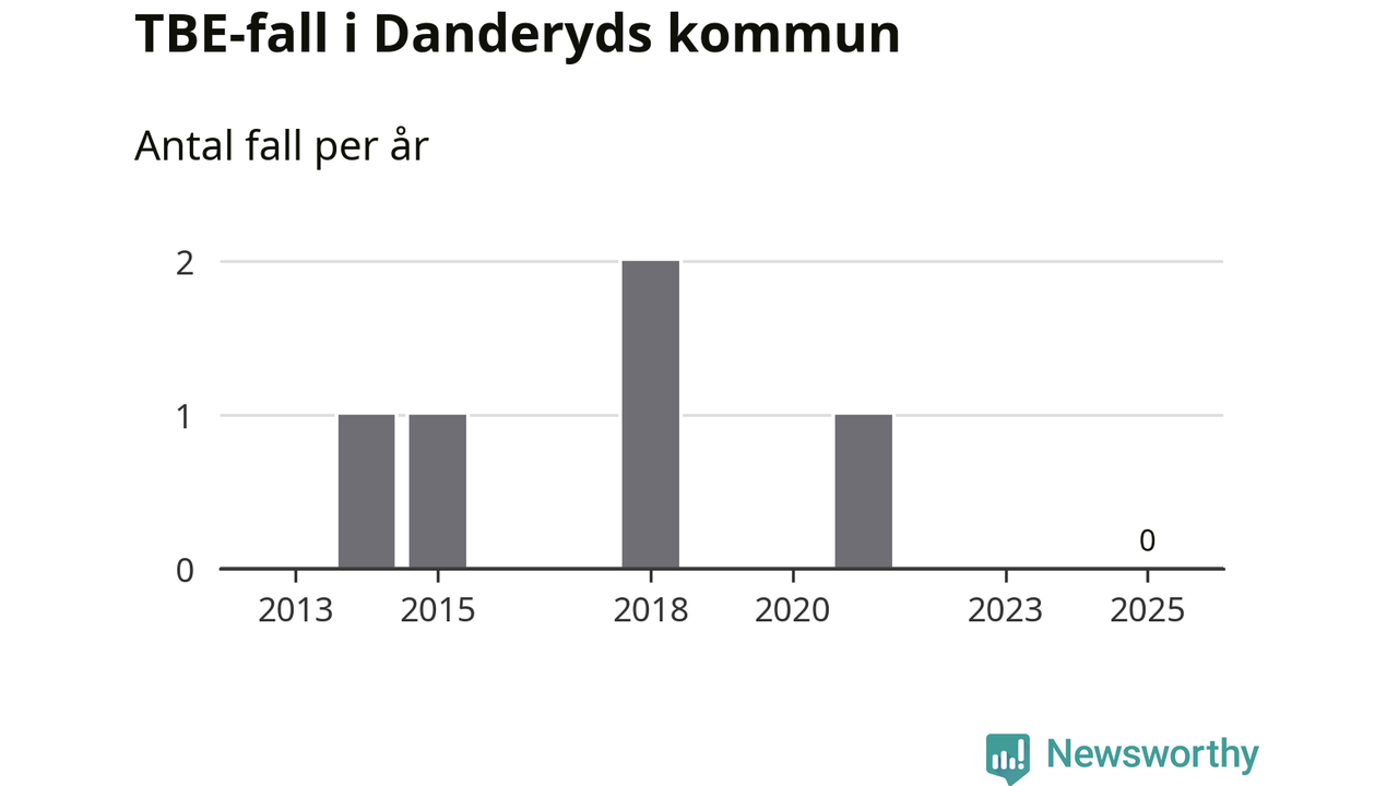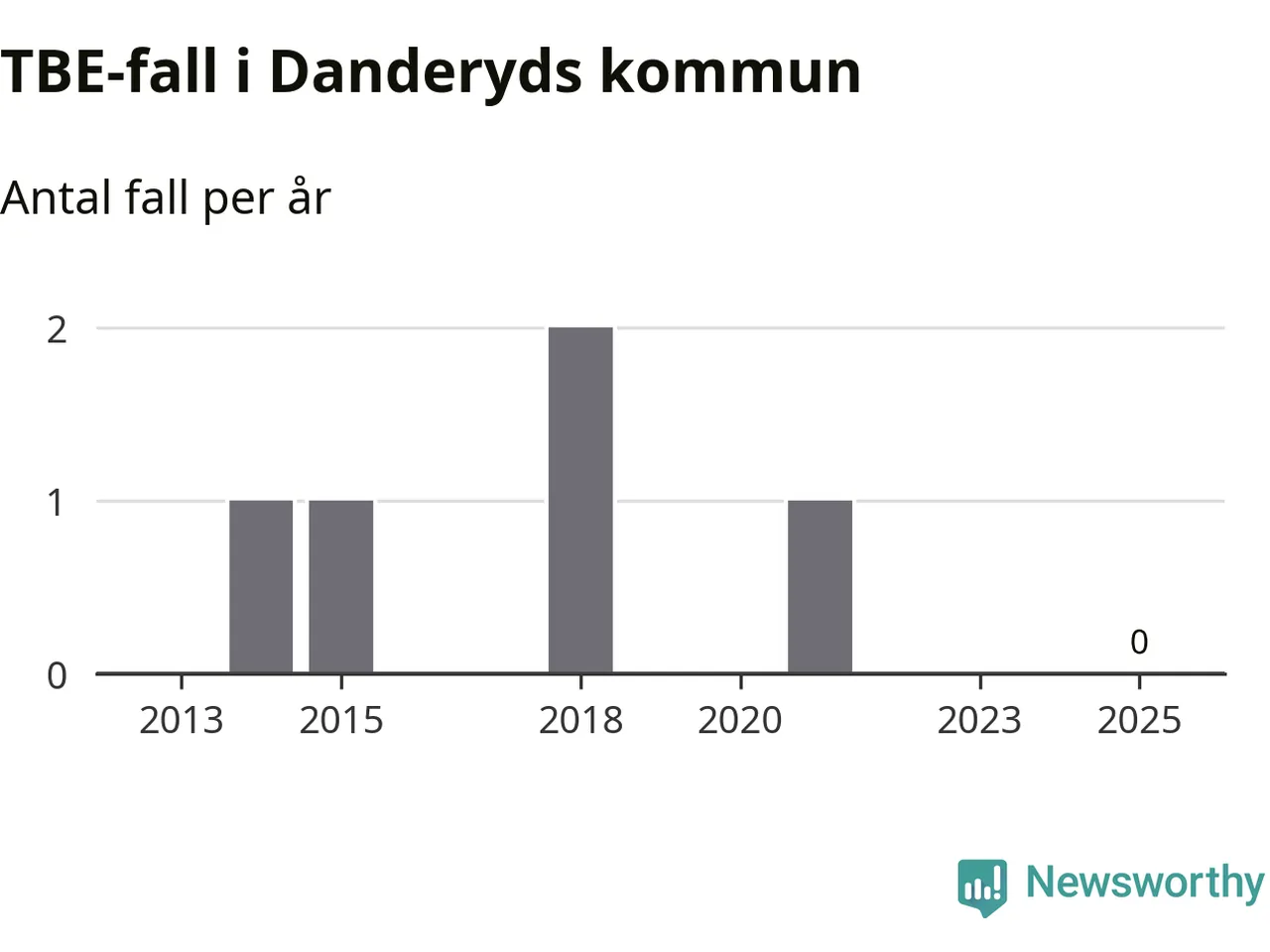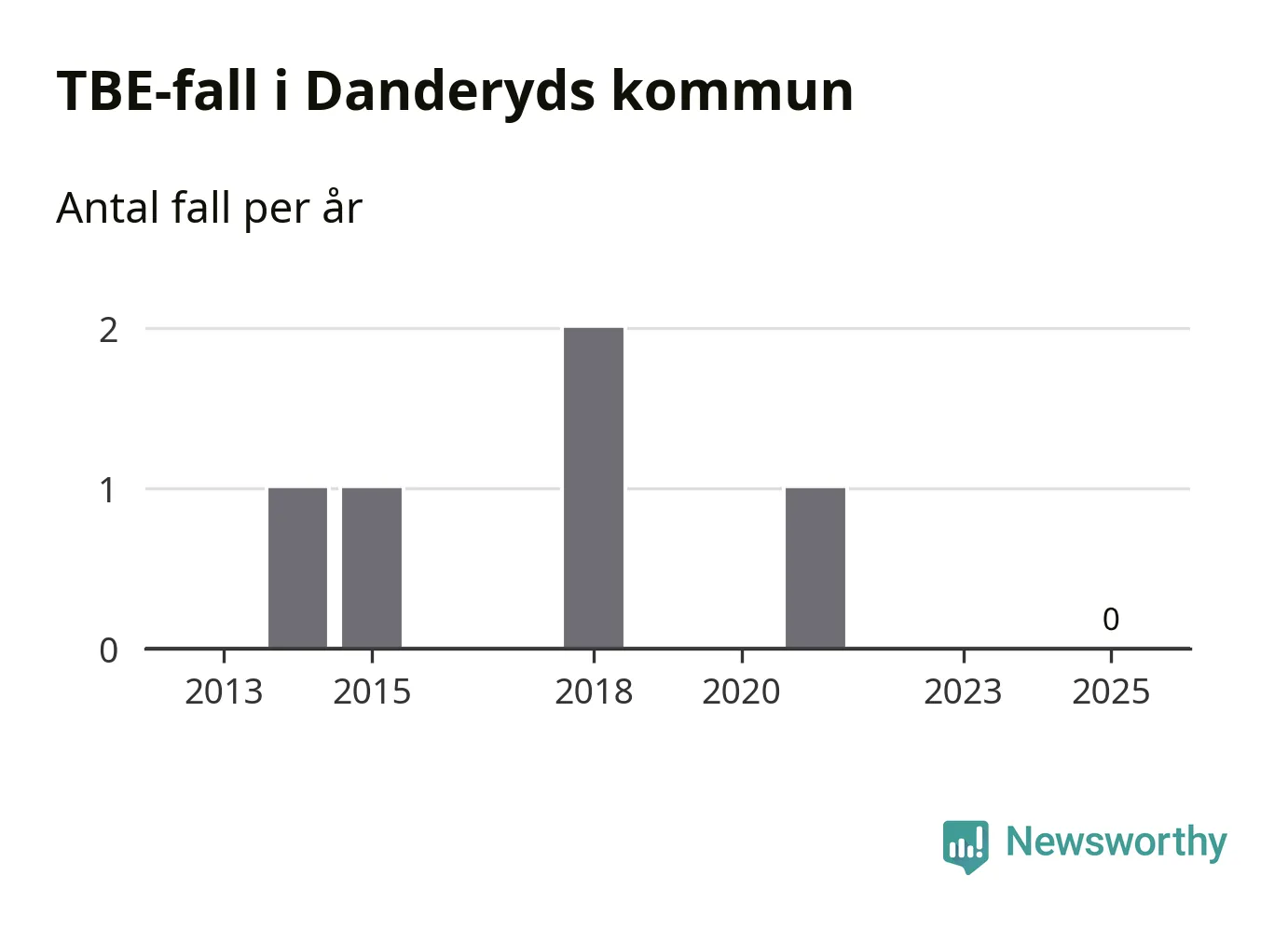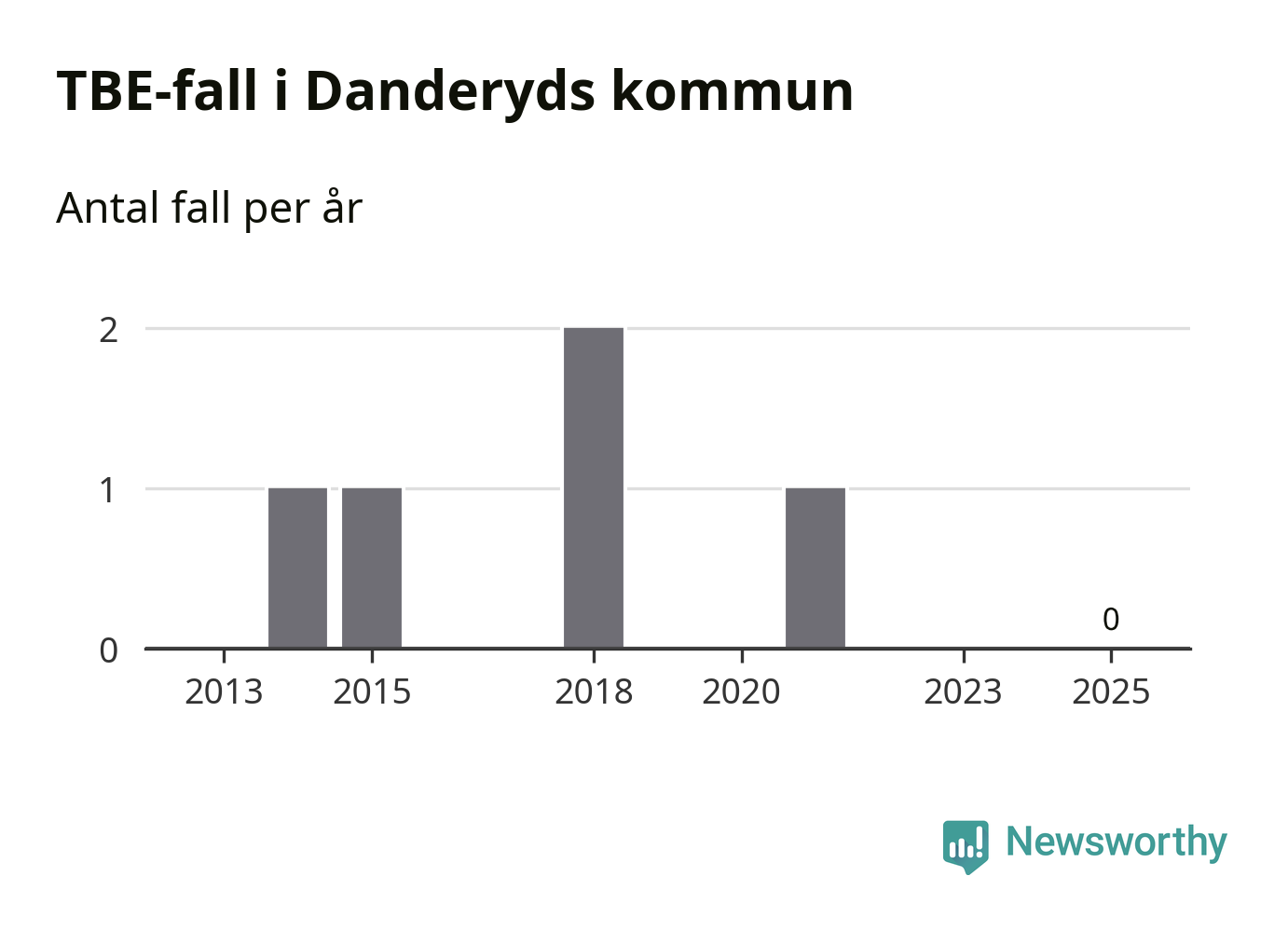 Inget TBE-fall rapporterades i Danderyds kommun under 2025. Inga TBE-fall har rapporterats i kommunen sedan 2021.