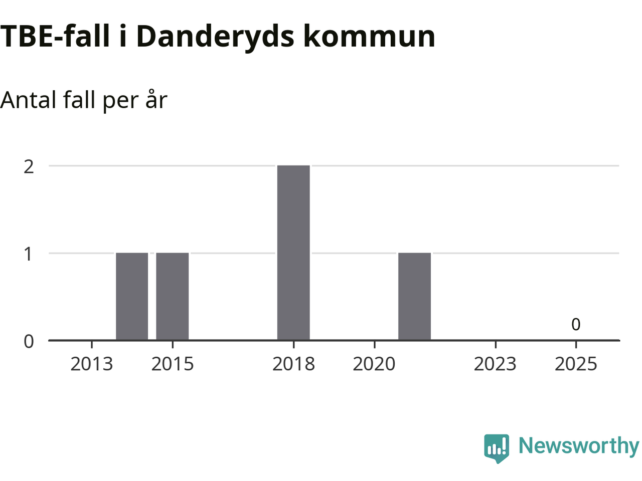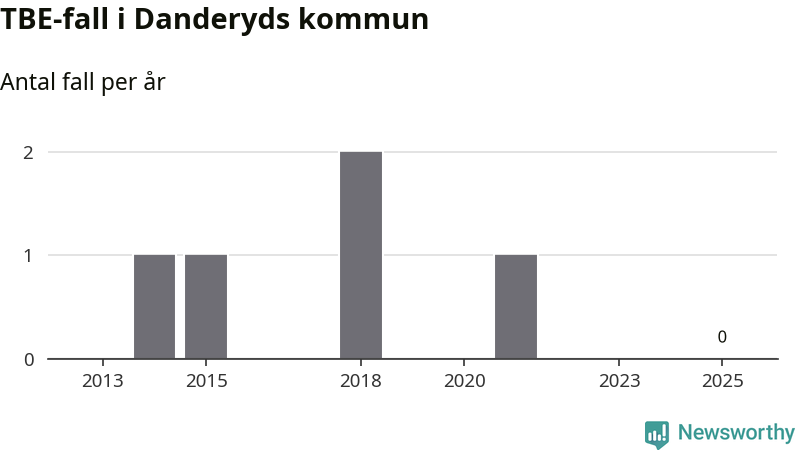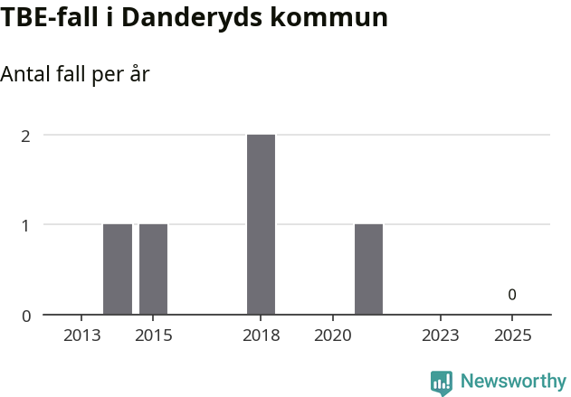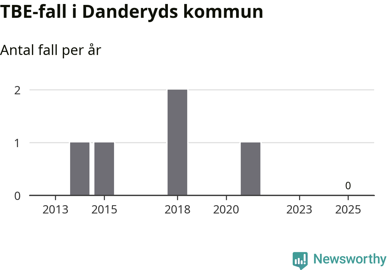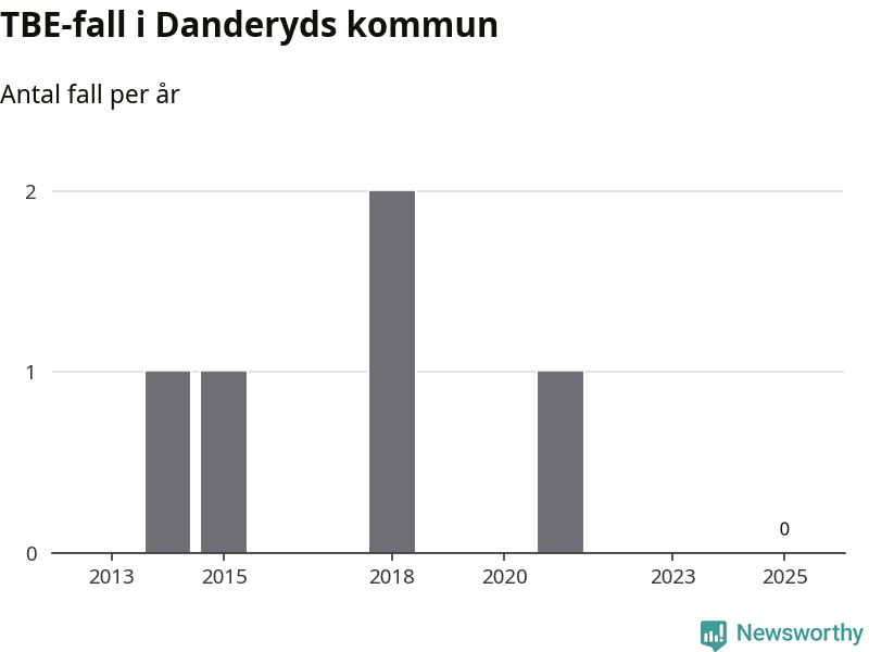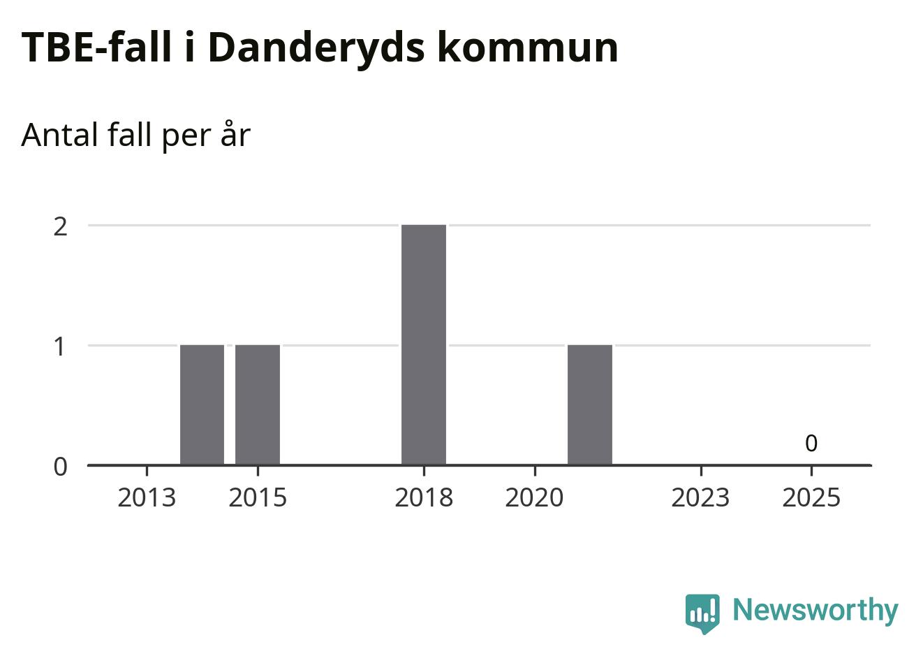 Inget TBE-fall rapporterades i Danderyds kommun under 2025. Inga TBE-fall har rapporterats i kommunen sedan 2021.