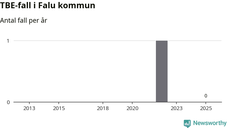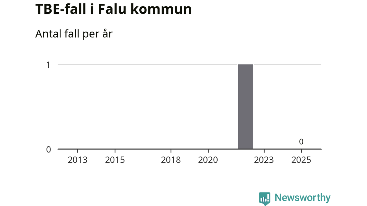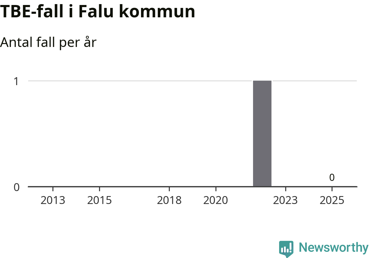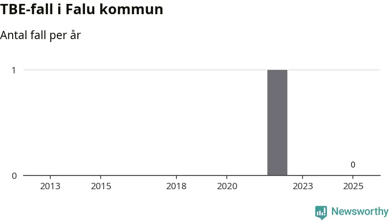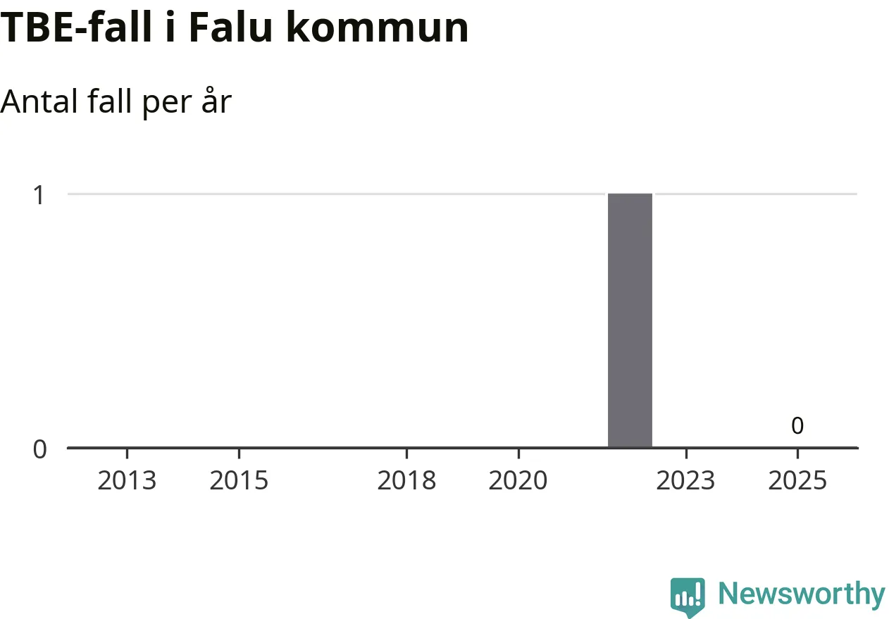 Inget TBE-fall rapporterades i Falu kommun under 2025. Inga TBE-fall har rapporterats i kommunen sedan 2022.