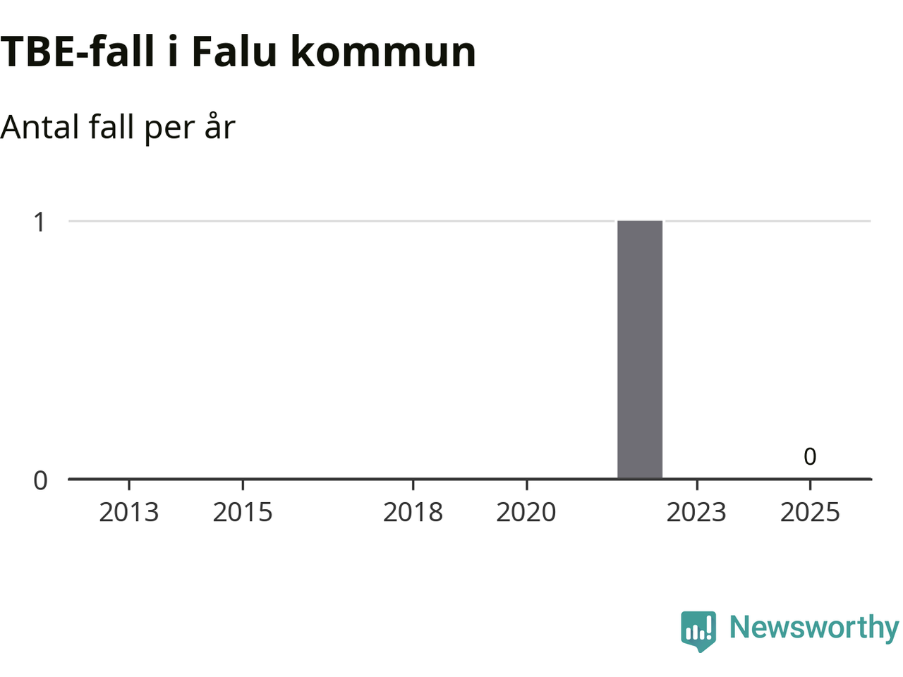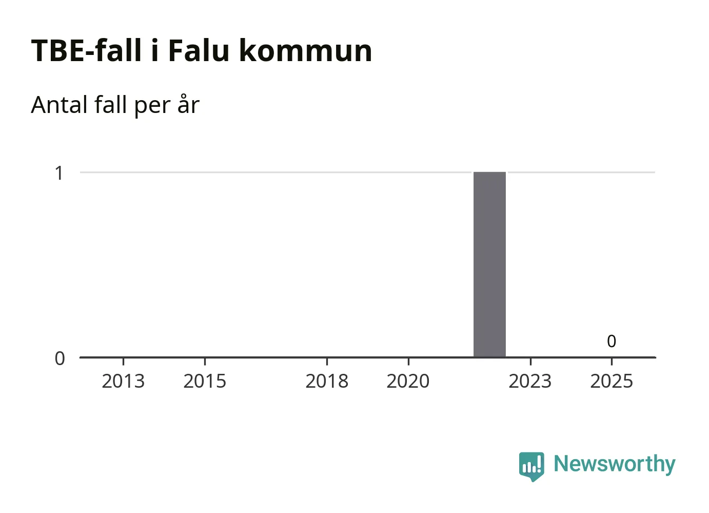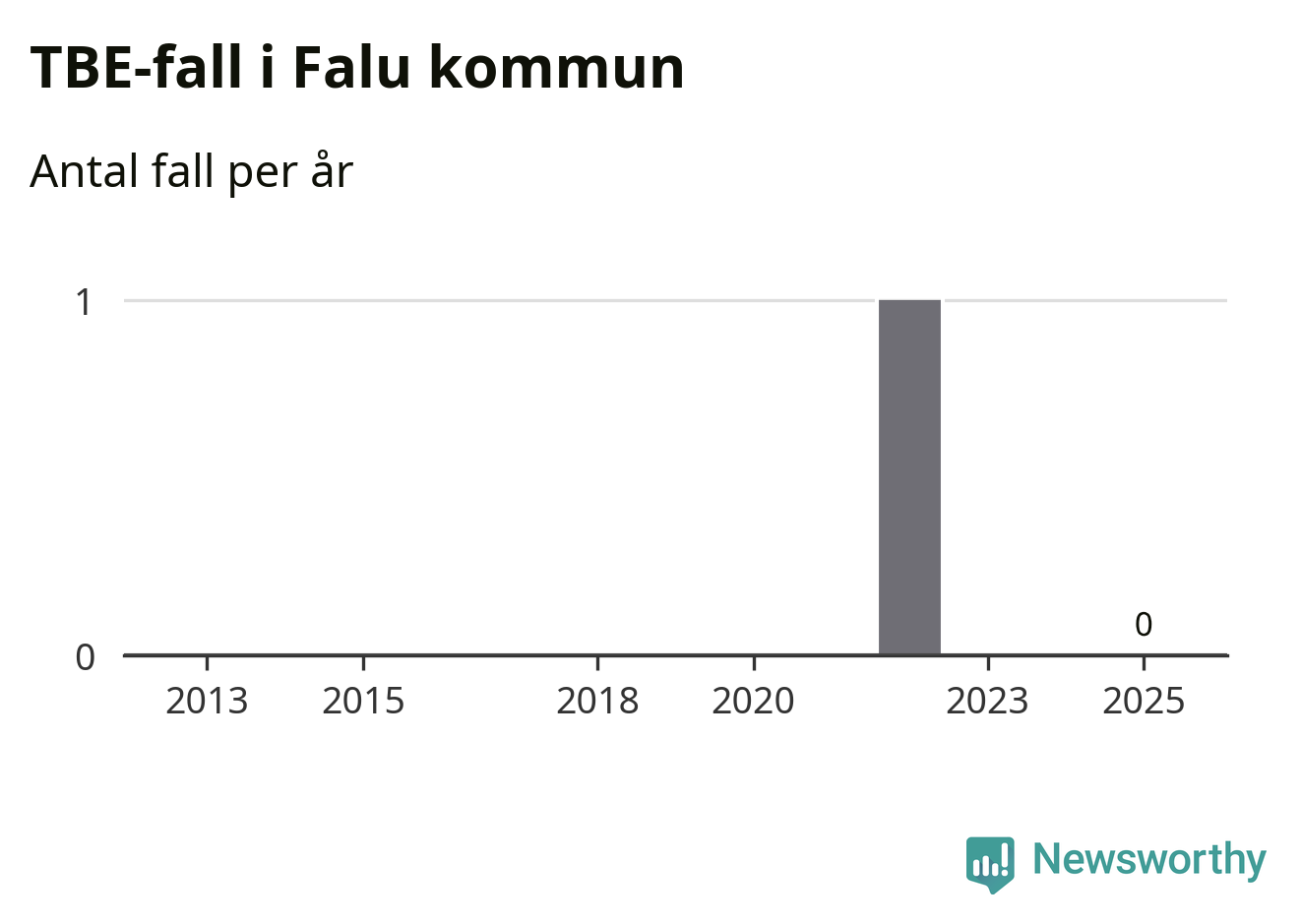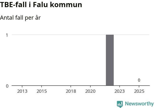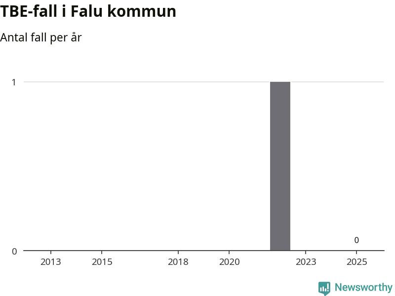 Inget TBE-fall rapporterades i Falu kommun under 2025. Inga TBE-fall har rapporterats i kommunen sedan 2022.