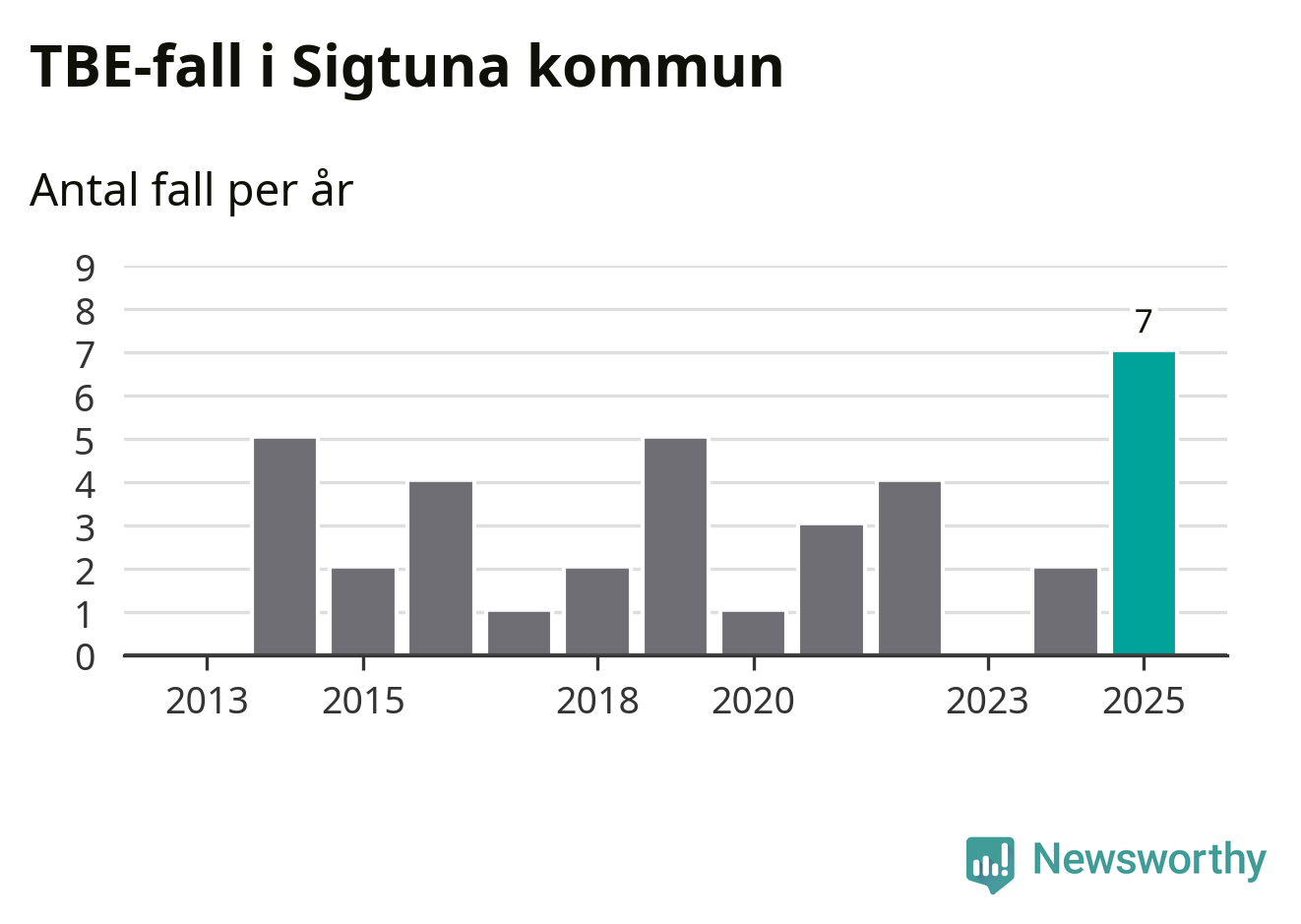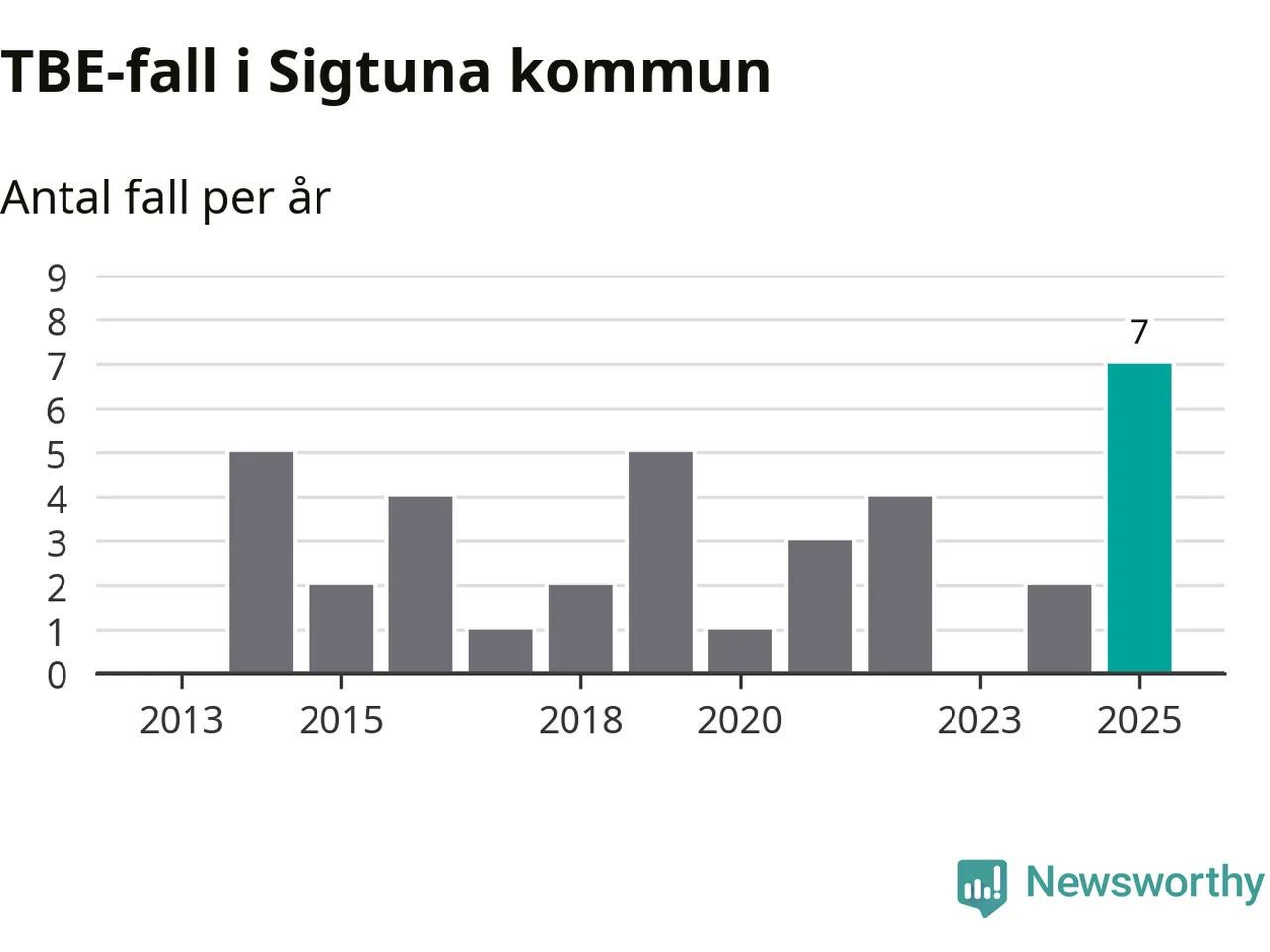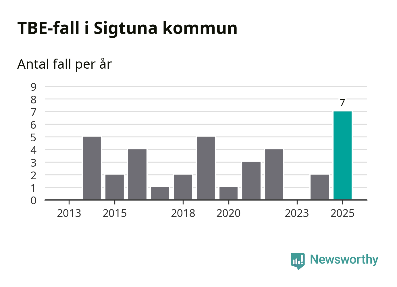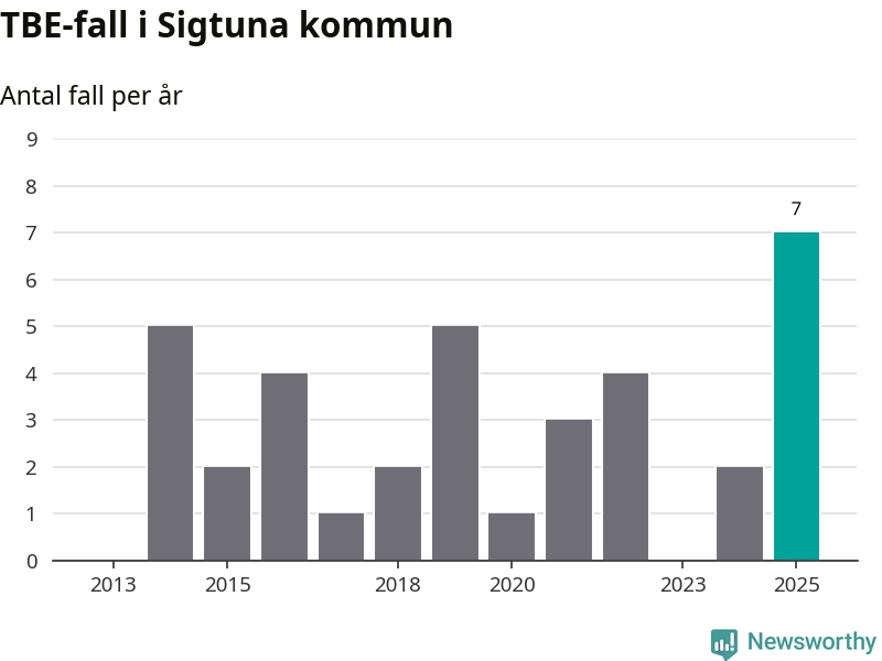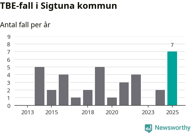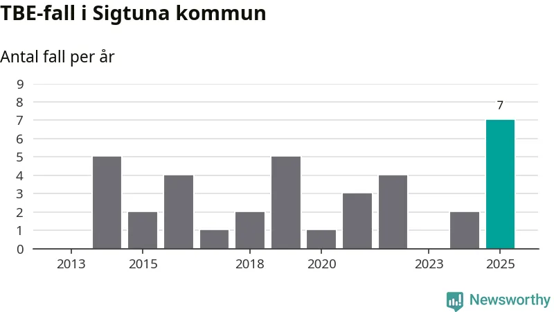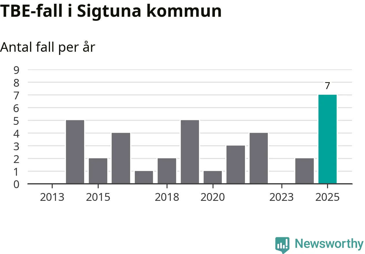 I Sigtuna kommun rapporterades totalt sju smittfall. Det är fem fler än året innan, och det högsta antalet som hittills rapporterats i kommunen.