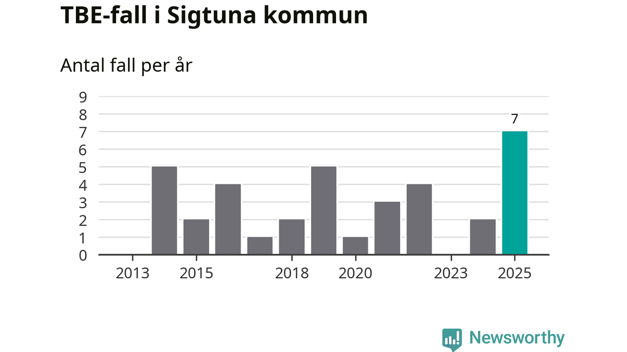 Under 2025 tillkom sju nya kommuner på den listan. Sigtuna kommun räknas till kommunerna med förhöjd förekomst av TBE. Det gör även resten av Stockholms län.
