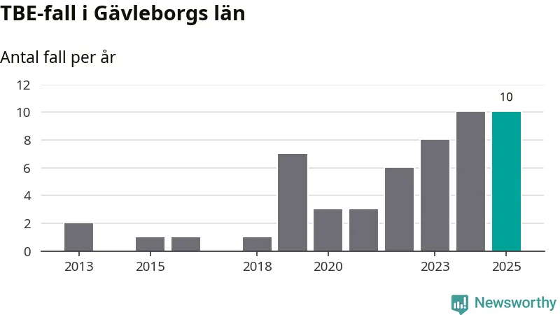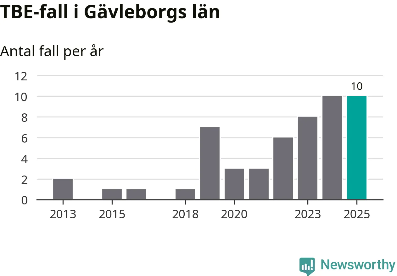 Under 2025 tillkom sju nya kommuner på den listan. Ingen del av Gävleborgs län räknas ännu som ett område med förhöjd förekomst av TBE.
