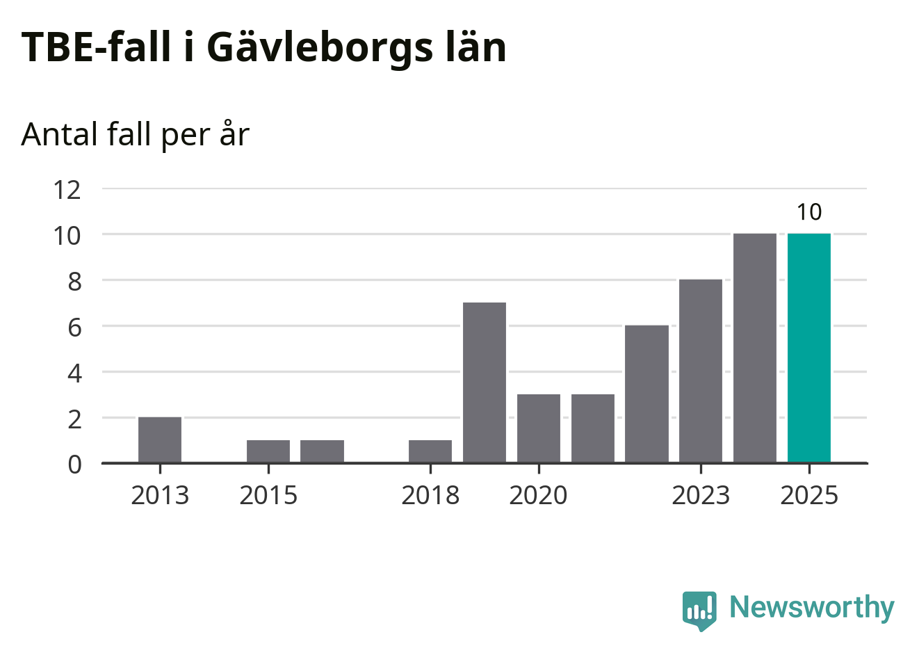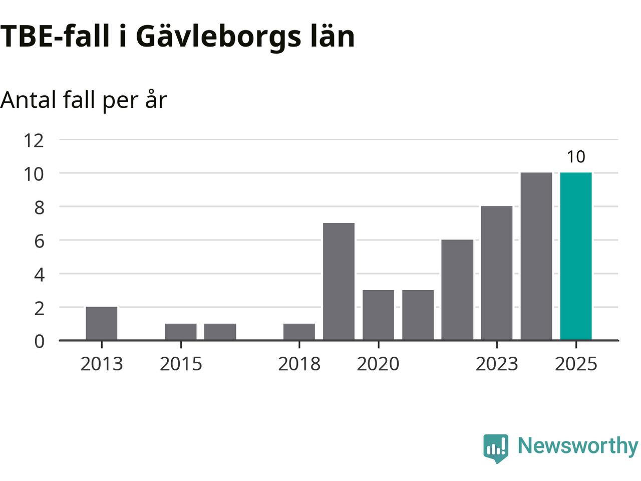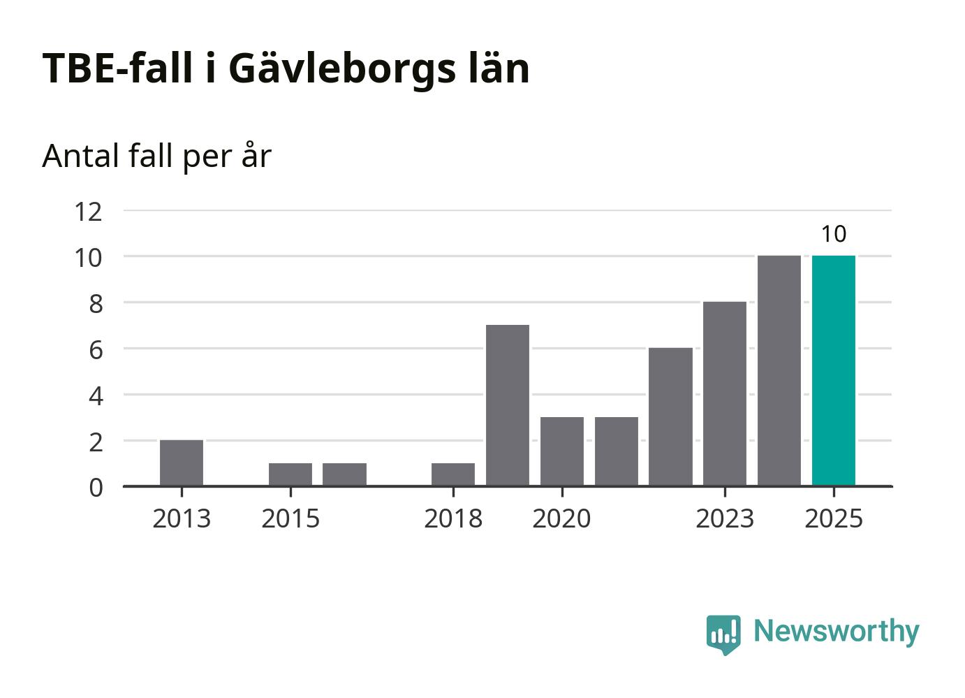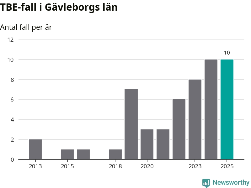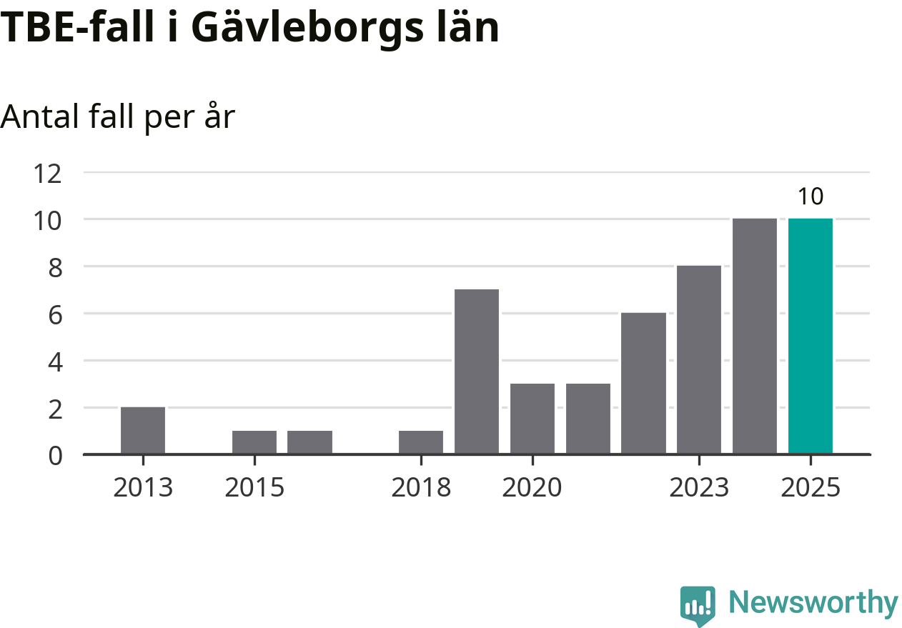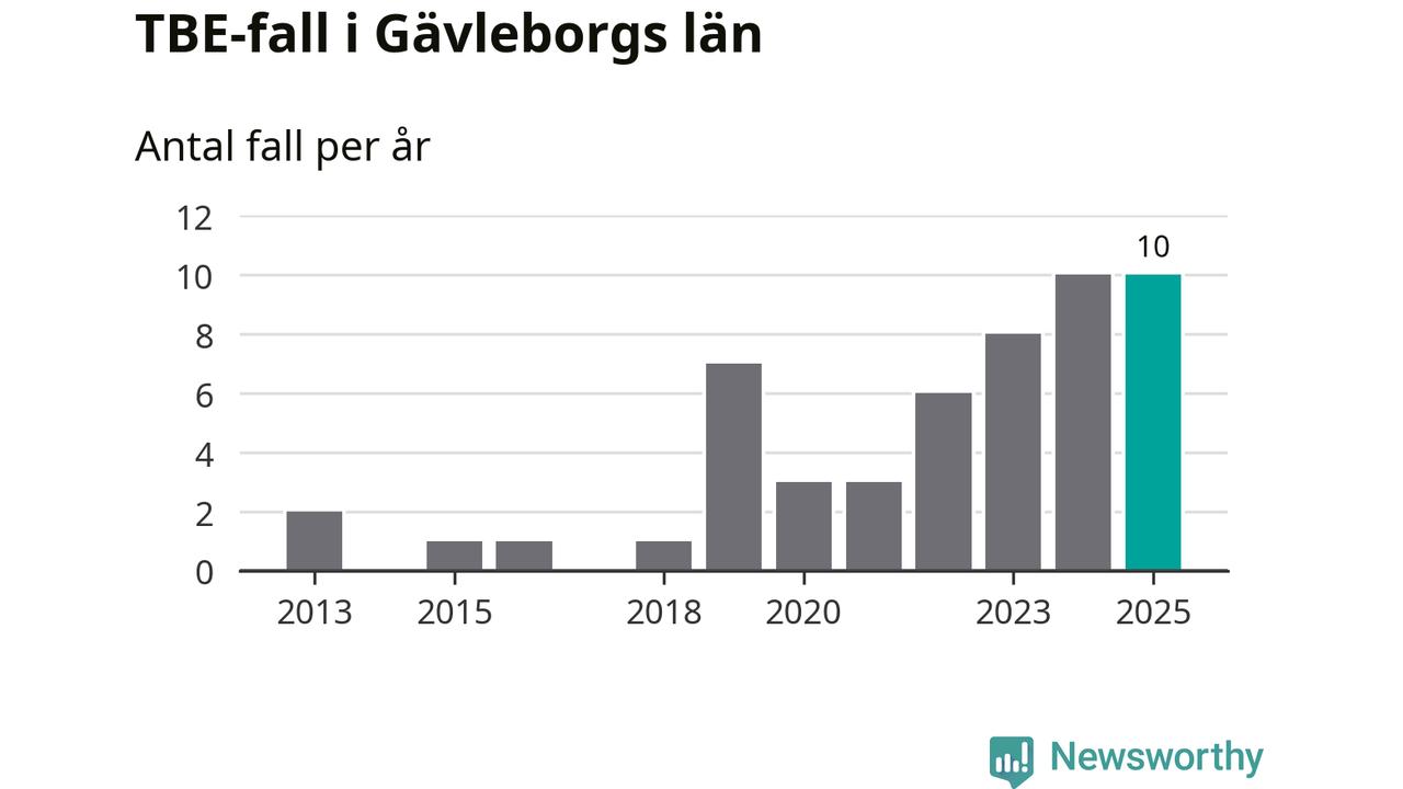 Den långsiktiga trenden är däremot tydlig. TBE-fallen blir allt fler i Sverige. Sett över tid har antalet anmälda fall i landet som helhet ökat med drygt sex procent per år sedan 2013. Totalt motsvarar det en ökning på 141 procent om vi jämför 2013 med 2025 års siffror.