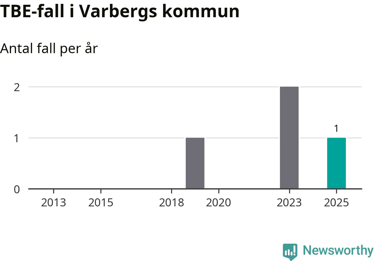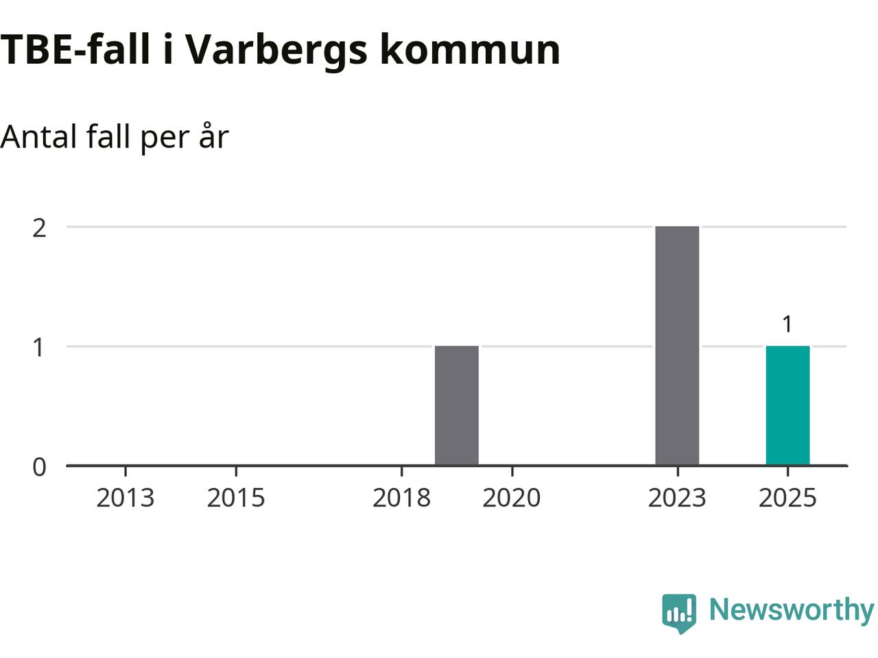 I Varbergs kommun rapporterades totalt ett smittfall. Sedan 2013 har det rapporterats totalt fyra fall i kommunen.