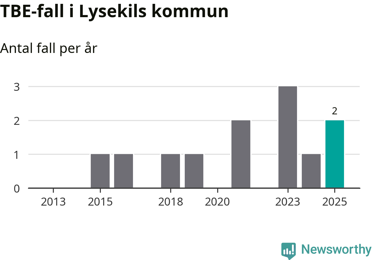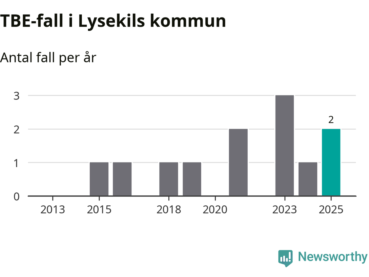 Den långsiktiga trenden är däremot tydlig. TBE-fallen blir allt fler i Sverige. Sett över tid har antalet anmälda fall i landet som helhet ökat med drygt sex procent per år sedan 2013. Totalt motsvarar det en ökning på 141 procent om vi jämför 2013 med 2025 års siffror.