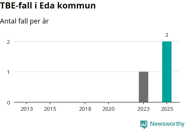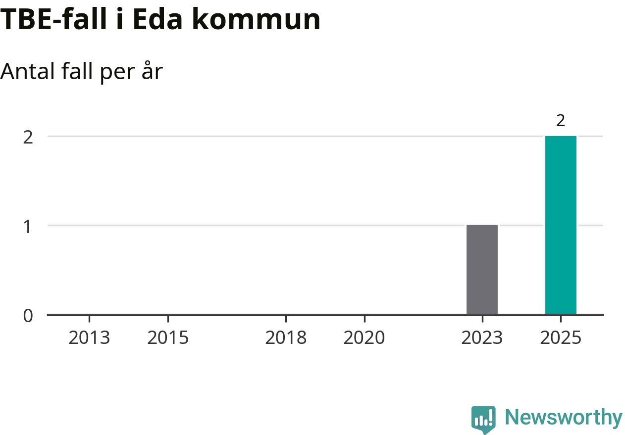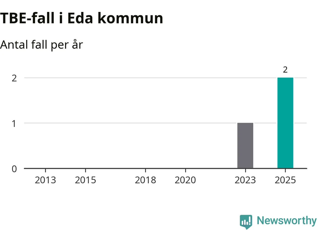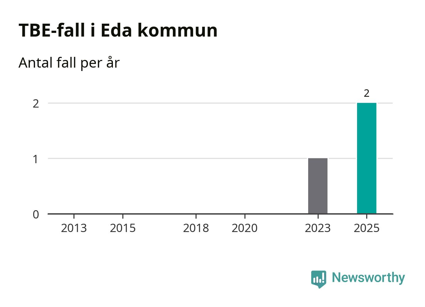 I Eda kommun rapporterades totalt två smittfall. Det är två fler än året innan, och det högsta antalet som hittills rapporterats i kommunen.