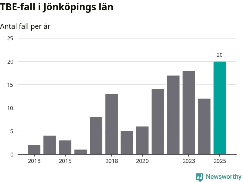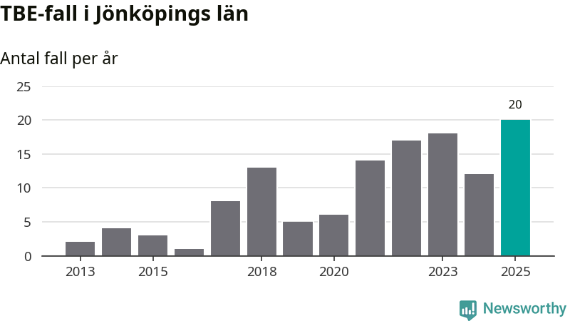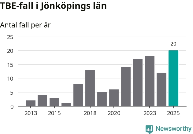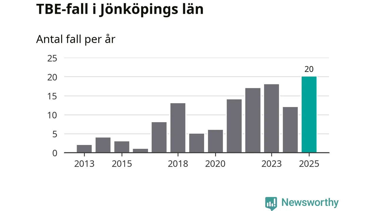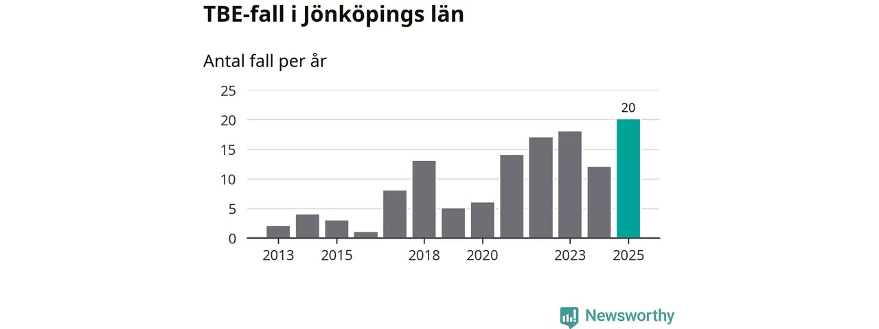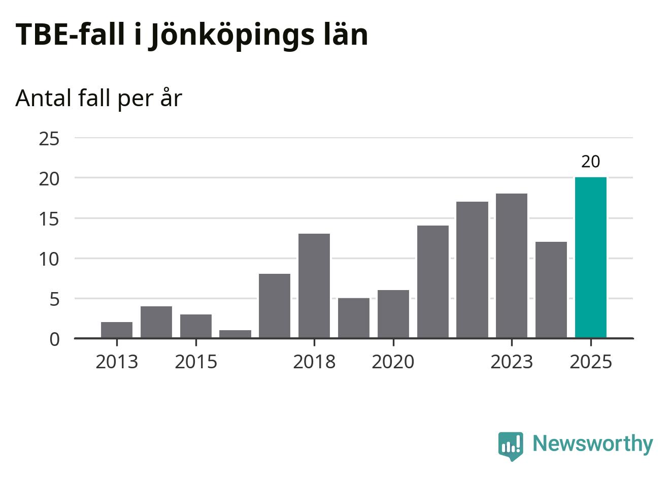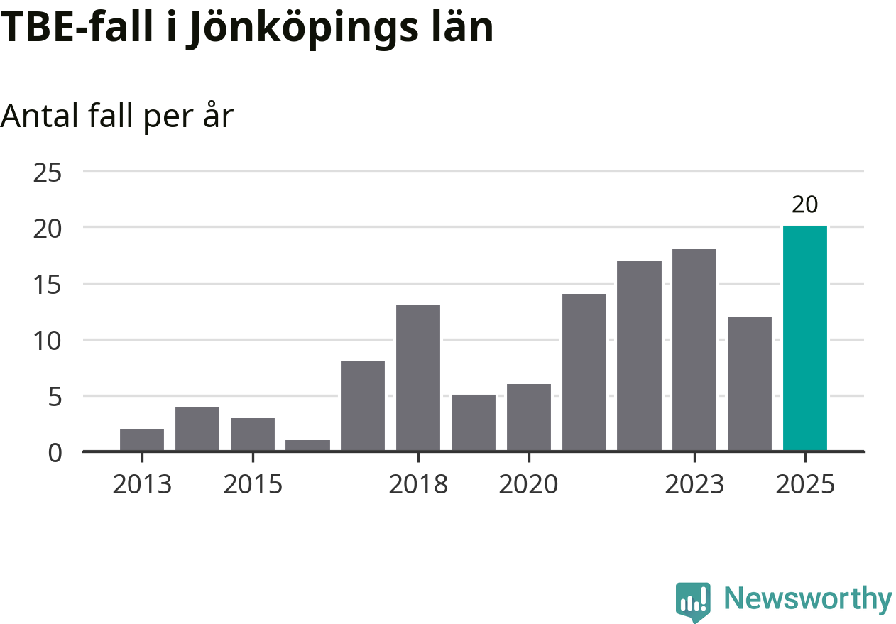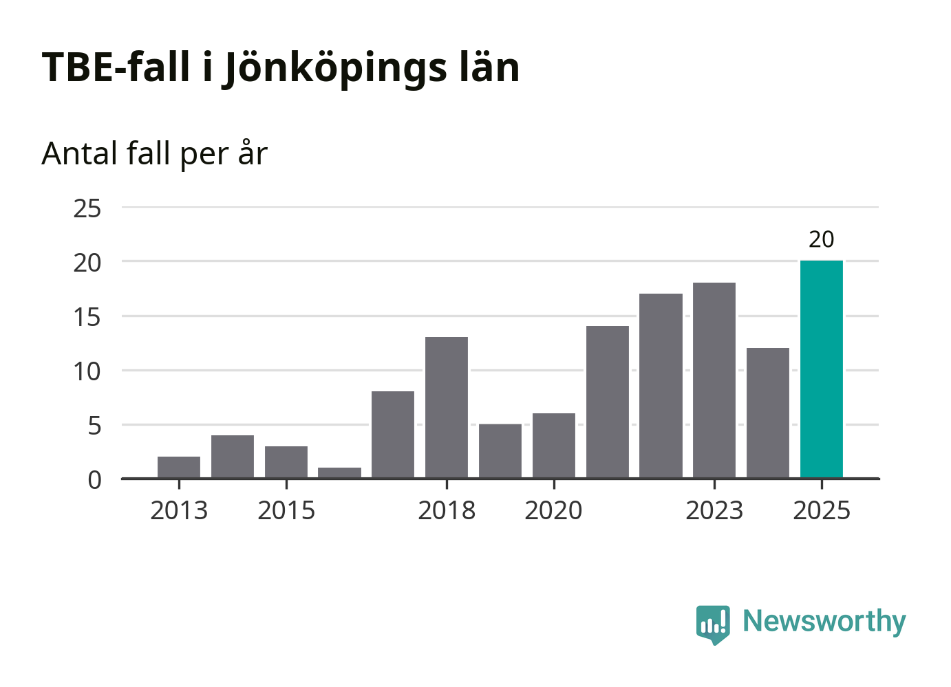 Under 2025 tillkom sju nya kommuner på den listan. Ingen del av Jönköpings län räknas ännu som ett område med förhöjd förekomst av TBE.
