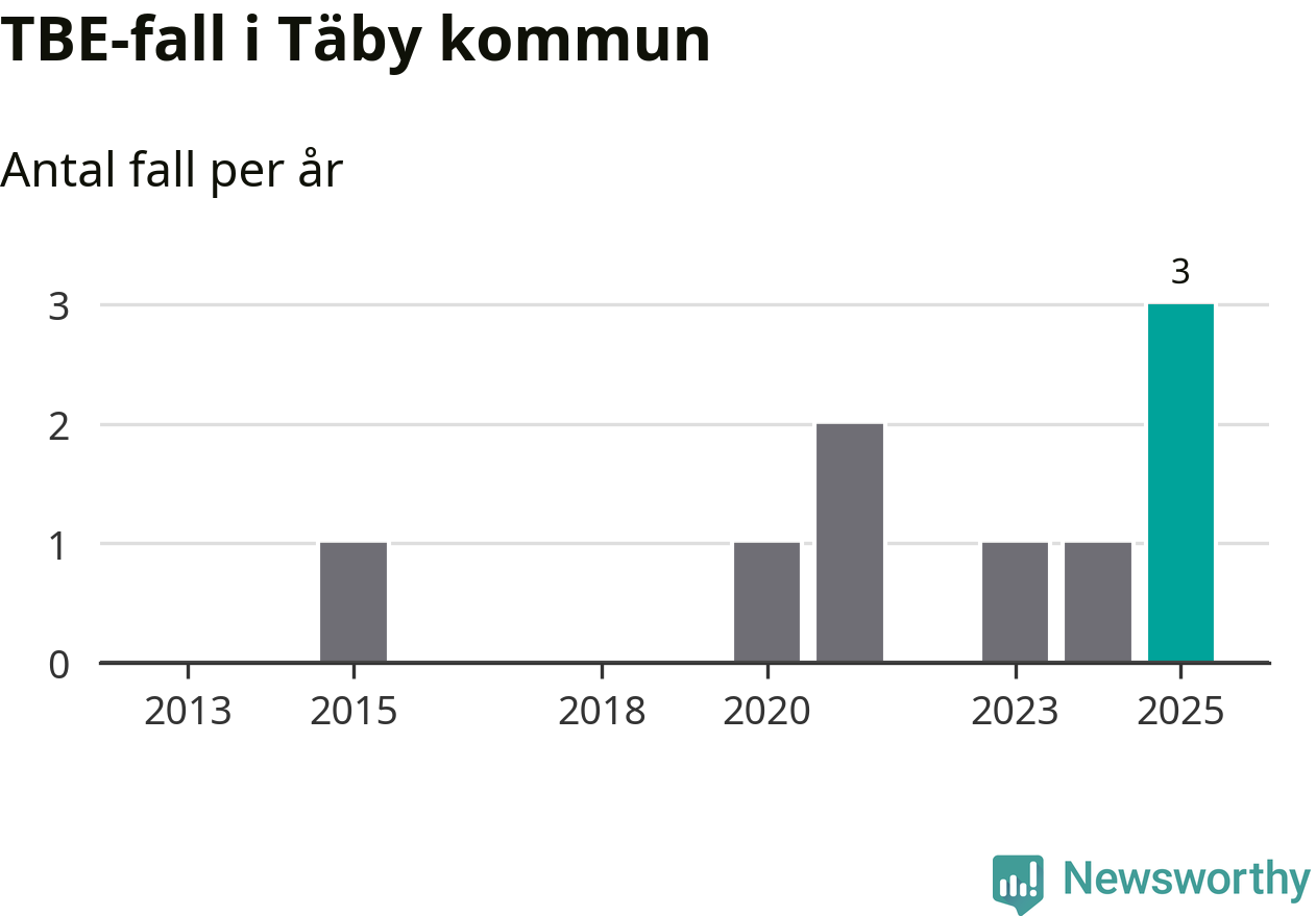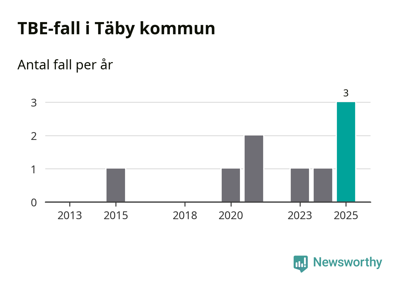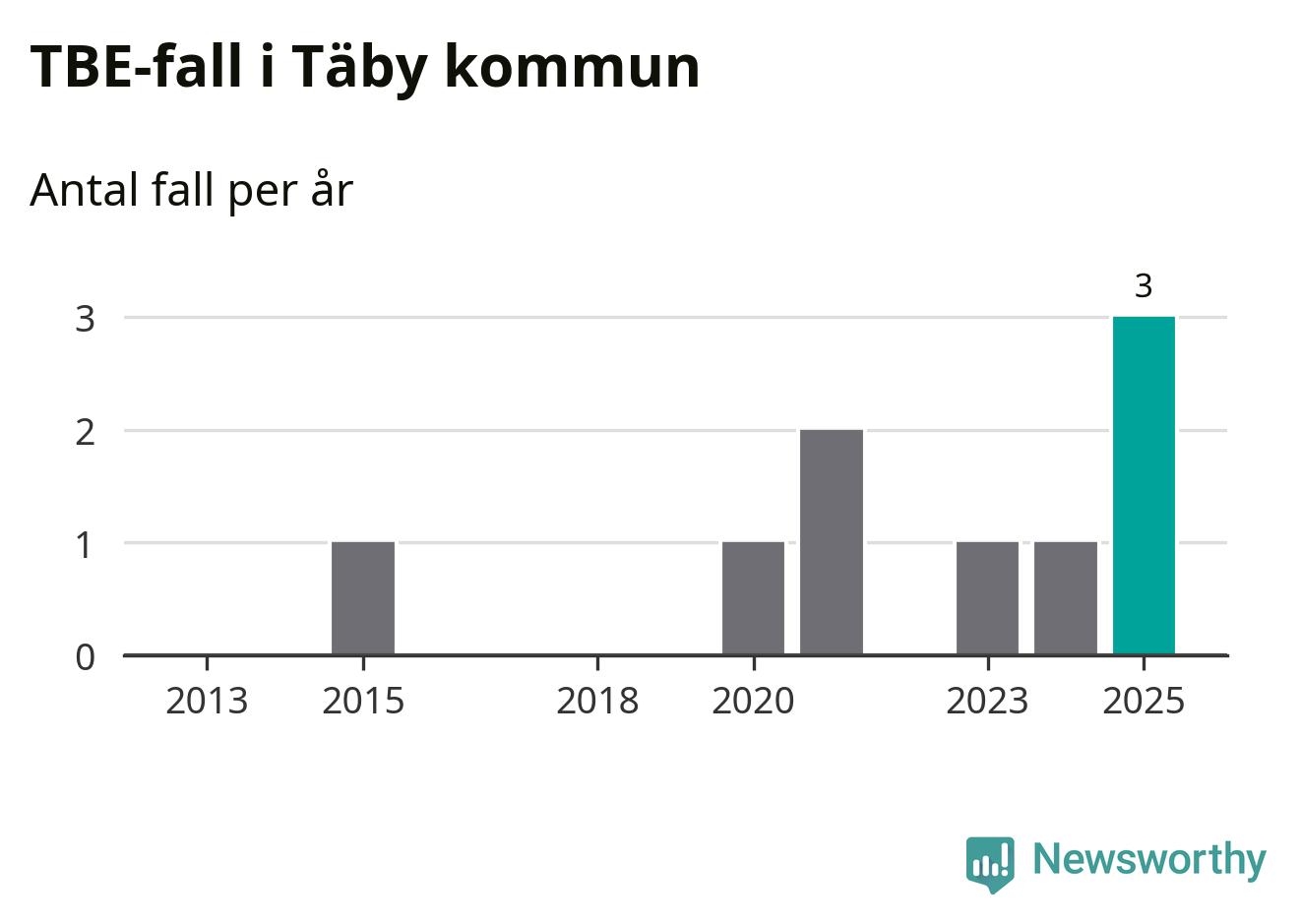 I Täby kommun rapporterades totalt tre smittfall. Det är två fler än året innan, och det högsta antalet som hittills rapporterats i kommunen.