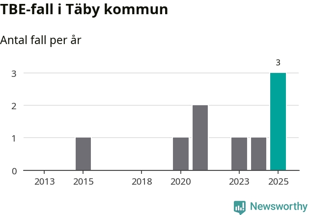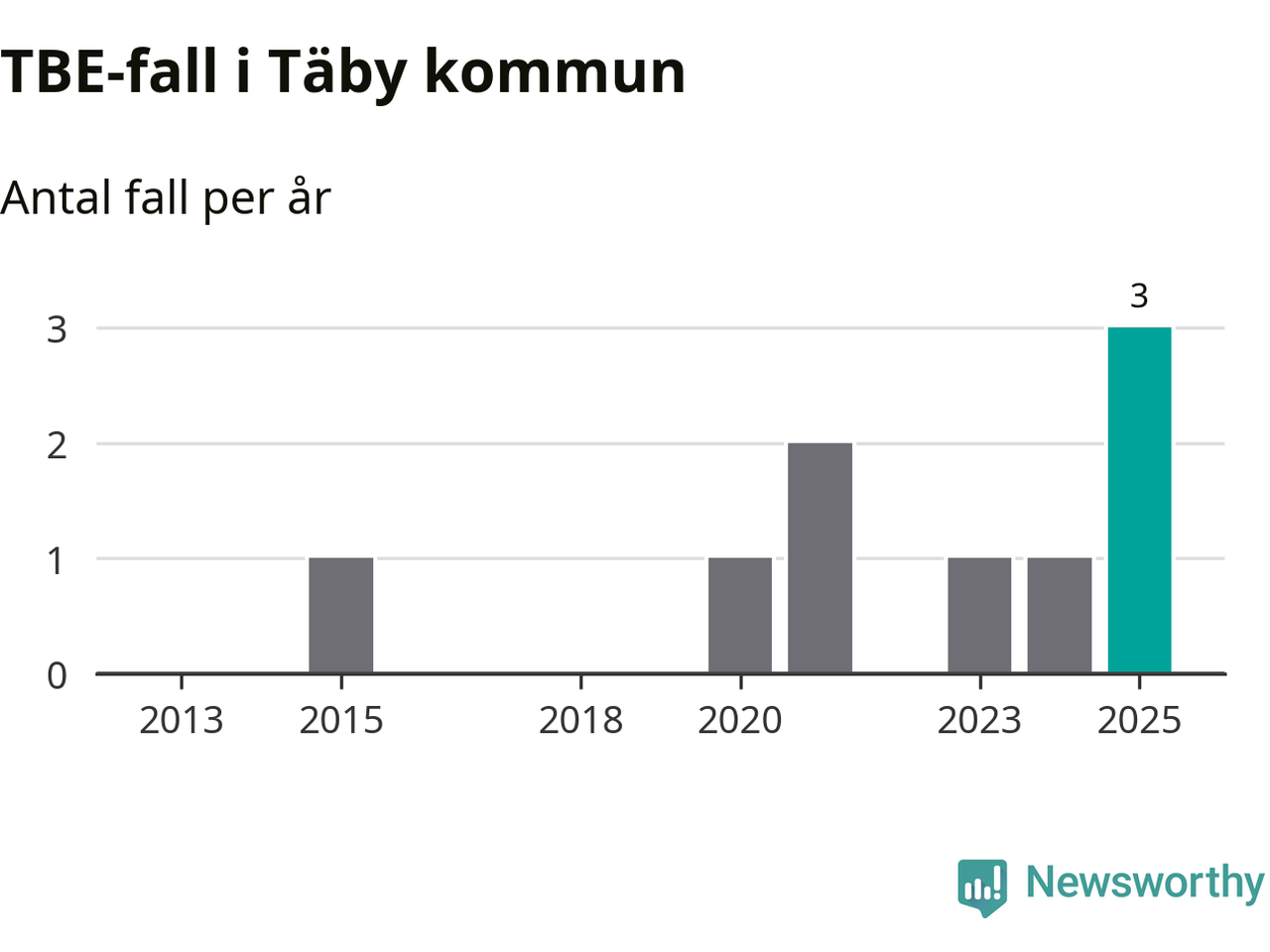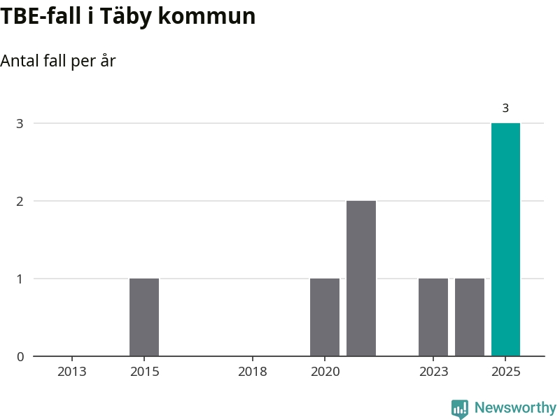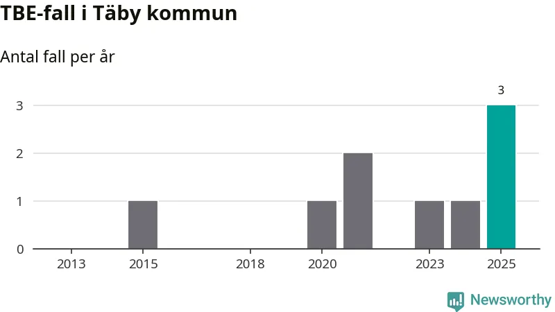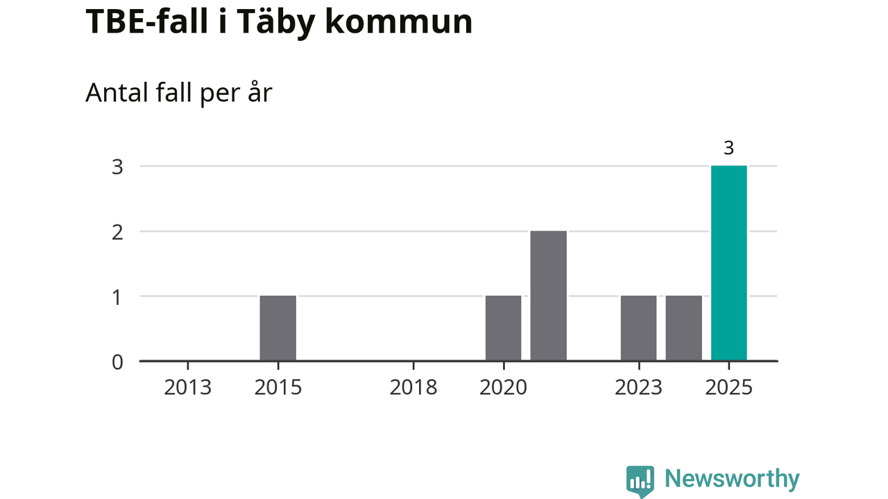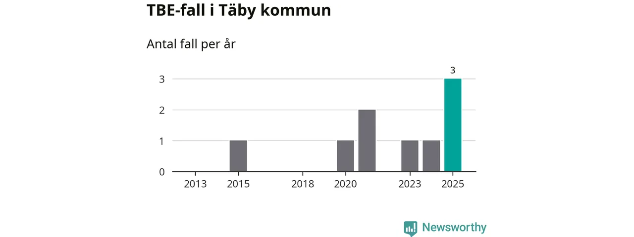 I Täby kommun rapporterades totalt tre smittfall. Det är två fler än året innan, och det högsta antalet som hittills rapporterats i kommunen.