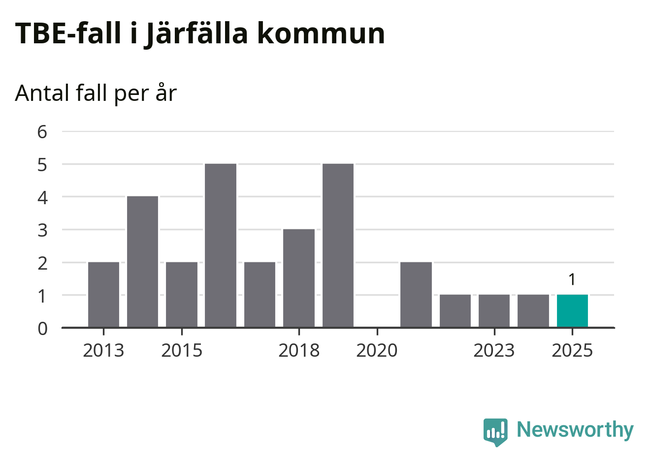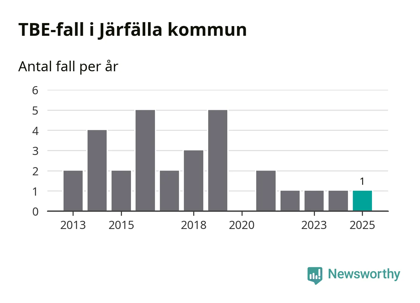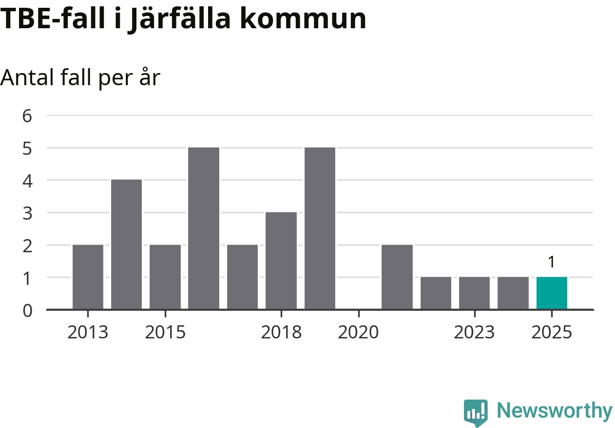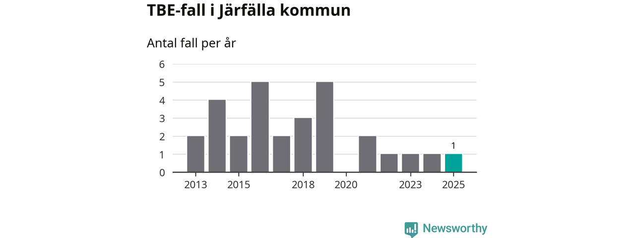 Den långsiktiga trenden är däremot tydlig. TBE-fallen blir allt fler i Sverige. Sett över tid har antalet anmälda fall i landet som helhet ökat med drygt sex procent per år sedan 2013. Totalt motsvarar det en ökning på 141 procent om vi jämför 2013 med 2025 års siffror.