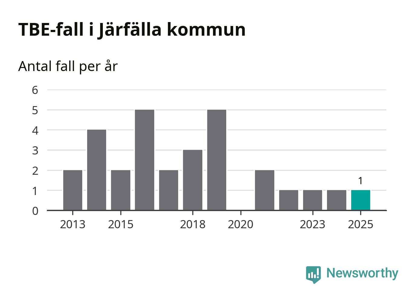 I Järfälla kommun rapporterades totalt ett smittfall. Det är lika många som året innan.