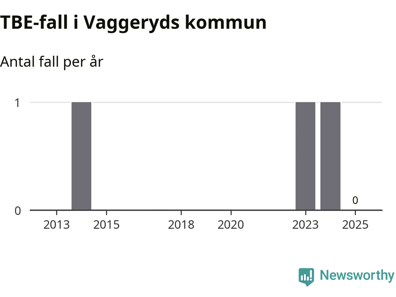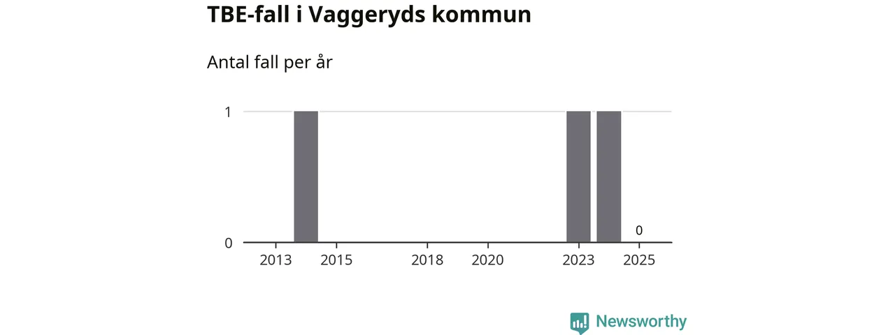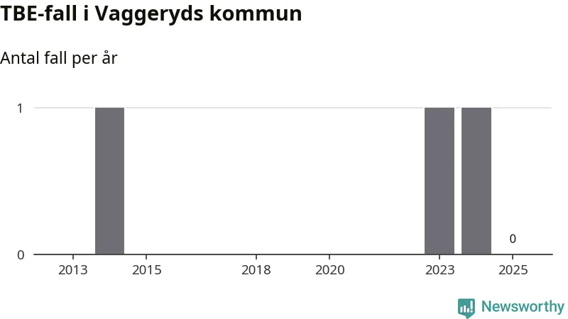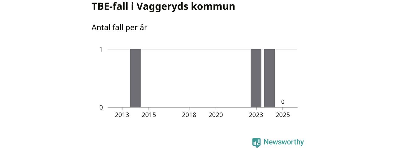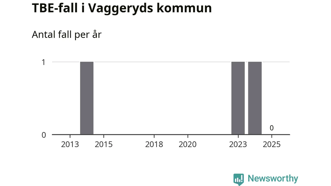 Inget TBE-fall rapporterades i Vaggeryds kommun under 2025. Det är en minskning sedan året innan, då ett fall rapporterades i kommunen.