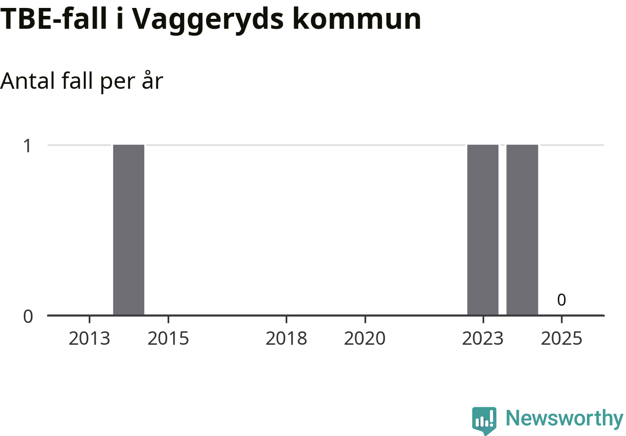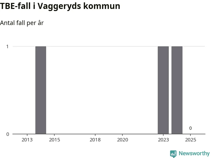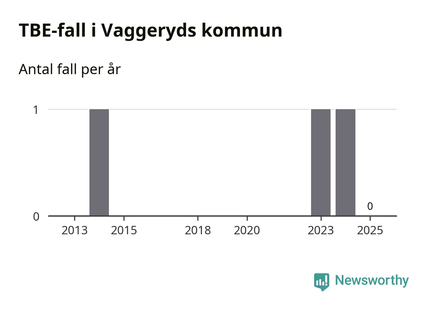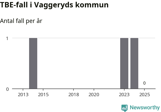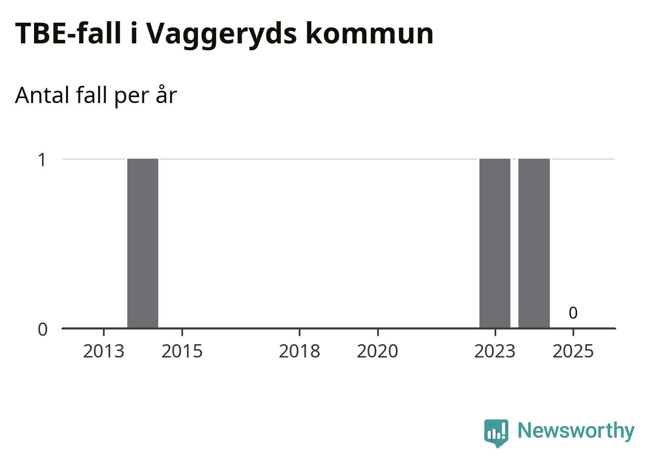 Inget TBE-fall rapporterades i Vaggeryds kommun under 2025. Det är en minskning sedan året innan, då ett fall rapporterades i kommunen.