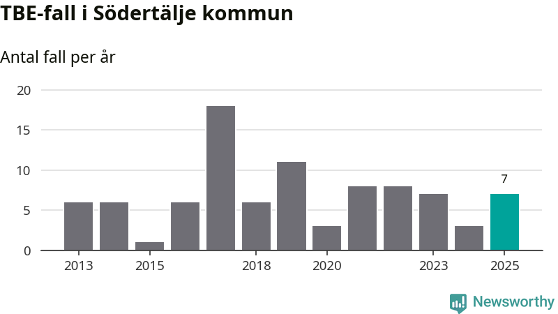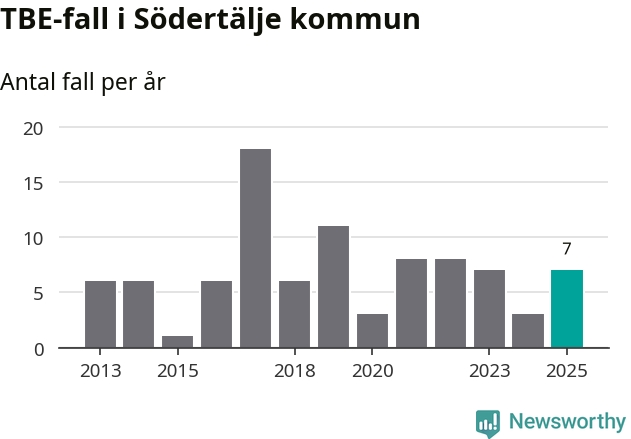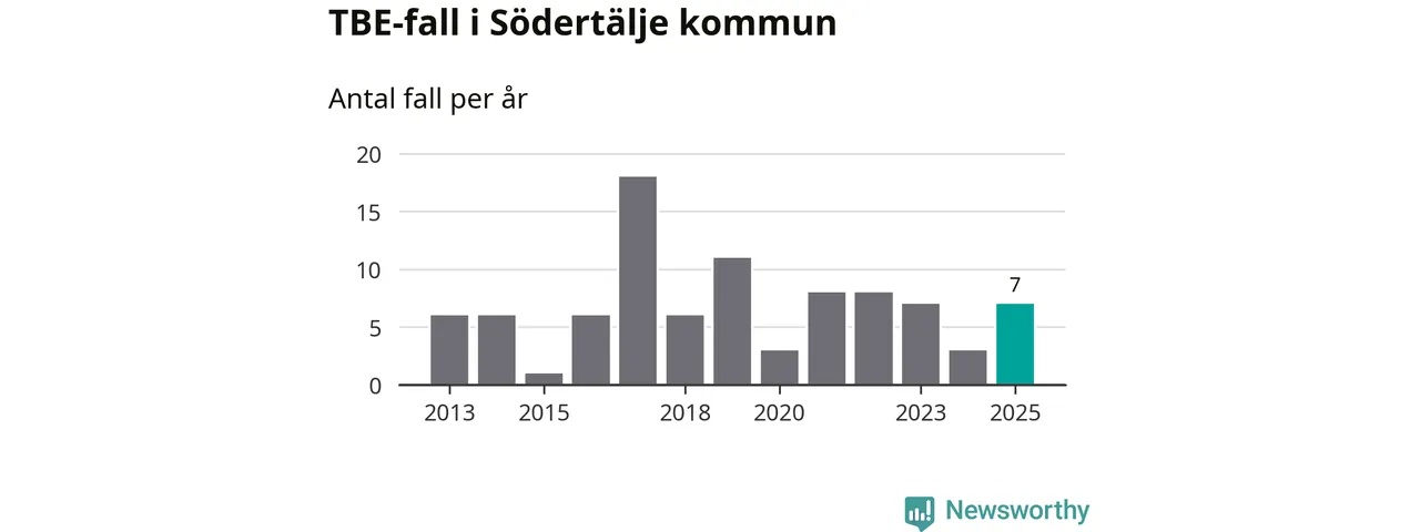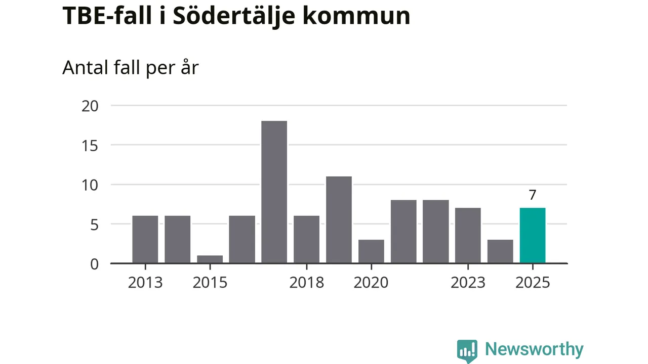 Under 2025 tillkom sju nya kommuner på den listan. Södertälje kommun räknas till kommunerna med förhöjd förekomst av TBE. Det gör även resten av Stockholms län.