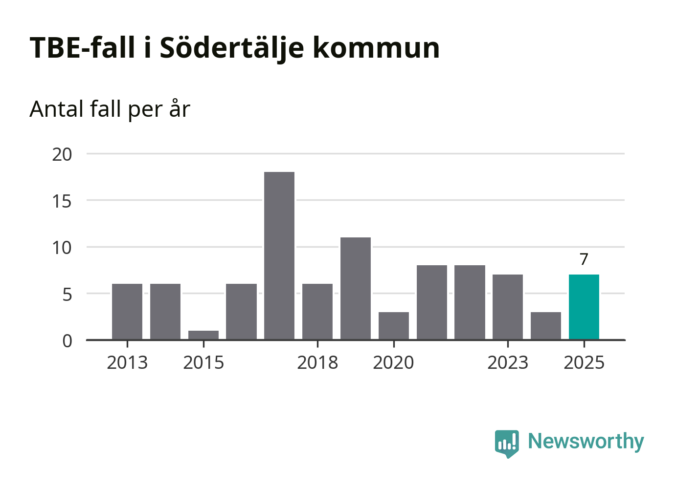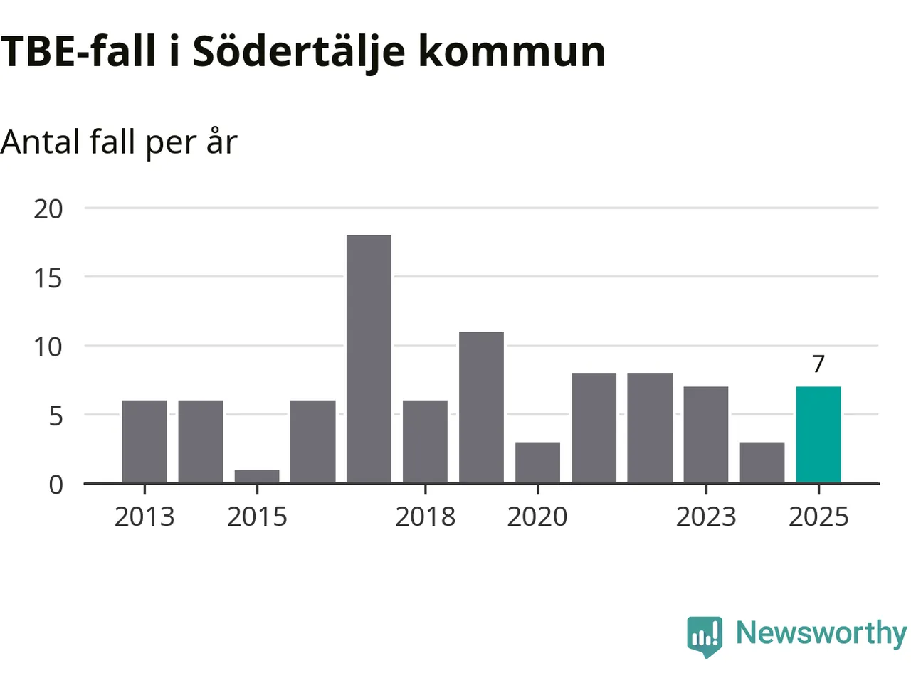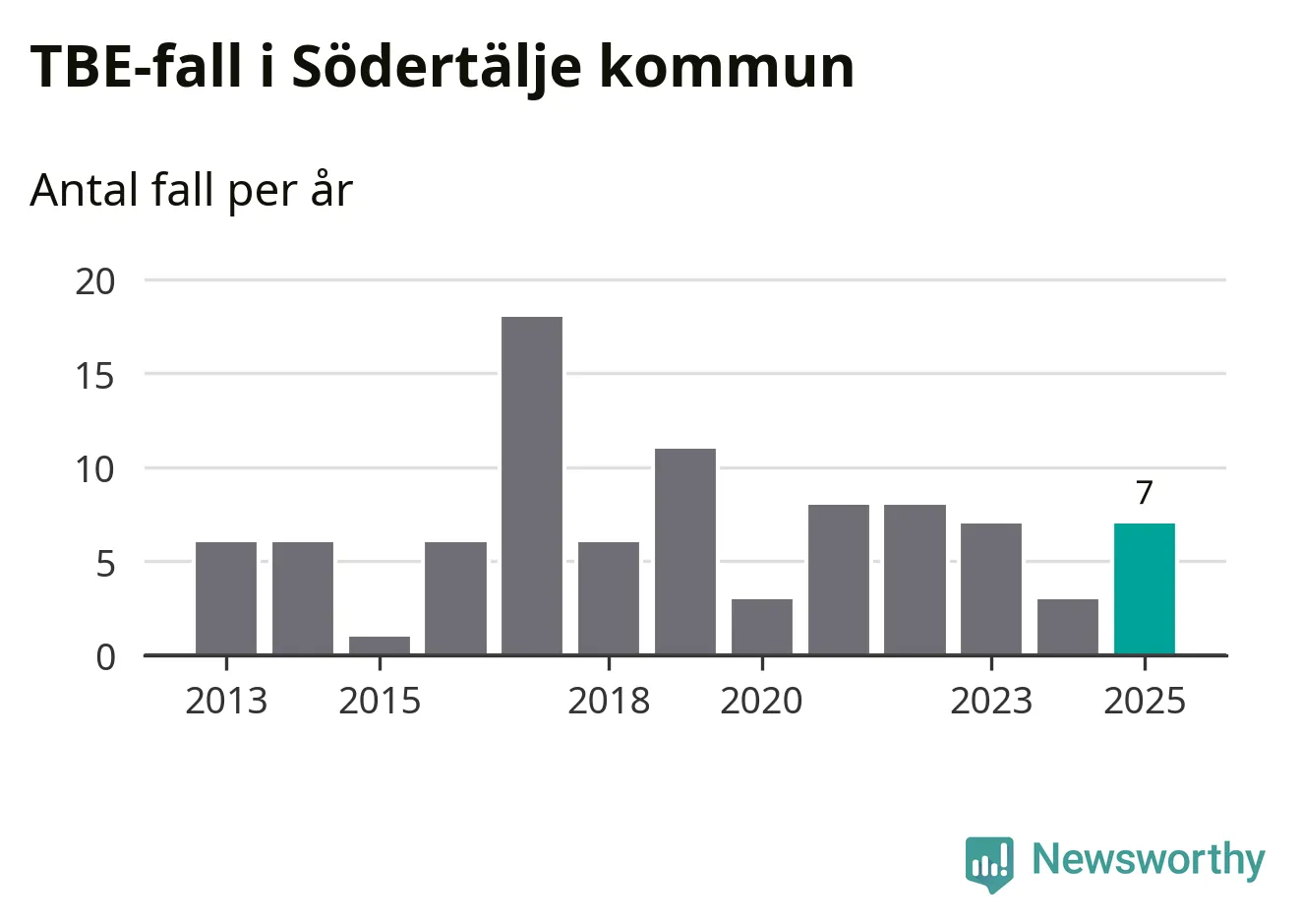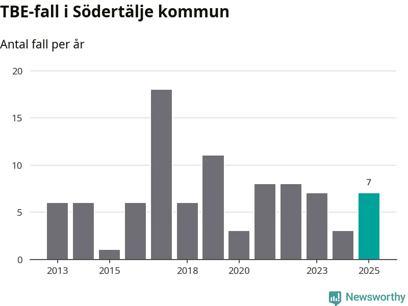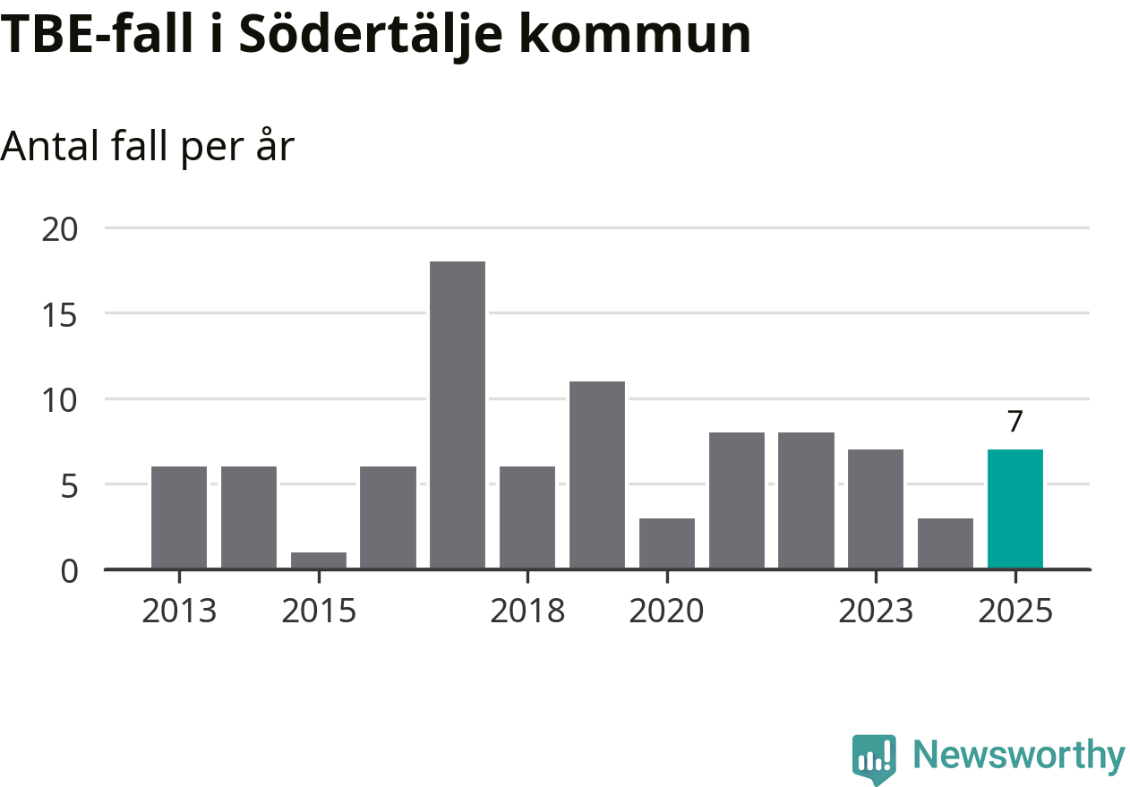 I Södertälje kommun rapporterades totalt sju smittfall. Det är en ökning sedan året innan då sjukdomssiffran låg på tre rapporterade fall.