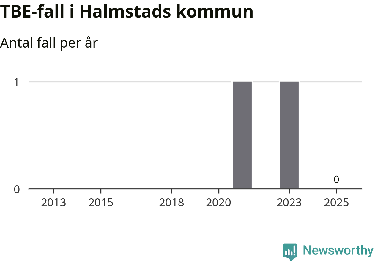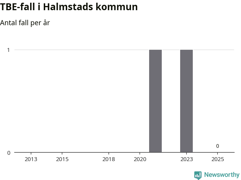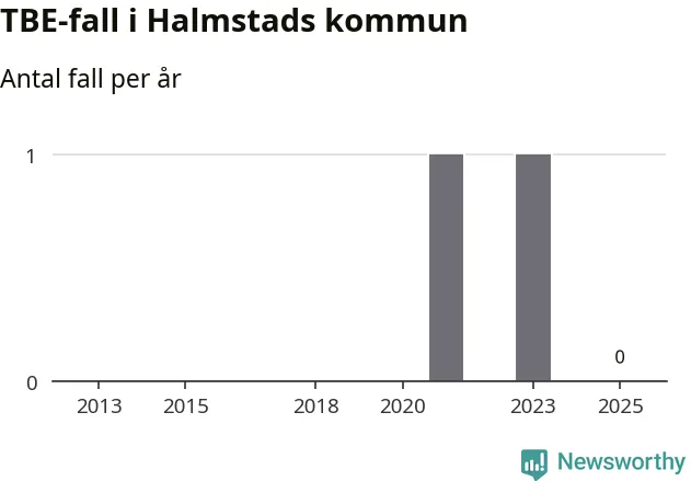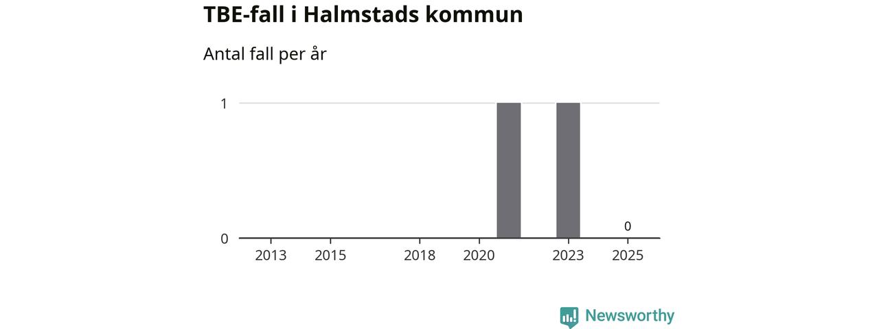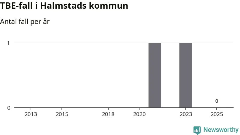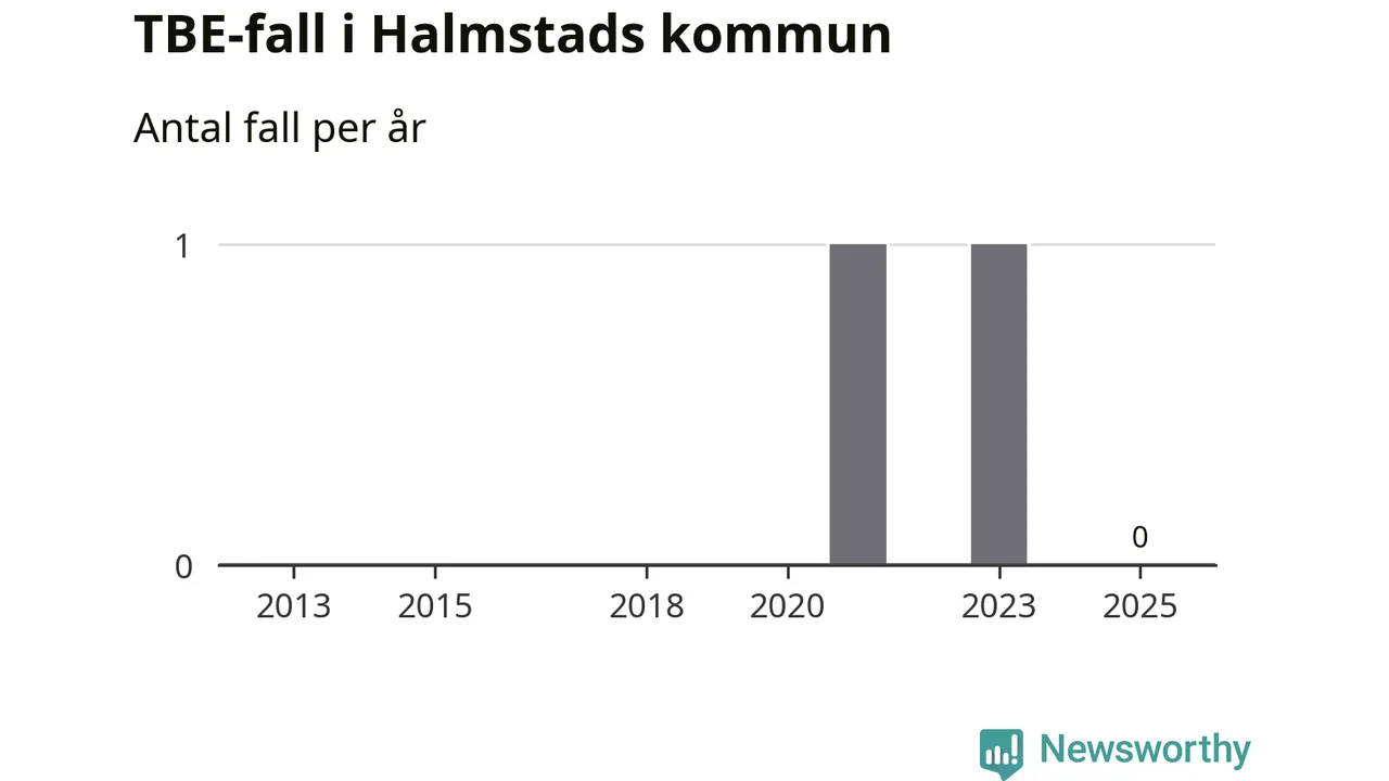 Inget TBE-fall rapporterades i Halmstads kommun under 2025. Inga TBE-fall har rapporterats i kommunen sedan 2023.