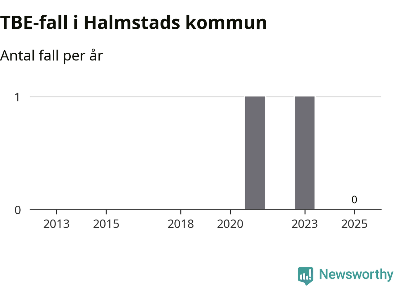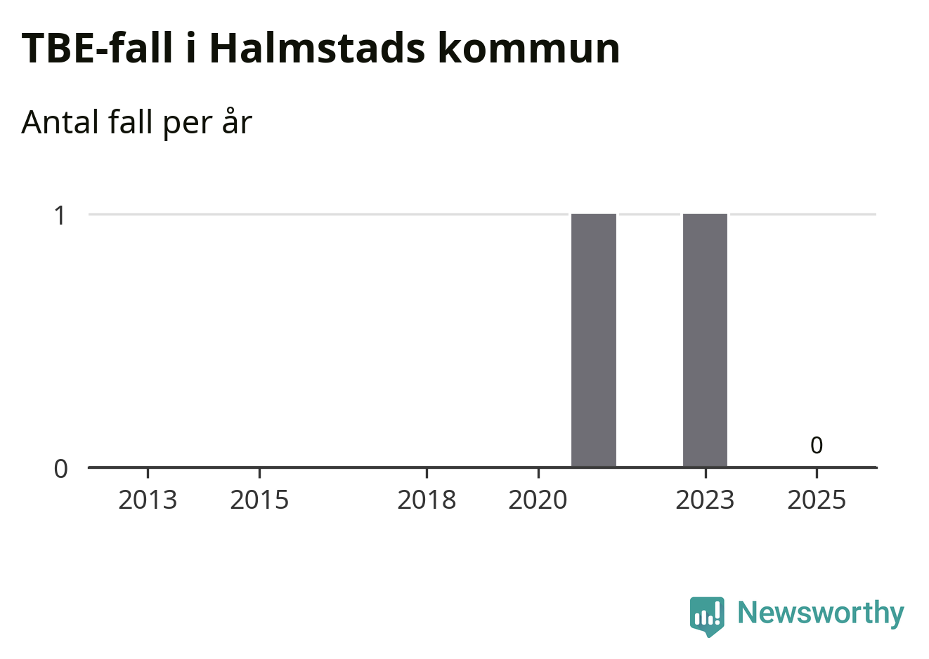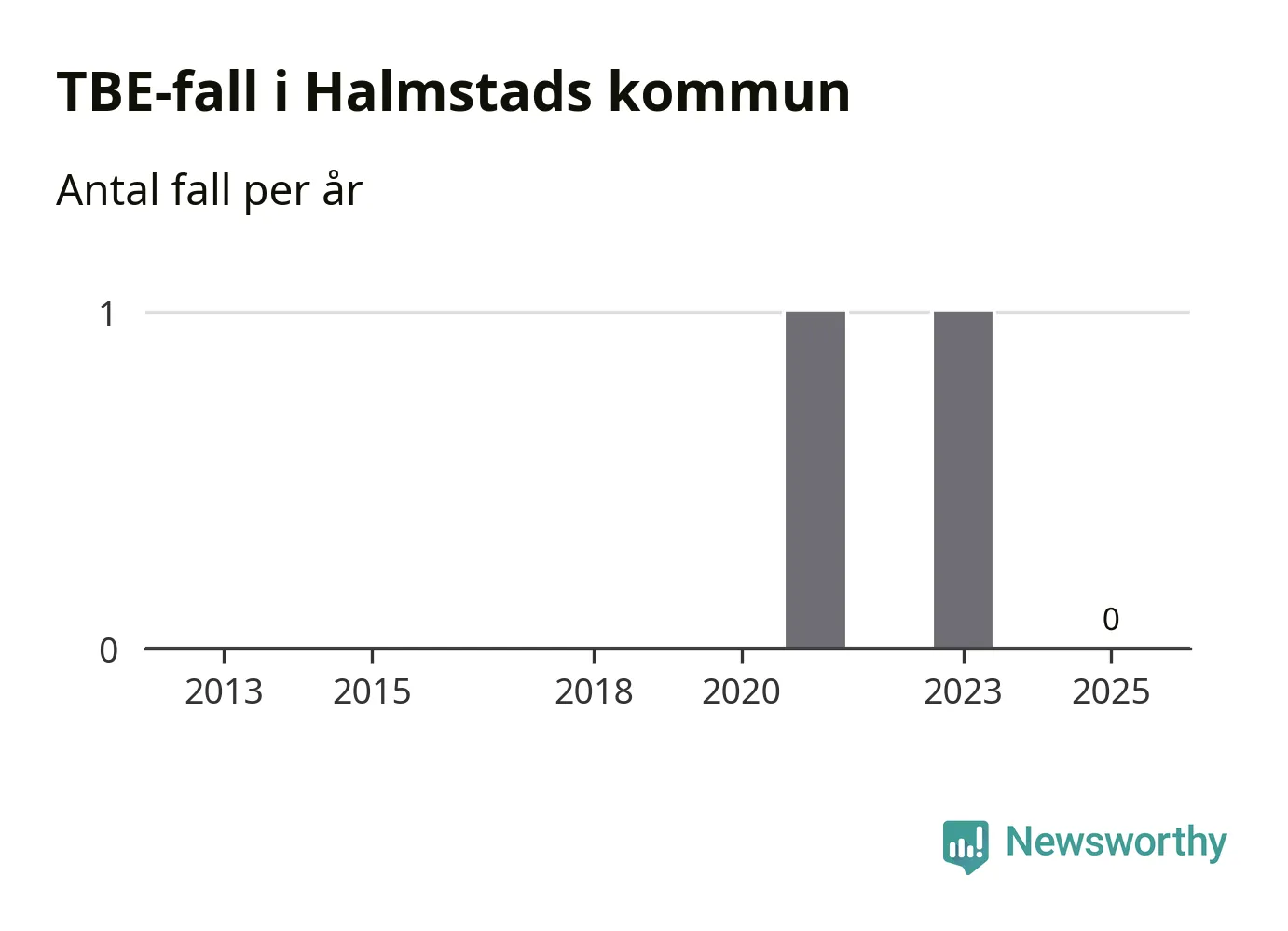 Inget TBE-fall rapporterades i Halmstads kommun under 2025. Inga TBE-fall har rapporterats i kommunen sedan 2023.