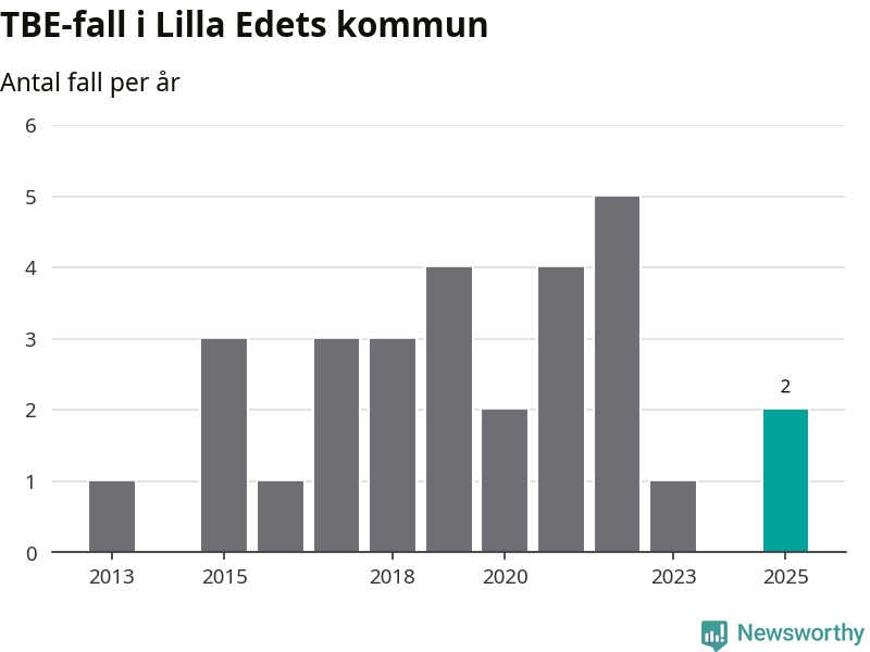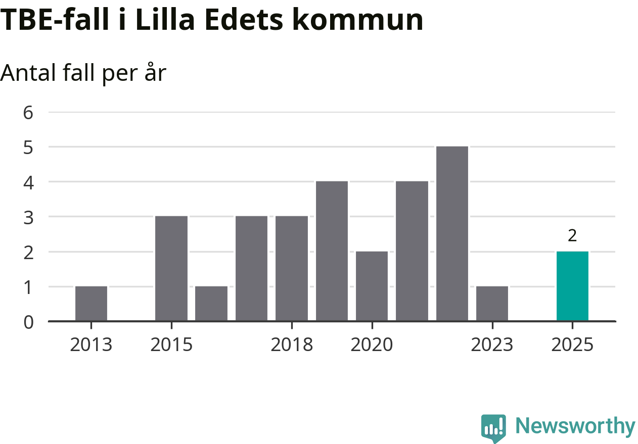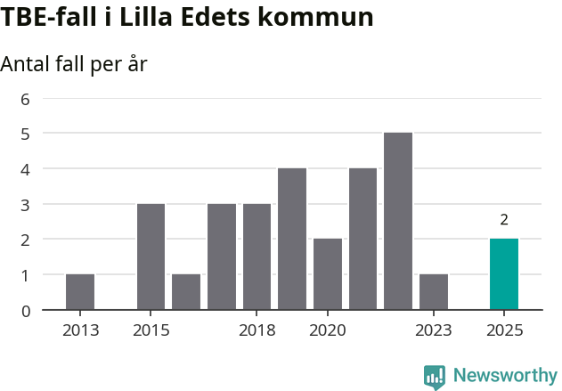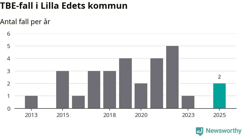 Under 2025 tillkom sju nya kommuner på den listan. Lilla Edets kommun räknas till kommunerna med förhöjd förekomst av TBE. Det gör även resten av Västra Götalands län.