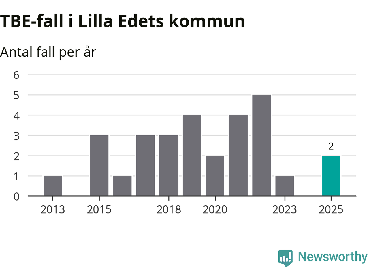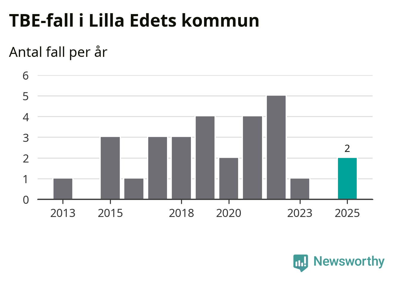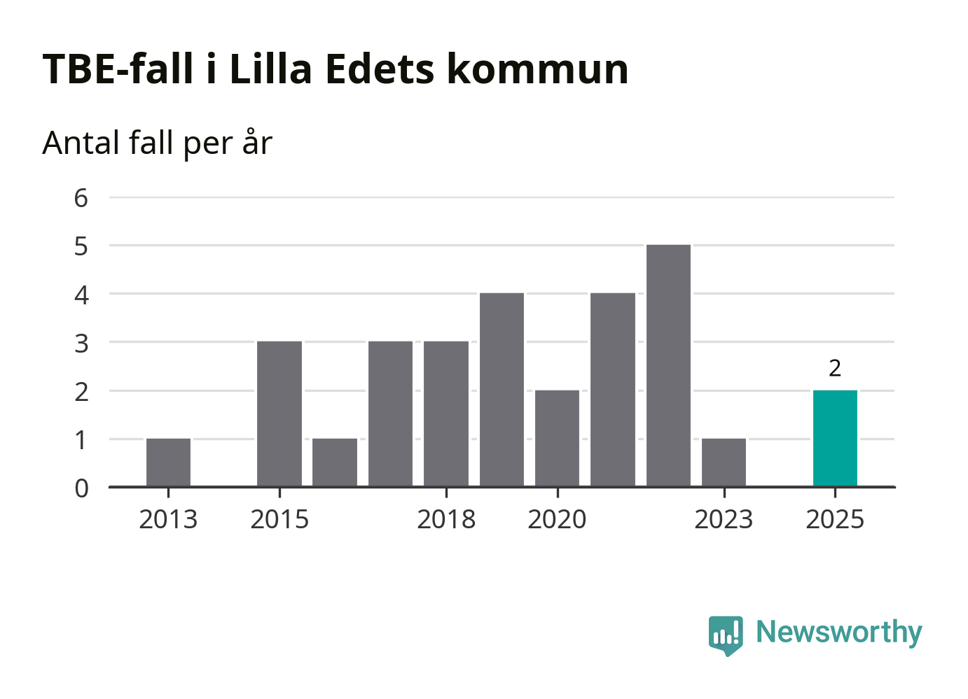 Den långsiktiga trenden är däremot tydlig. TBE-fallen blir allt fler i Sverige. Sett över tid har antalet anmälda fall i landet som helhet ökat med drygt sex procent per år sedan 2013. Totalt motsvarar det en ökning på 141 procent om vi jämför 2013 med 2025 års siffror.