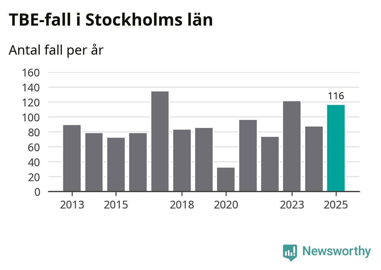 I Stockholms län rapporterades totalt 116 smittfall. Det är en ökning sedan året innan då sjukdomssiffran låg på 87 rapporterade fall.