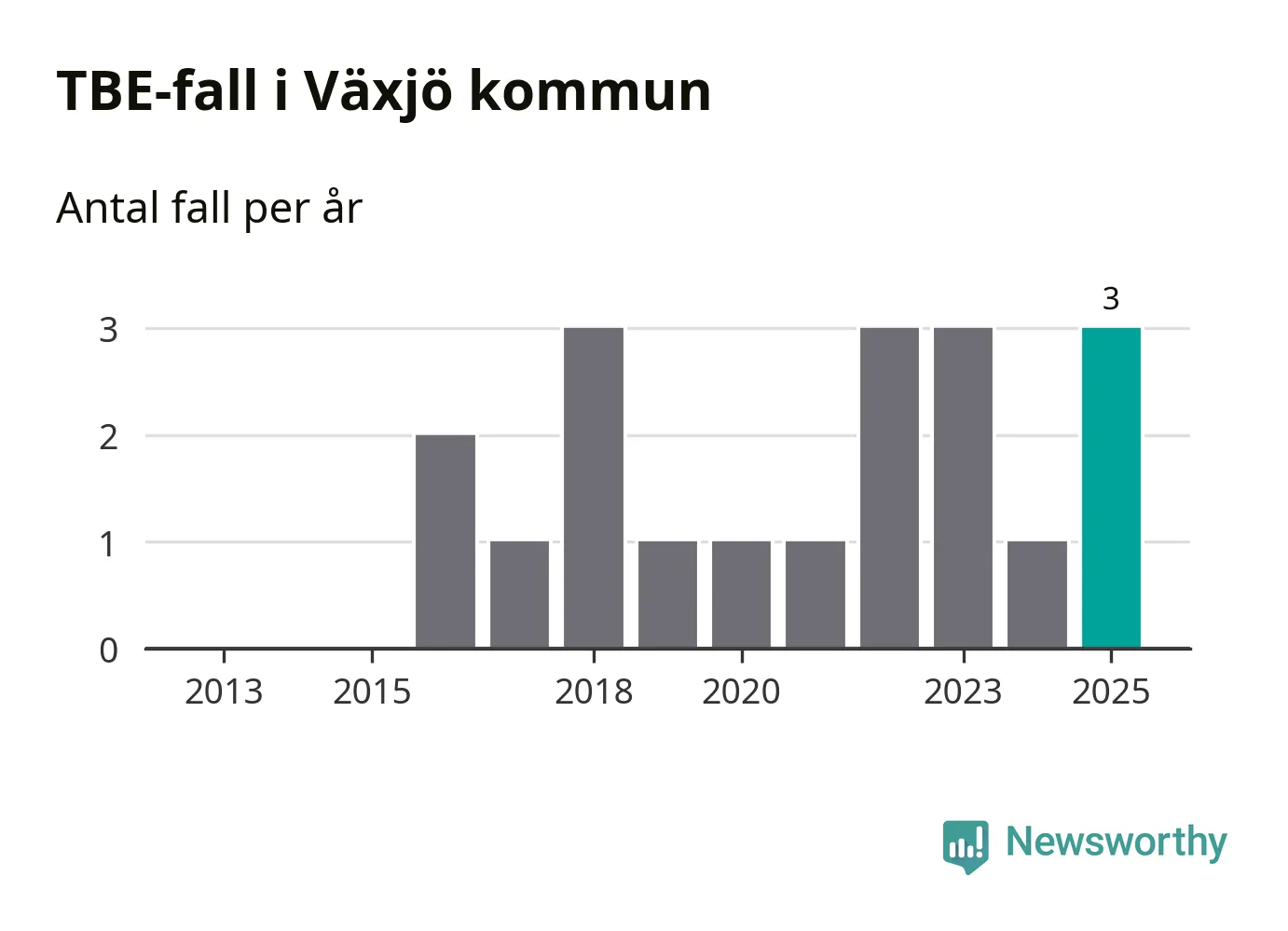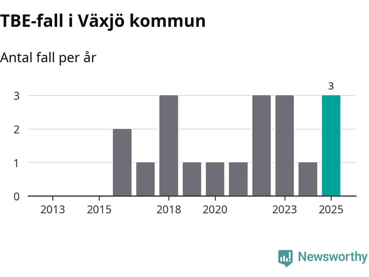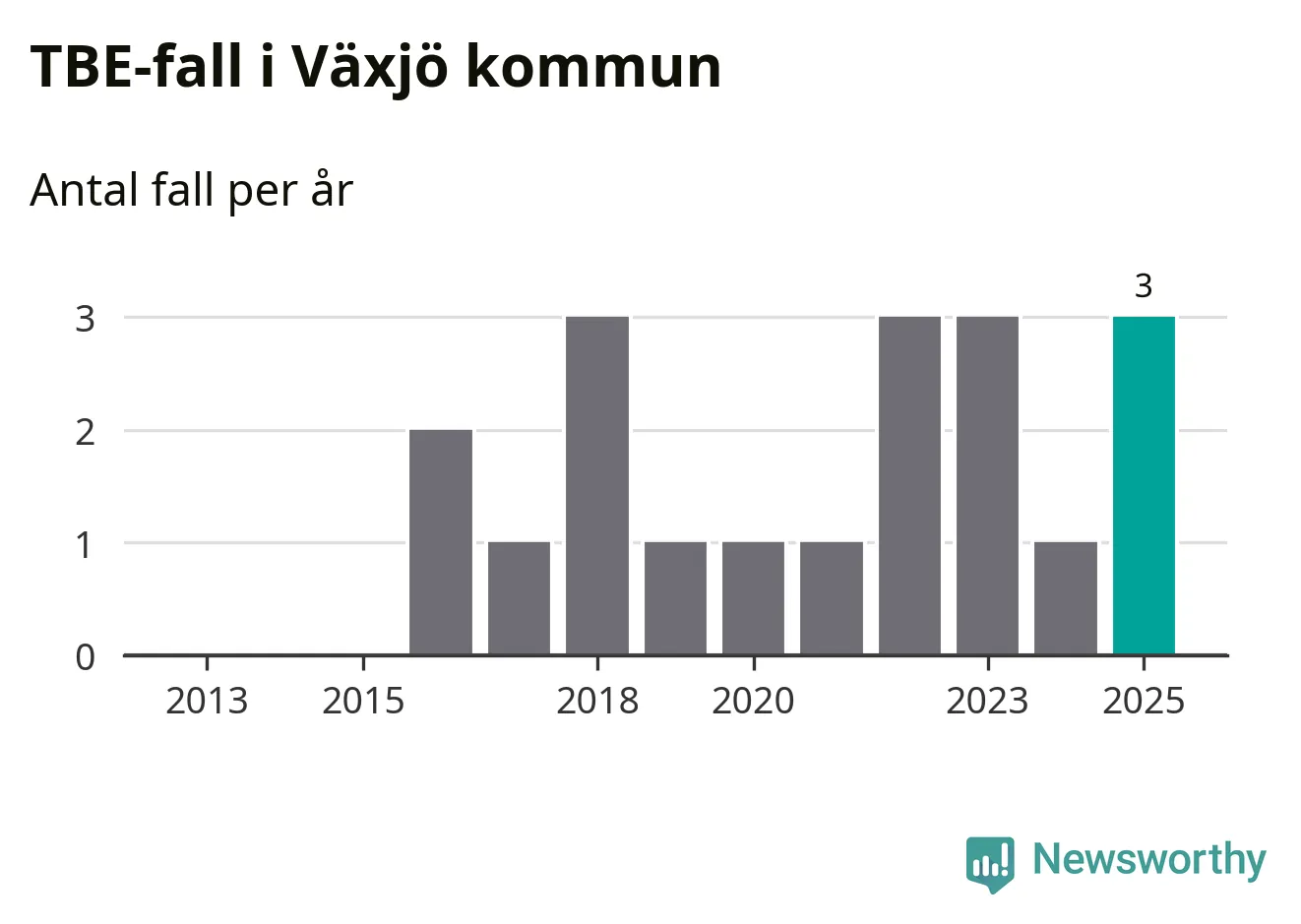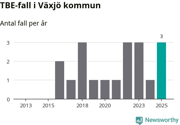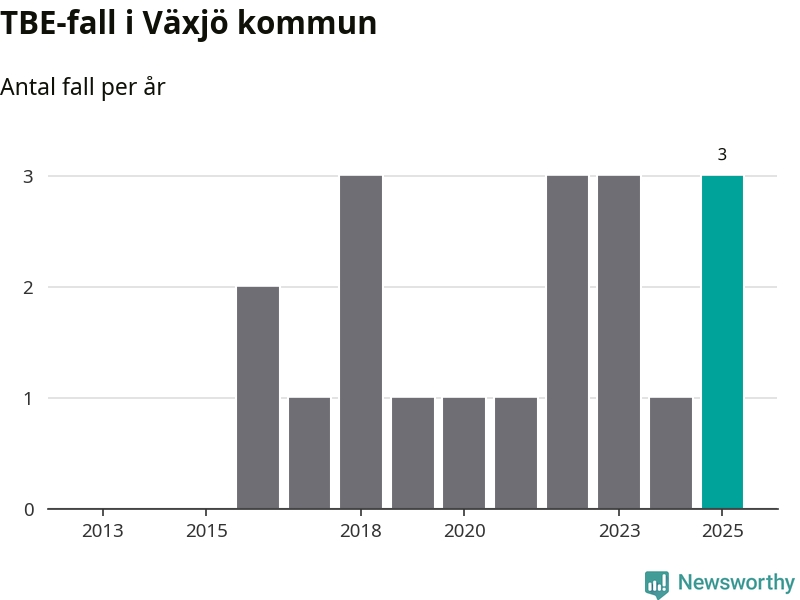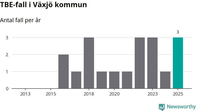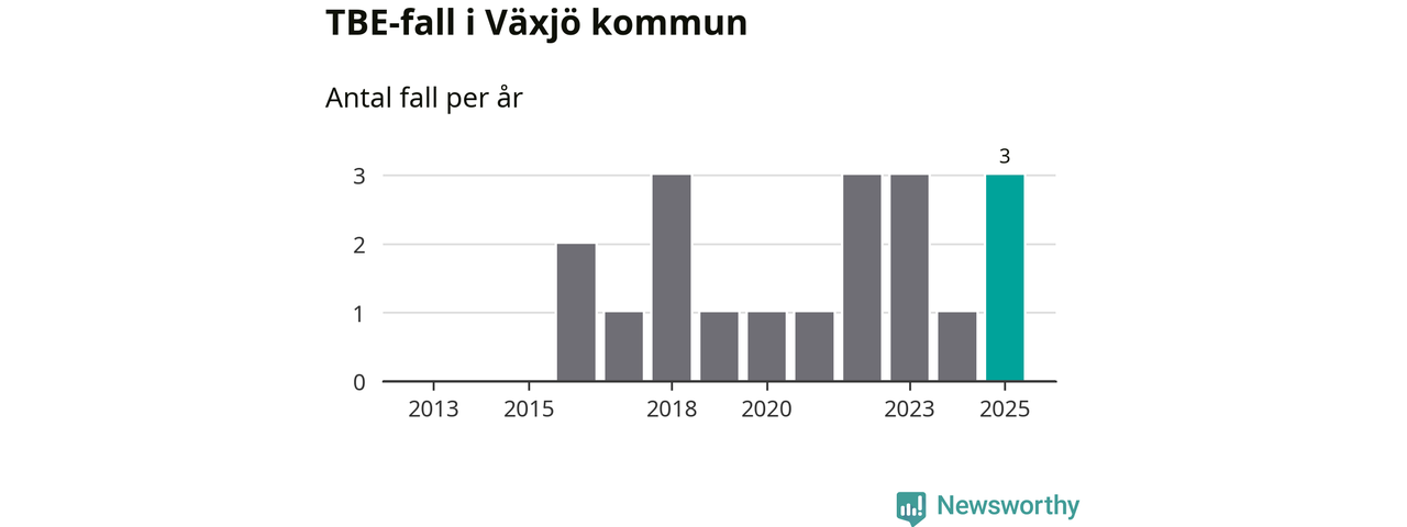 I Växjö kommun rapporterades totalt tre smittfall. Det är en ökning sedan året innan då sjukdomssiffran låg på ett rapporterade fall.