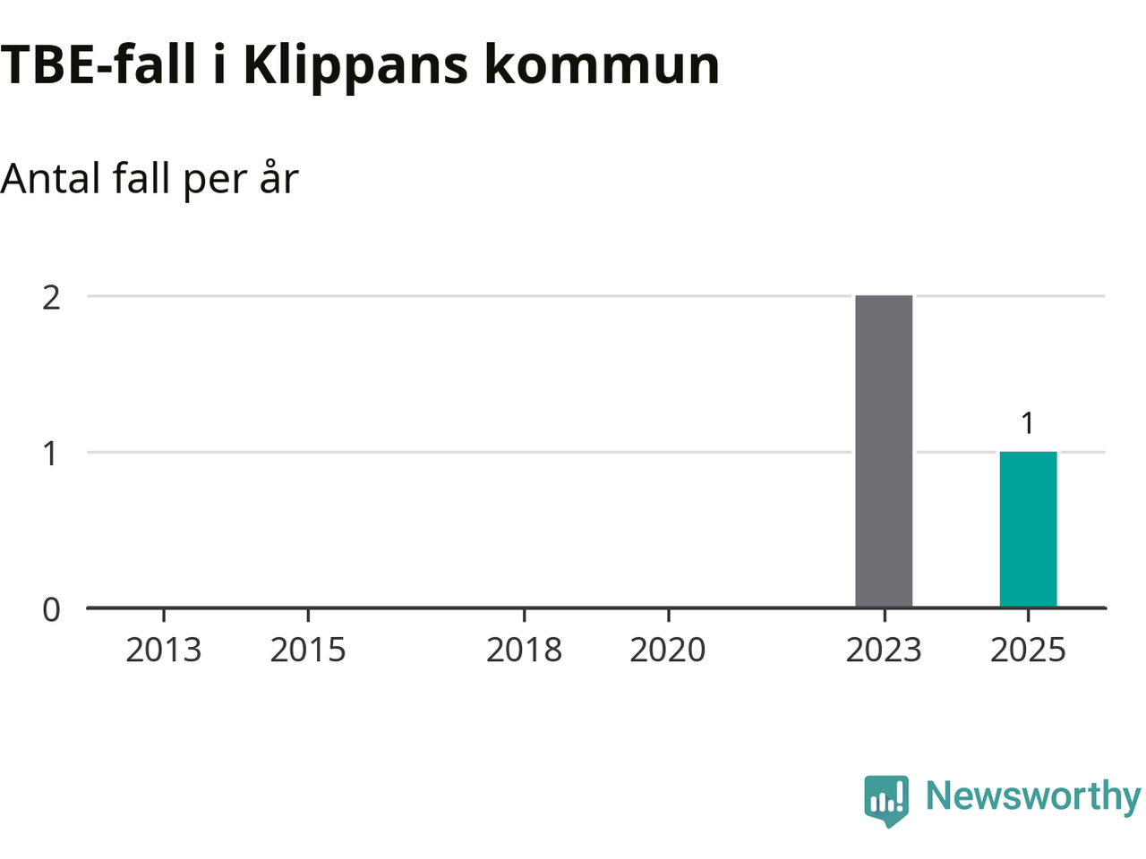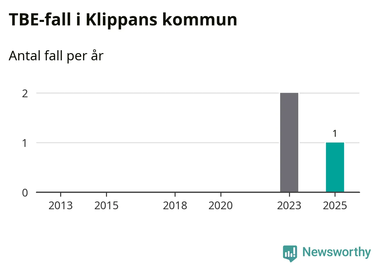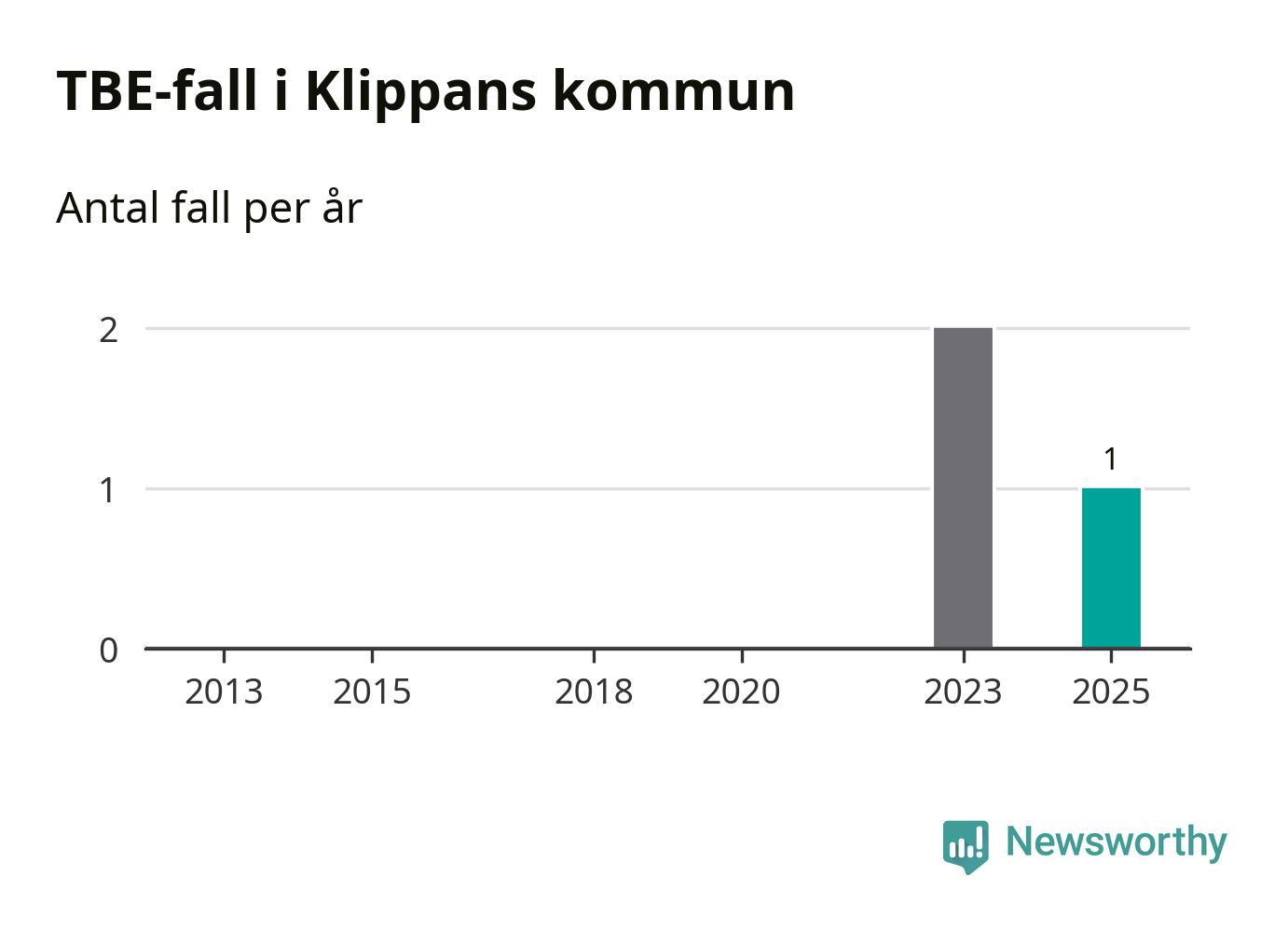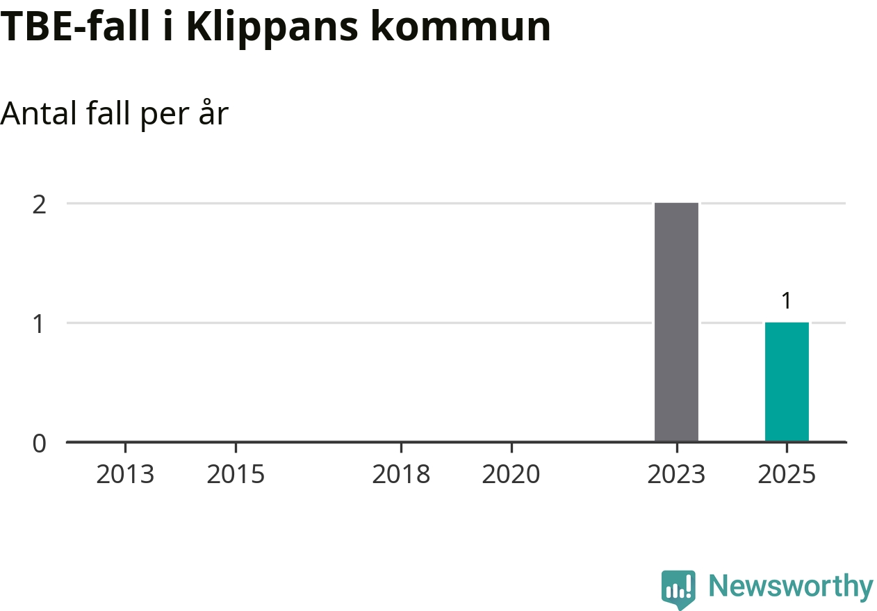 I Klippans kommun rapporterades totalt ett smittfall. Sedan 2013 har det rapporterats totalt tre fall i kommunen.
